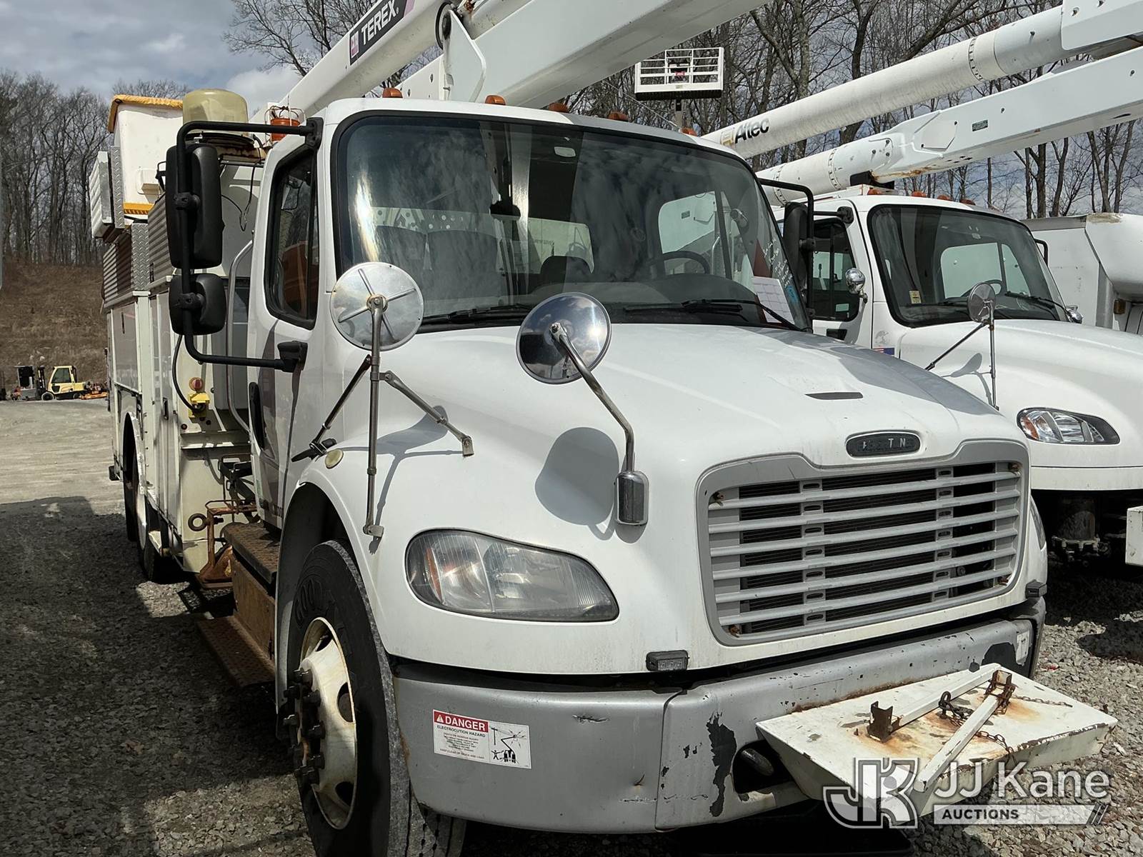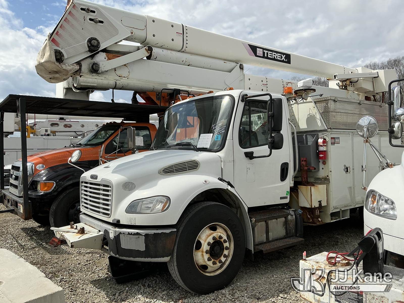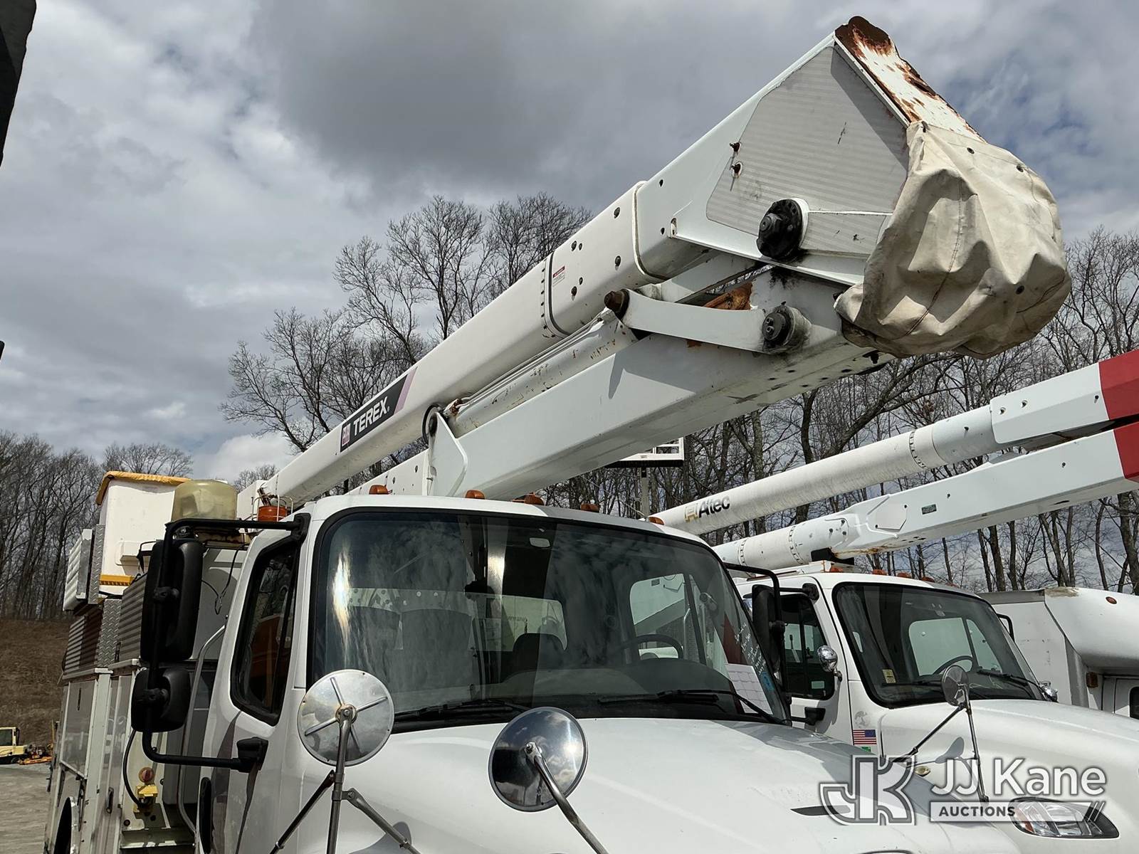 Terex/HiRanger HR52-MH, 57 ft, Material Handling Bucket Truck s/n 2111245163, with single-man bucket & 4 hyd outriggers, rear mounted on 2012 Freightliner M2 106 Utility Truck, Cummins 6.7L 4X2, diesel, Auto, A/C, (134,121 miles) (Runs) (Drivetrain & Upper Conditions Unknown, Engine Issues, Oil Leak, Oil/Coolant Mixing, Alternator Removed & In Cab, Missing Serpentine Belt) (Reads 13,447 hours) This is a Titled Item NOTE: This unit is being sold AS IS/WHERE IS via Timed Auction and is located in Shrewsbury, MA. Inspection & preview days for this unit are the 2 business days prior to the first day of items closing for this auction, item is located at 11 Fortune Blvd Shrewsbury, MA 01545 and hours of operations are 8a-4p. For pre-sale questions, please contact Rob Gifford @ (508) 864-4126. (Manuals provided in cab) (Buyer is responsible for removal. Assistance by consignor or JJ Kane Auctions is not assured.)
