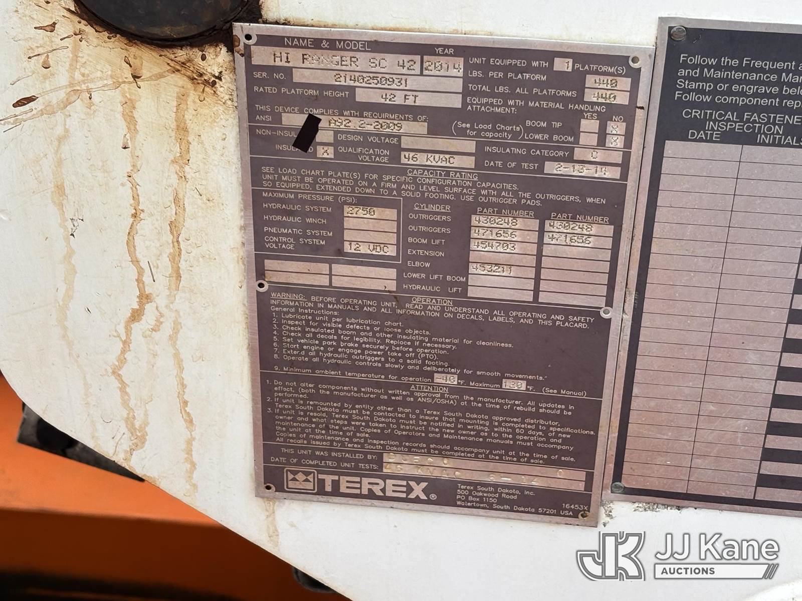 Terex/HiRanger SC42, 47 ft, Bucket Truck s/n 2140250931, with Single-Man Bucket, center mounted on 2012 Ford F750 Extended-Cab Service Truck, 6.7L Diesel 4X2, Auto, A/C, (253,569 miles) (Not Running, Condition Unknown, Upper Condition Unknown) (Parts Off Engine, Broken Windshield, Must Tow, Buyer Must Load) This is a Titled Item NOTE: This unit is being sold AS IS/WHERE IS via Timed Auction and is located in Plymouth Meeting, PA. Inspection & preview days for this unit are the 2 business days prior to the first day of items closing for this auction, item is located at 1402 Conshohocken Rd Plymouth Meeting, PA 19462 and hours of operations are 8a-4p. For pre-sale questions, please contact Bruce Thomas @ (267) 887-0392 or bruce.thomas.jr@jjkane.com. (Manuals provided in cab) (Buyer is responsible for removal. Assistance by consignor or JJ Kane Auctions is not assured.)