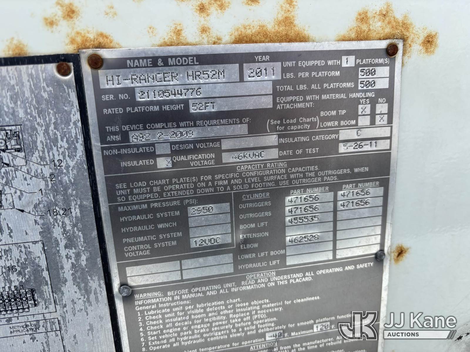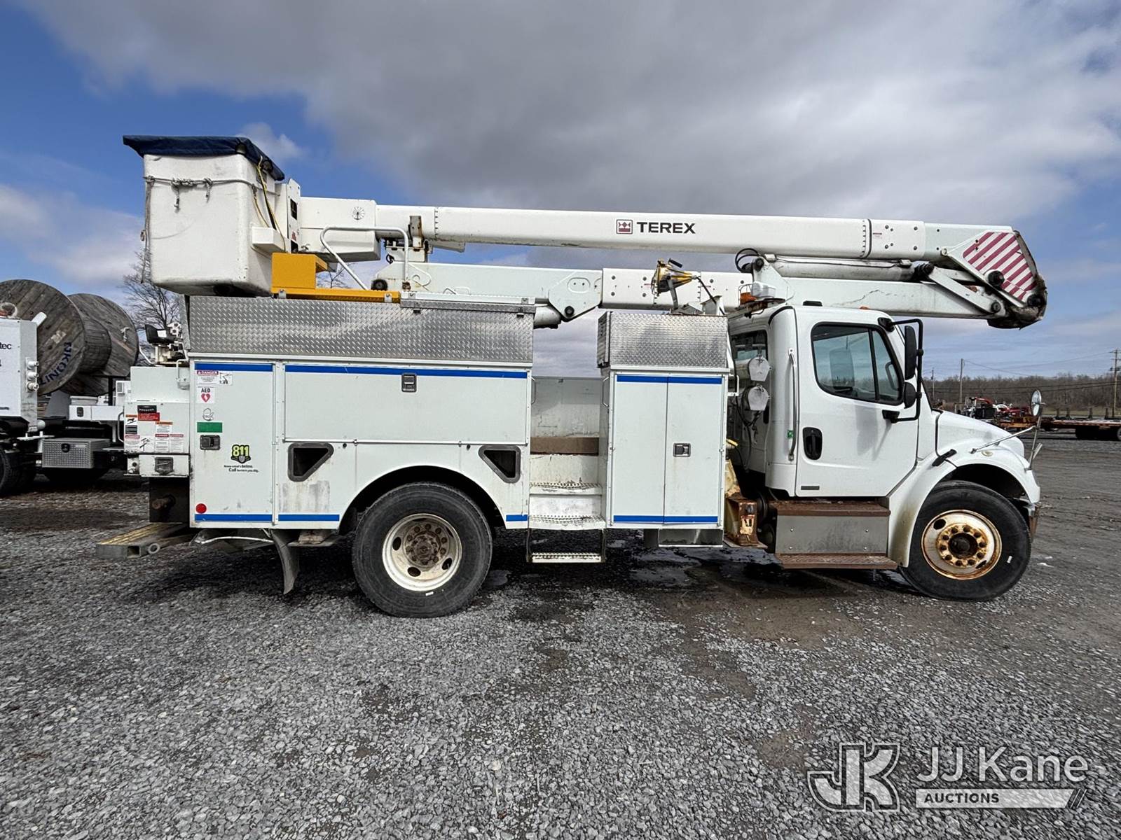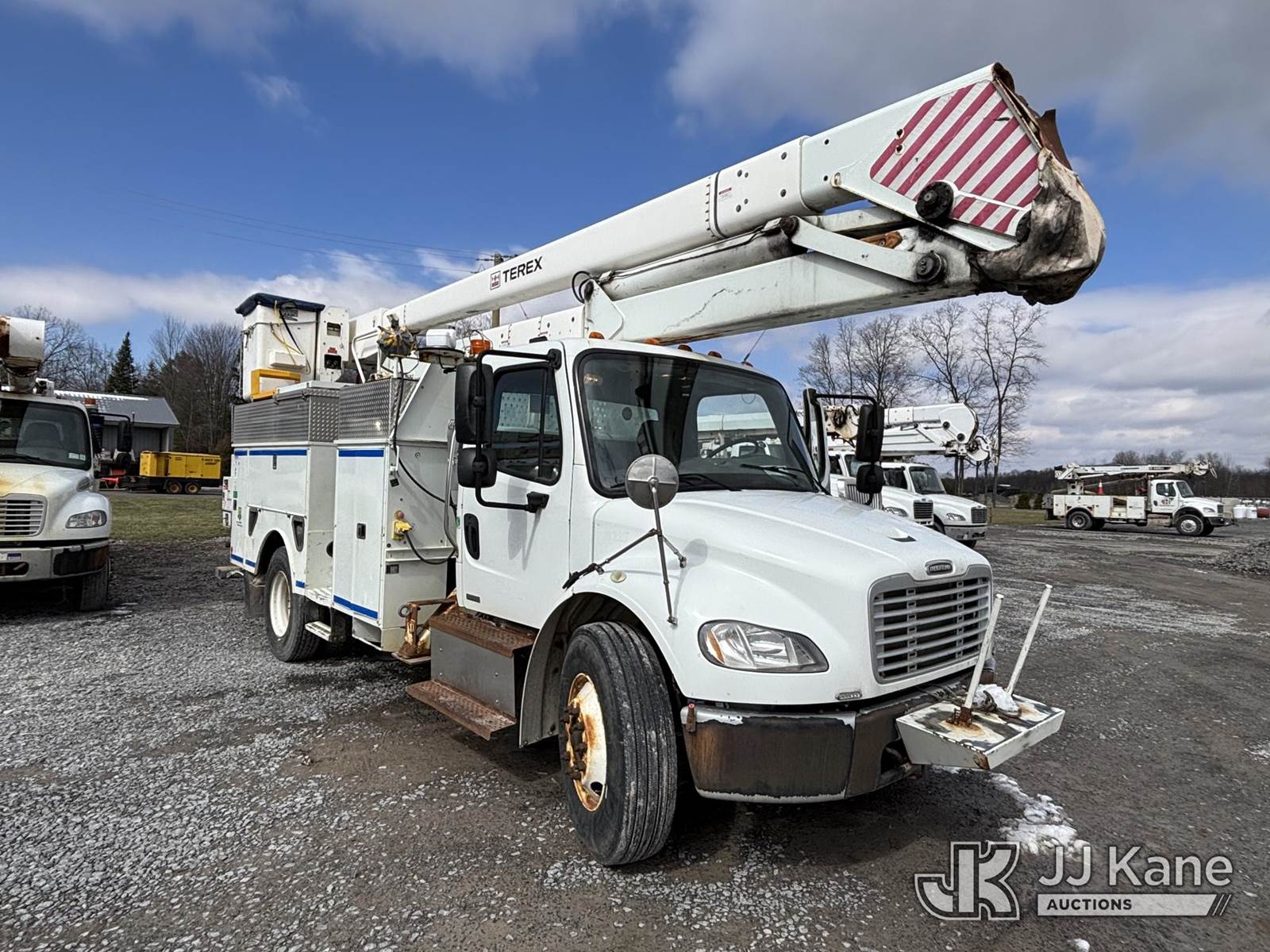 Terex/Telelect Hi-Ranger HR-52M, 57 ft, Material Handling Bucket Truck s/n 2110544776, with Two-Man Bucket, 4 Hyd outriggers, rear mounted on 2012 Freightliner M2 106 Utility Truck, 6.7L L6 DIESEL 4X2, Auto, A/C, (152,043 miles) (Runs, Moves & Upper Operates) (Body, Rust & Paint Damage, Engine Light On) This is a Titled Item NOTE: This unit is being sold AS IS/WHERE IS via Timed Auction and is located in Geneva, NY. For pre-sale questions, please contact Adel Cekic at adel.cekic@jjkane.com. Inspection by appointment only. Removal of items will begin the day following the sale and continue Monday through Friday, 8:00 am to 4:00 pm. Purchaser acknowledges ALL lots must be removed within (10) business days or a storage fee may be incurred. There will be no payments accepted onsite. Buyer/Hauler must present a copy of the (Paid in Full) Invoice or Release Form upon arrival. Please refer to the Pick Up Terms listed on the Release Form sent out after purchase. (Missing manuals, See Auction Company for Manufacturers Information to obtain manuals) (Buyer is responsible for removal. Assistance by consignor or JJ Kane Auctions is not assured.)