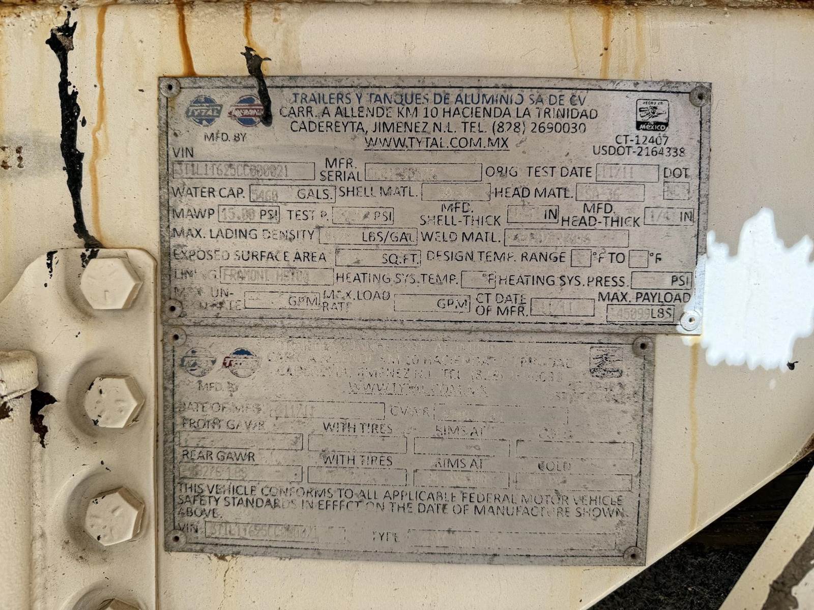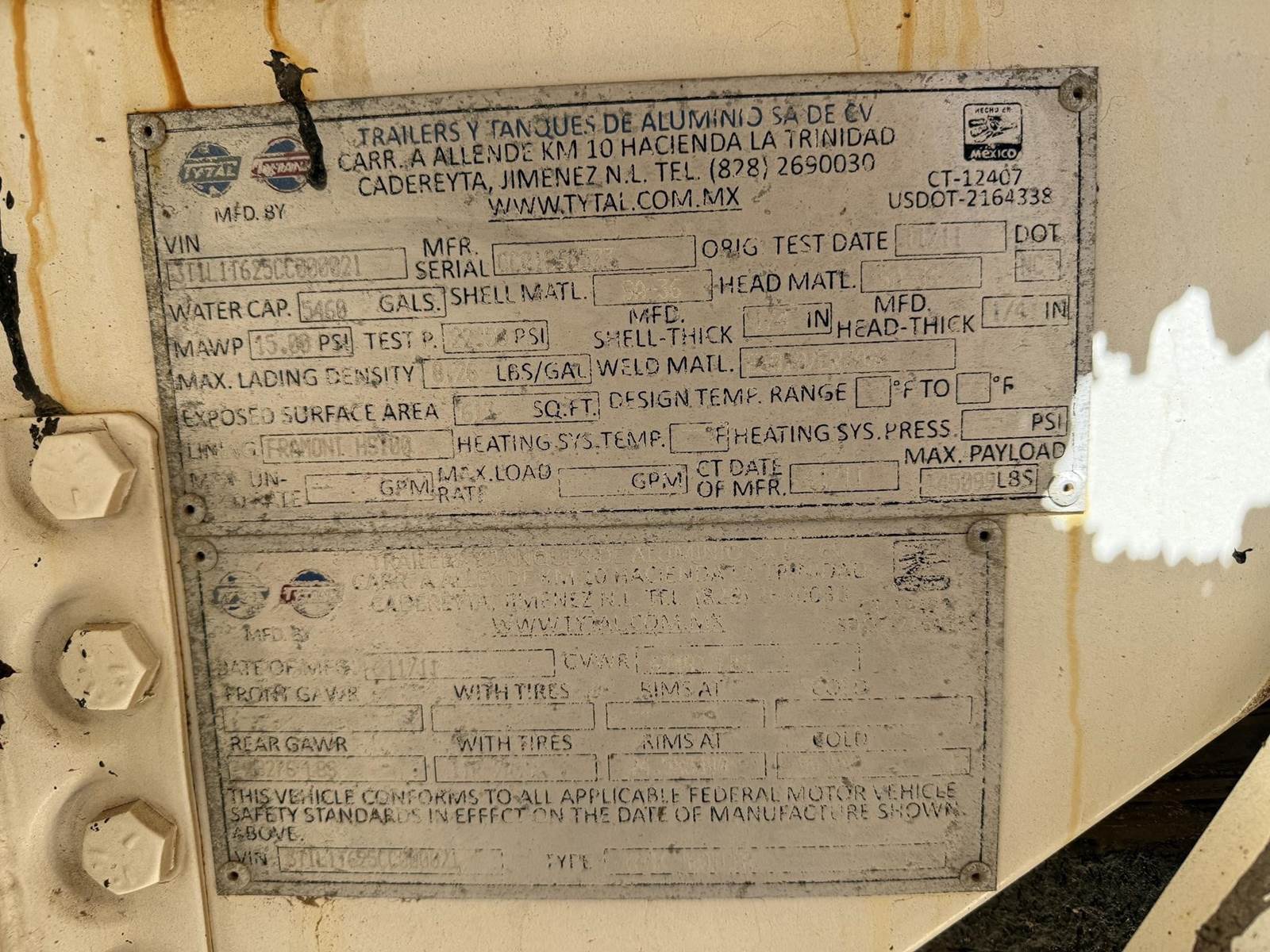 2012 TYTAL 5460 GALLON VAC TANK Vacuum Tank Trailer