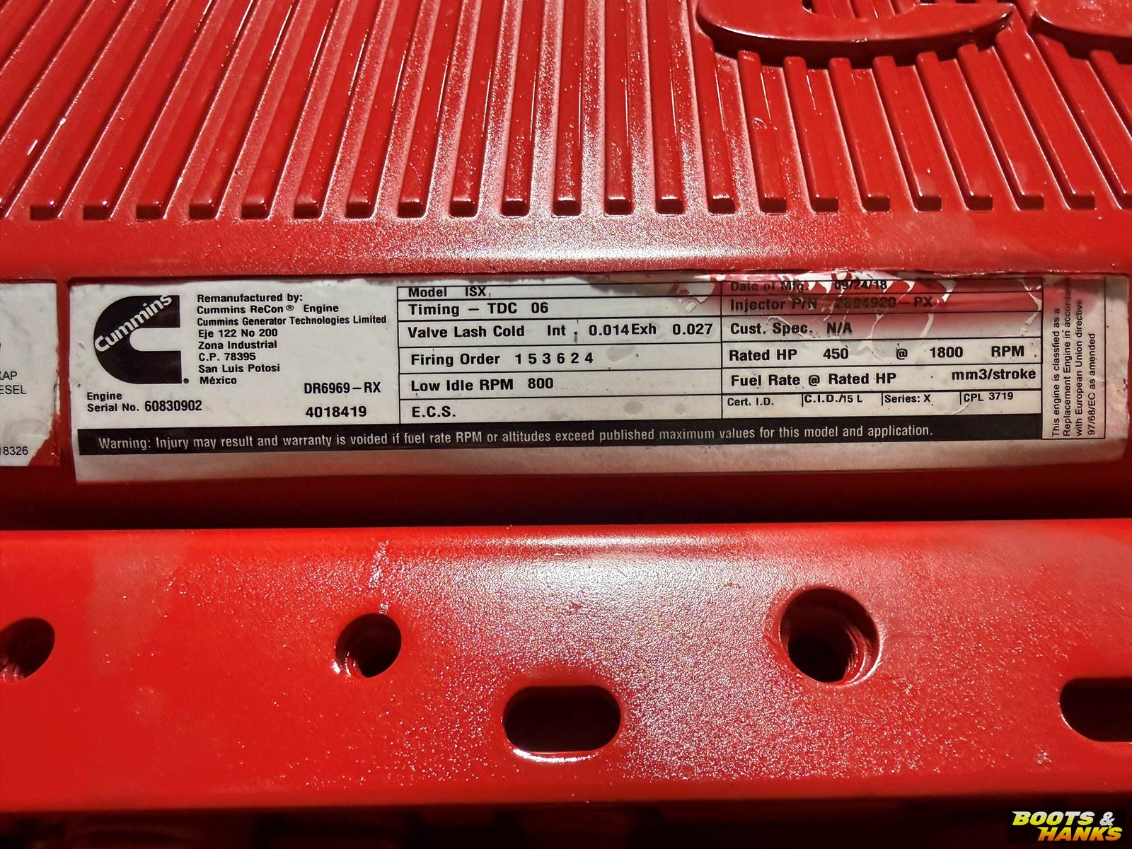 Used Reman 2012/ 2018 Cummins ISX15 Engine Assembly, S/N 60829247, CPL3606, 600HP, CM2250