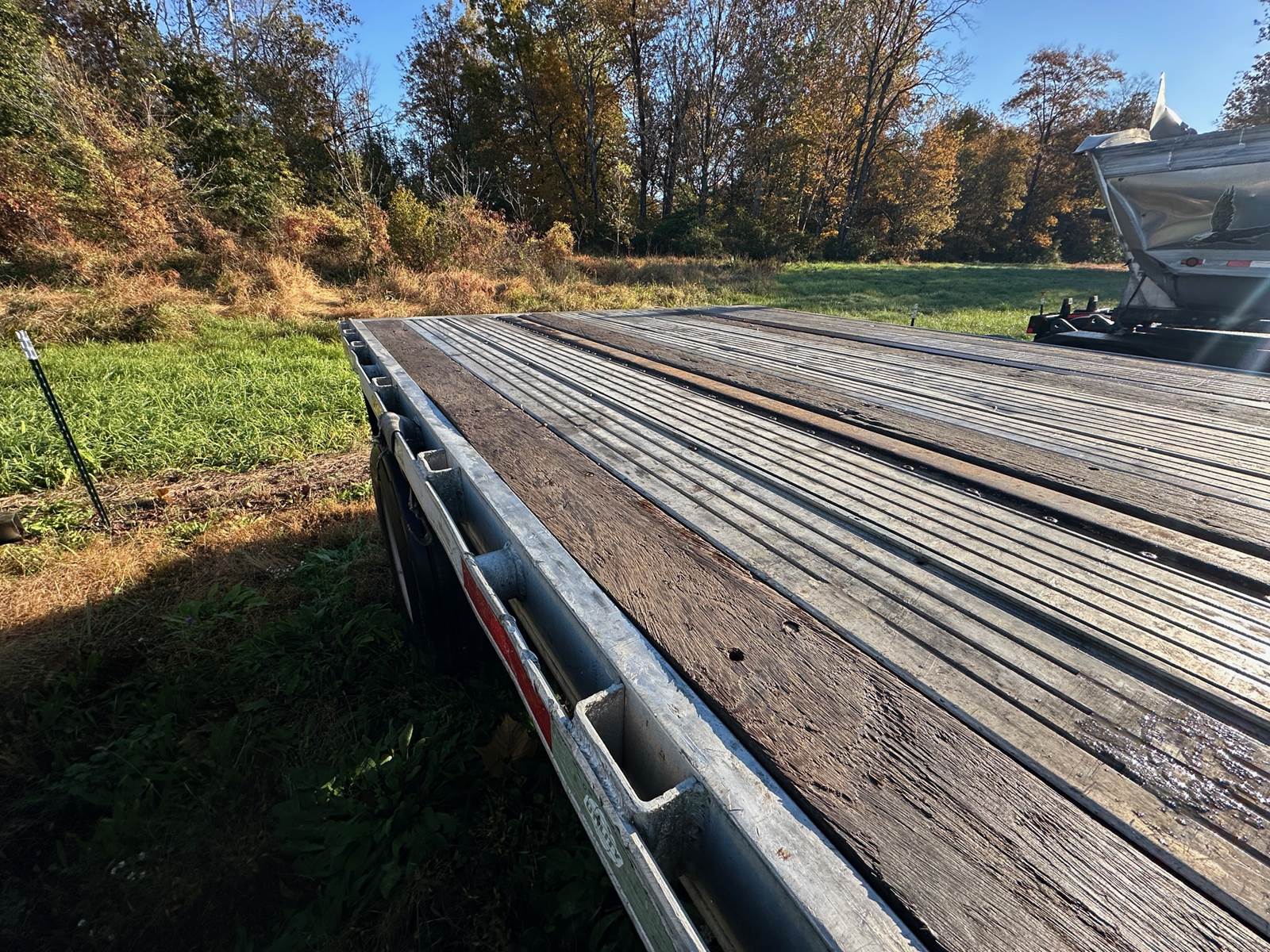 2005 UTILITY 48' X 102" Aluminum flatbed tandem trailer with fixed/spread axle. Dual storage boxes with straps and tarps, 4 bag air...