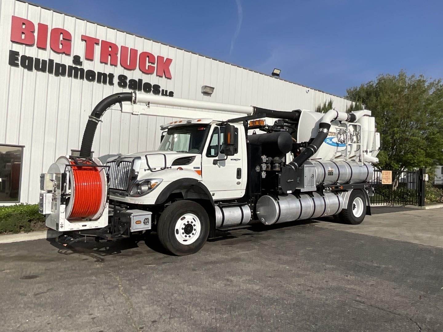 2012 International 7500 Vactor 2100 Plus Combo Vacuum Truck, MaxxForce 10 @ 350HP, Allison Automatic, Air Brakes, A/C, Vactor 2100 Plus Combo Vacuum System, Model 2100-P-PD, Roots 824 RCSV-18 PD Blower 18″ Vacuum, 10 Yard Ex-Ten Steel Debris Body, 80 GPM @ 2,500 PSI Water Pump, 1,000 Gallon Water Capacity, Brand New 600FT 1 INCH Jetter Hose, 8 Inch Suction Hose, 180 Degree Rotating Boom, 8 Foot Extendable Suction Boom, Midship Wash Down Hose Reel, Hydraulic Dump Door Debris Tank, Accumulator, Centrifugal Separator Cyclones, 249 Blower Hours, 512 Rodder Hours, Wired Remote, 20K Front, 26K Rear, 46,000 GVWR, Ex-City Truck, 613 PTO Hours, 6,680 Total Truck Hours, Odometer Reading 68,261 Miles