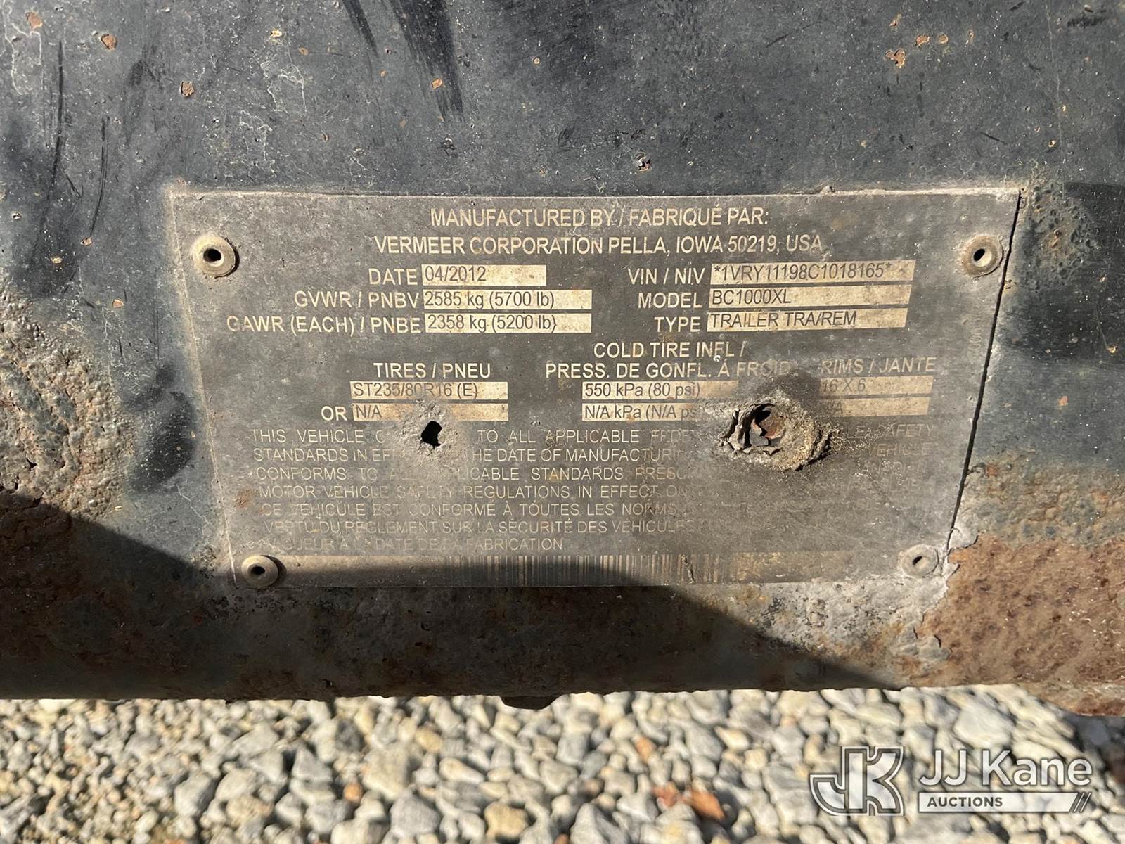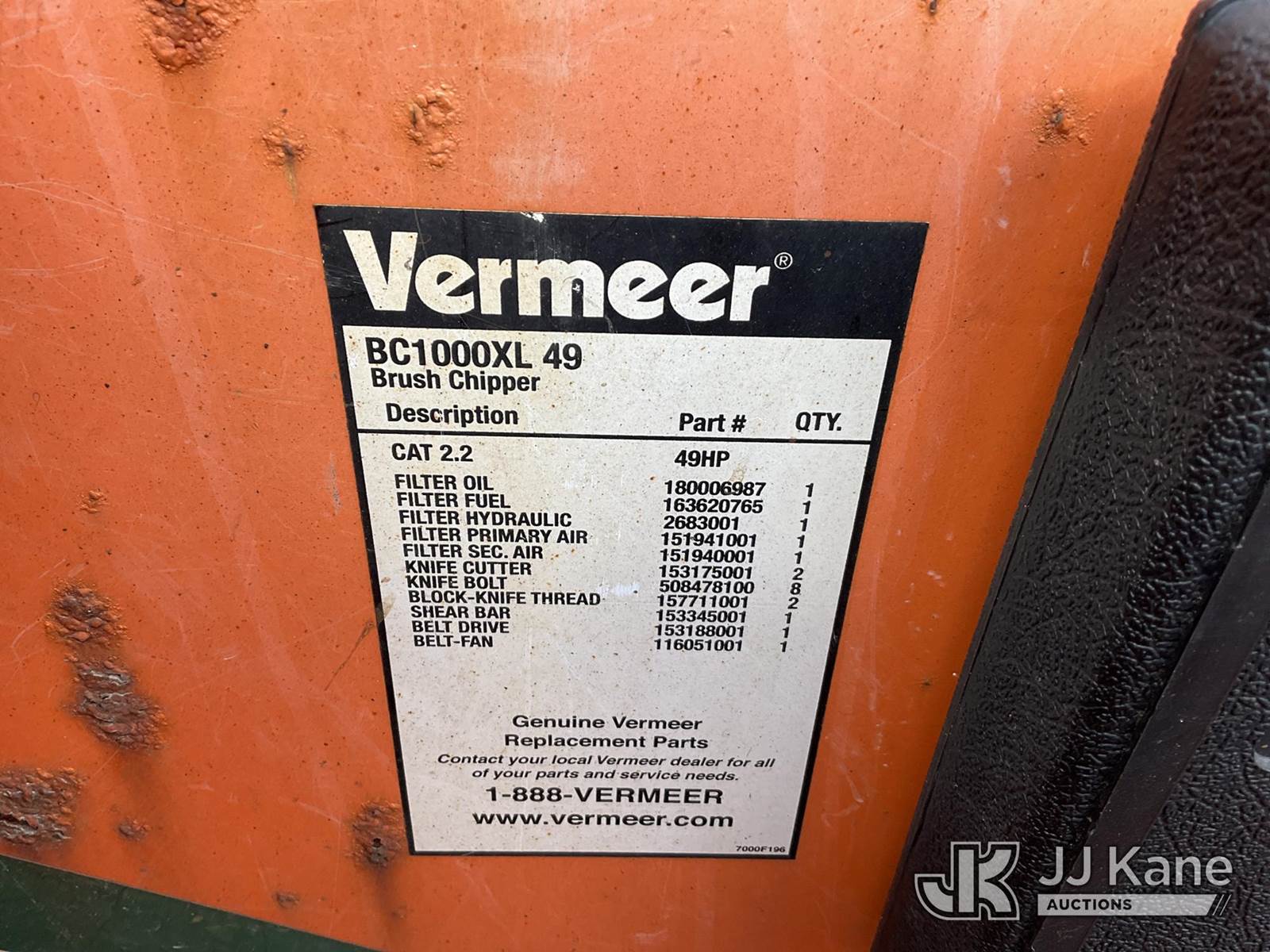 2012 Vermeer BC1000XL Chipper (12in Drum), Cat diesel, (Runs) (Bent Tongue, Rust Damage, Seller States: Safety Bar, Feed Wheel Motor, Drive Belt, Safety Chain Hook, Blades Need Repairs) (Reads 2,289 hours) This is a Titled Item NOTE: This unit is being sold AS IS/WHERE IS via Timed Auction and is located in Shrewsbury, MA. Inspection & preview days for this unit are the 2 business days prior to the first day of items closing for this auction, item is located at 11 Fortune Blvd Shrewsbury, MA 01545 and hours of operations are 8a-4p. For pre-sale questions, please contact Rob Gifford @ (508) 864-4126. (Buyer is responsible for removal. Assistance by consignor or JJ Kane Auctioneers is not assured.)