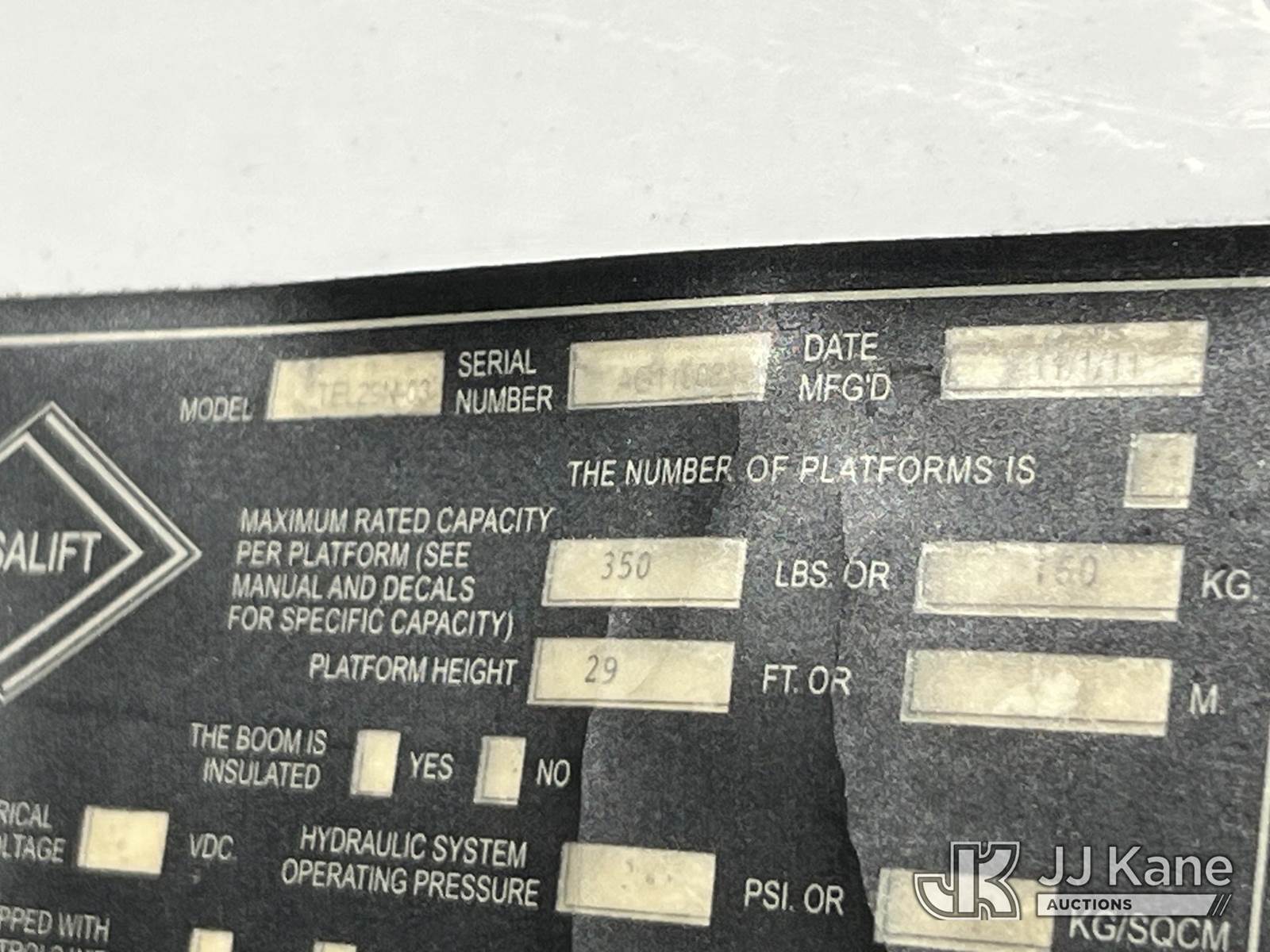 Versalift TEL29, 34 ft, Telescopic Non-Insulated Bucket Truck s/n AG110083, with single-man bucket, mounted behind cab on 2012 Ford F350 Service Truck, 10-cyl gas, Auto, A/C, with Cummins/Onan generator, (172,981 miles (unverified)) (Runs, Moves & Upper Operates ) This is a Titled Item NOTE: This unit is being sold AS IS/WHERE IS via Timed Auction and is located in Chester, VA. Inspection & preview days for this unit are the 2 business days prior to the first day of items closing for this auction, item is located at 13301 Great Coastal Dr Chester, VA 23836 and hours of operations are 8a-3p. For pre-sale questions, please contact Doug Caton @ 804-807-4574. (Manuals provided in cab) (Buyer is responsible for removal. Assistance by consignor or JJ Kane Auctions is not assured.)