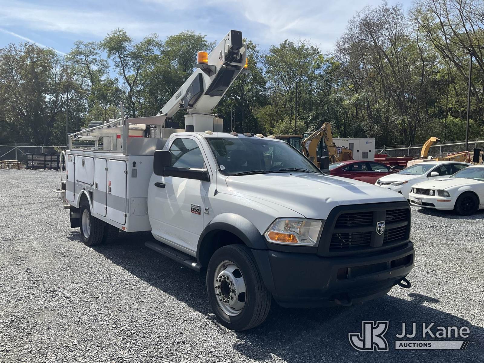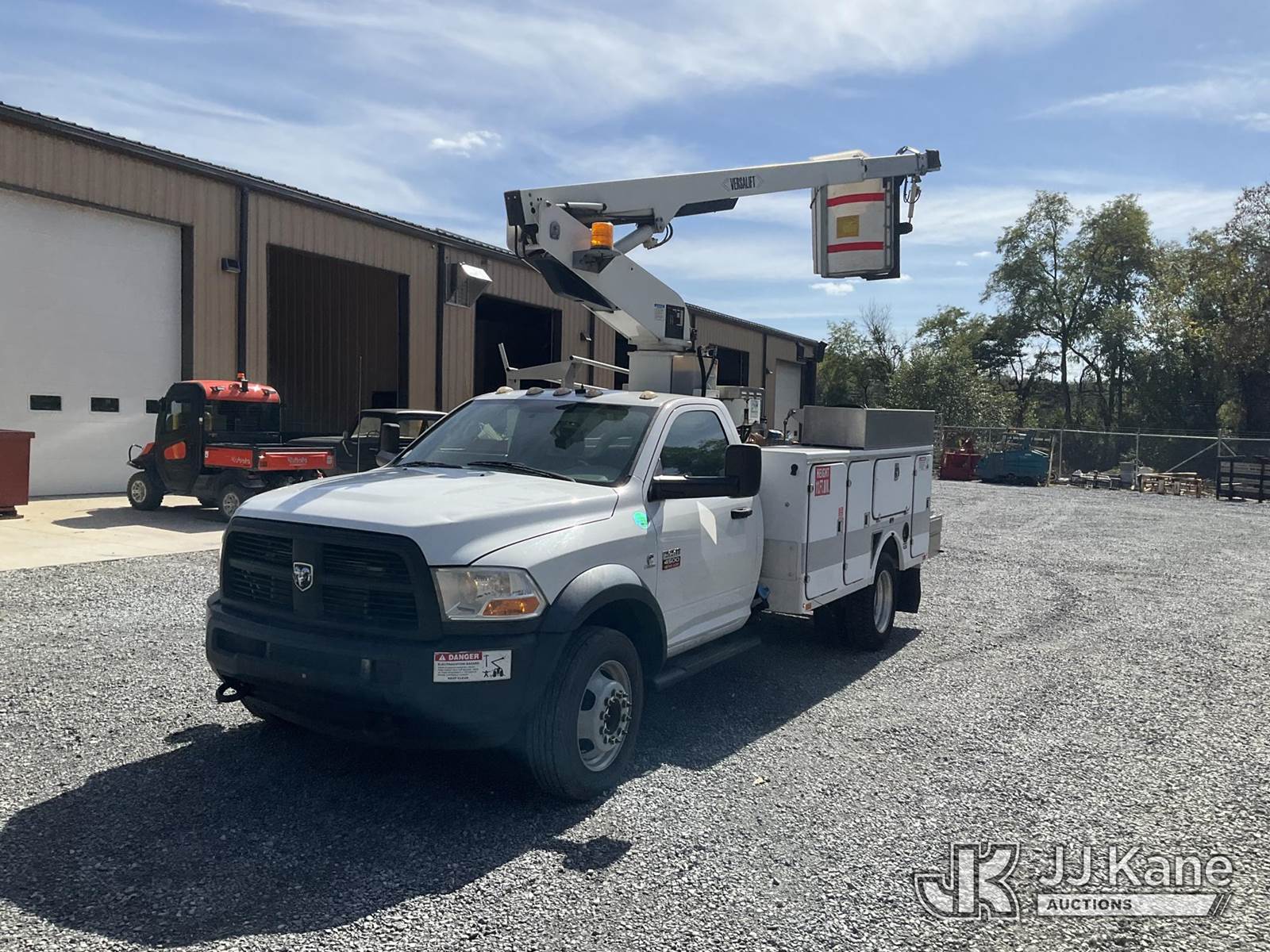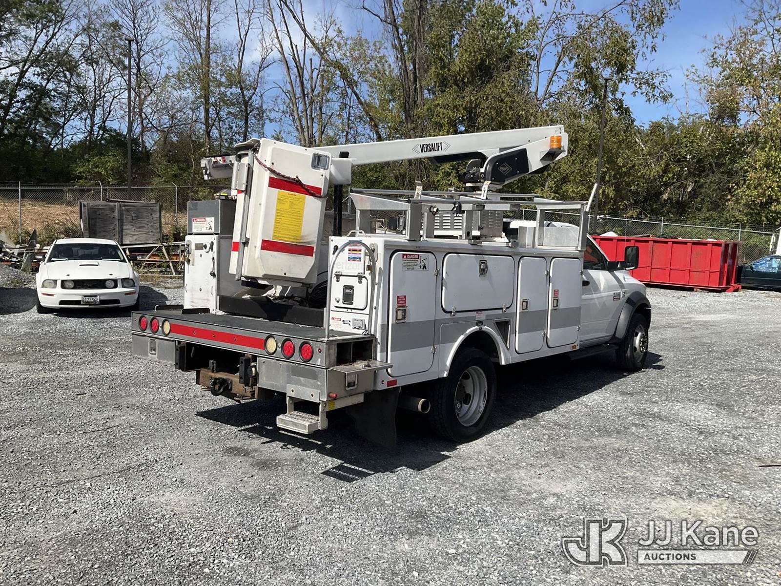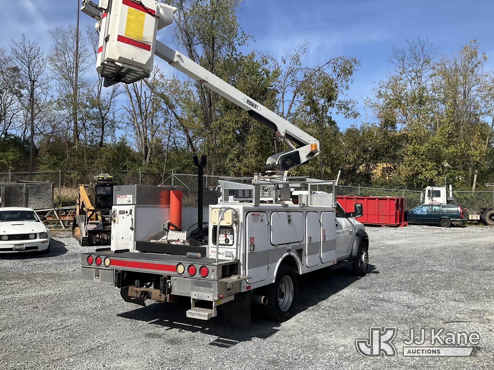 Versalift TEL29N-02, 34 ft, Non-Insulated Bucket Truck s/n AG120322, with single-man bucket, mounted behind cab on 2012 RAM 4500 Service Truck, 6.7L L6 Diesel, Auto, A/C, (141,117 miles) (Runs, Moves & Operates, Check Engine Light On, Jump To Start, Body Damage) (Removal is by Appointment Only, Buyer MUST make a appointment prior to picking up, Buyer/Transporter Must have PAID IN FULL RELEASE. No onsite assistance available, Please Come prepared.) (Reads 1,232 hours) This is a Titled Item NOTE: This unit is being sold AS IS/WHERE IS via Timed Auction and is located in Hagerstown, MD. Inspection & preview days for this unit are by appointment only; please contact us at contact@jjkane.com or 84-Go-JJKane for more details. For pre-sale questions, please contact the on-site office @ (301) 895-7777 or Kevin.Waggoner@JJKane.com. (Missing manuals, See Auction Company for Manufacturers Information to obtain manuals) (Buyer is responsible for removal. Assistance by consignor or JJ Kane Auctioneers is not assured.)