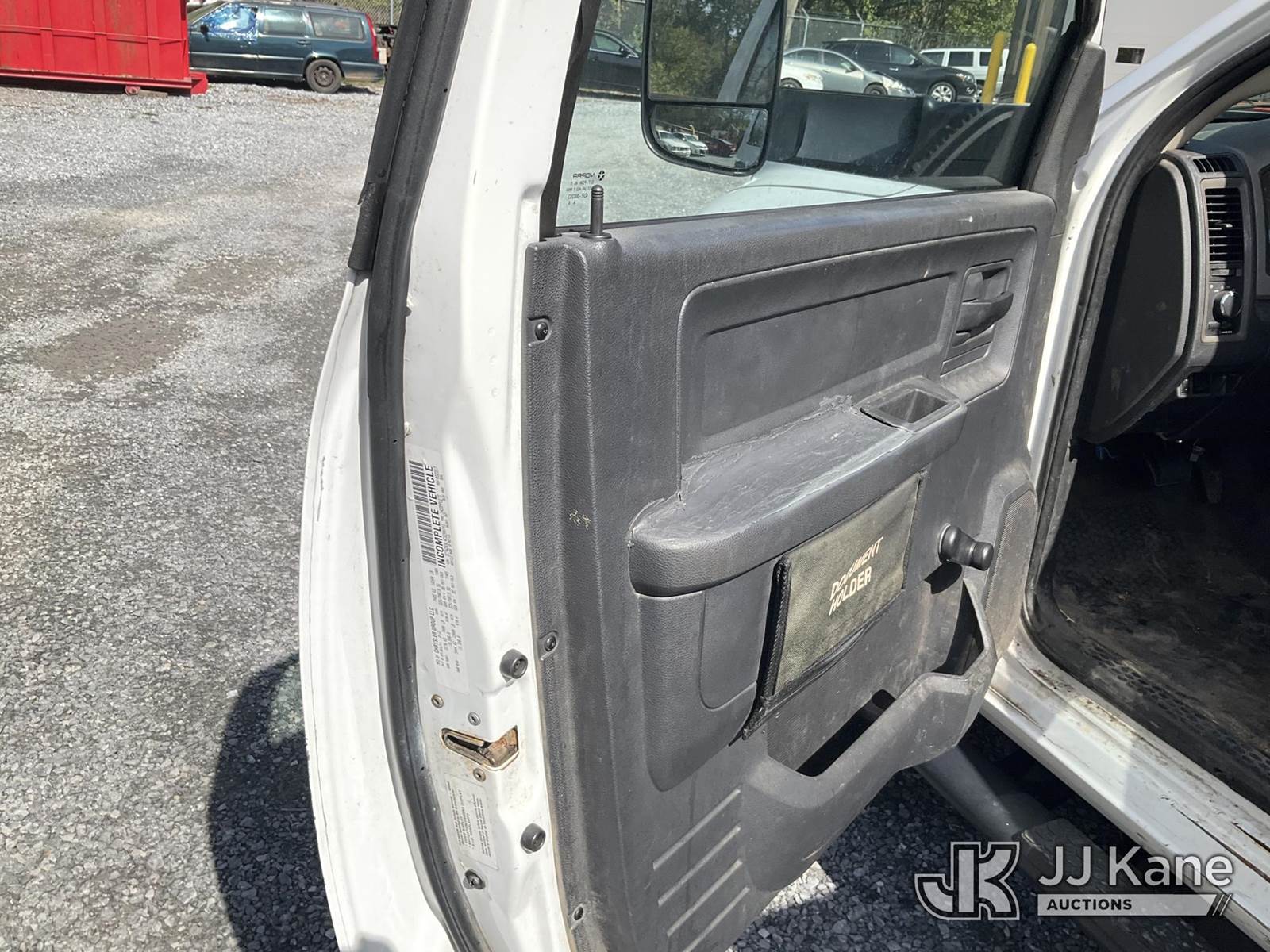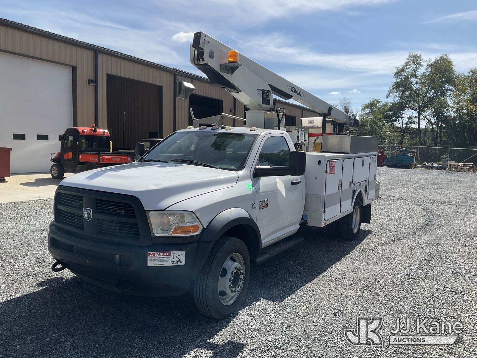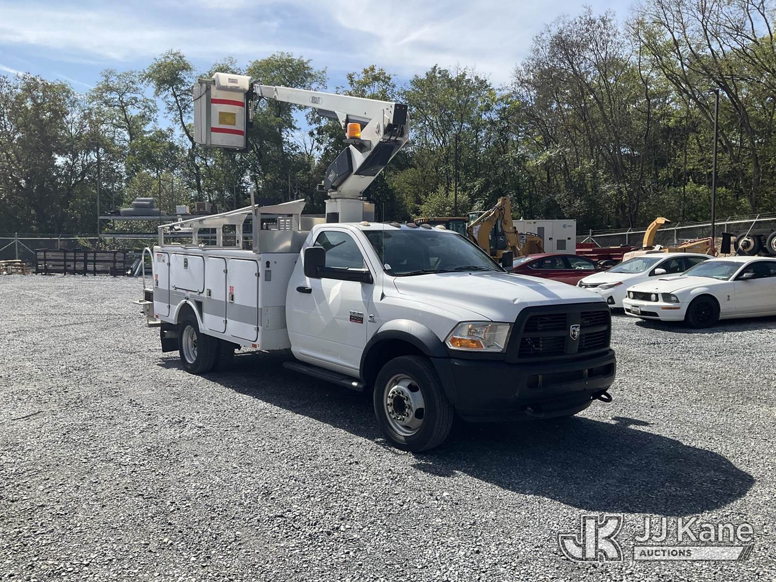 Versalift TEL29N-02, 34 ft, Non-Insulated Bucket Truck s/n AG120322, with single-man bucket, mounted behind cab on 2012 RAM 4500 Service Truck, 6.7L L6 Diesel, Auto, A/C, (141,117 miles) (Runs, Moves & Operates, Check Engine Light On, Jump To Start, Body Damage) (Removal is by Appointment Only, Buyer MUST make a appointment prior to picking up, Buyer/Transporter Must have PAID IN FULL RELEASE. No onsite assistance available, Please Come prepared.) (Reads 1,232 hours) This is a Titled Item NOTE: This unit is being sold AS IS/WHERE IS via Timed Auction and is located in Hagerstown, MD. Inspection & preview days for this unit are by appointment only; please contact us at contact@jjkane.com or 84-Go-JJKane for more details. For pre-sale questions, please contact the on-site office @ (301) 895-7777 or Kevin.Waggoner@JJKane.com. (Missing manuals, See Auction Company for Manufacturers Information to obtain manuals) (Buyer is responsible for removal. Assistance by consignor or JJ Kane Auctioneers is not assured.)