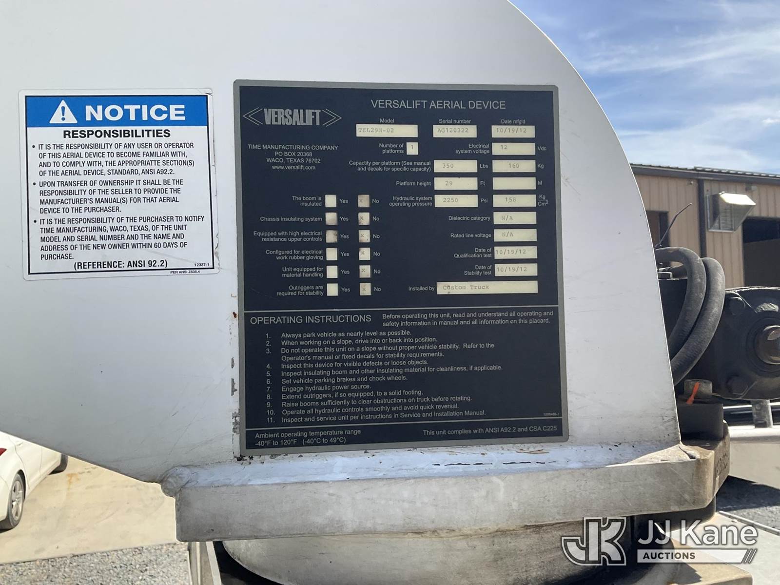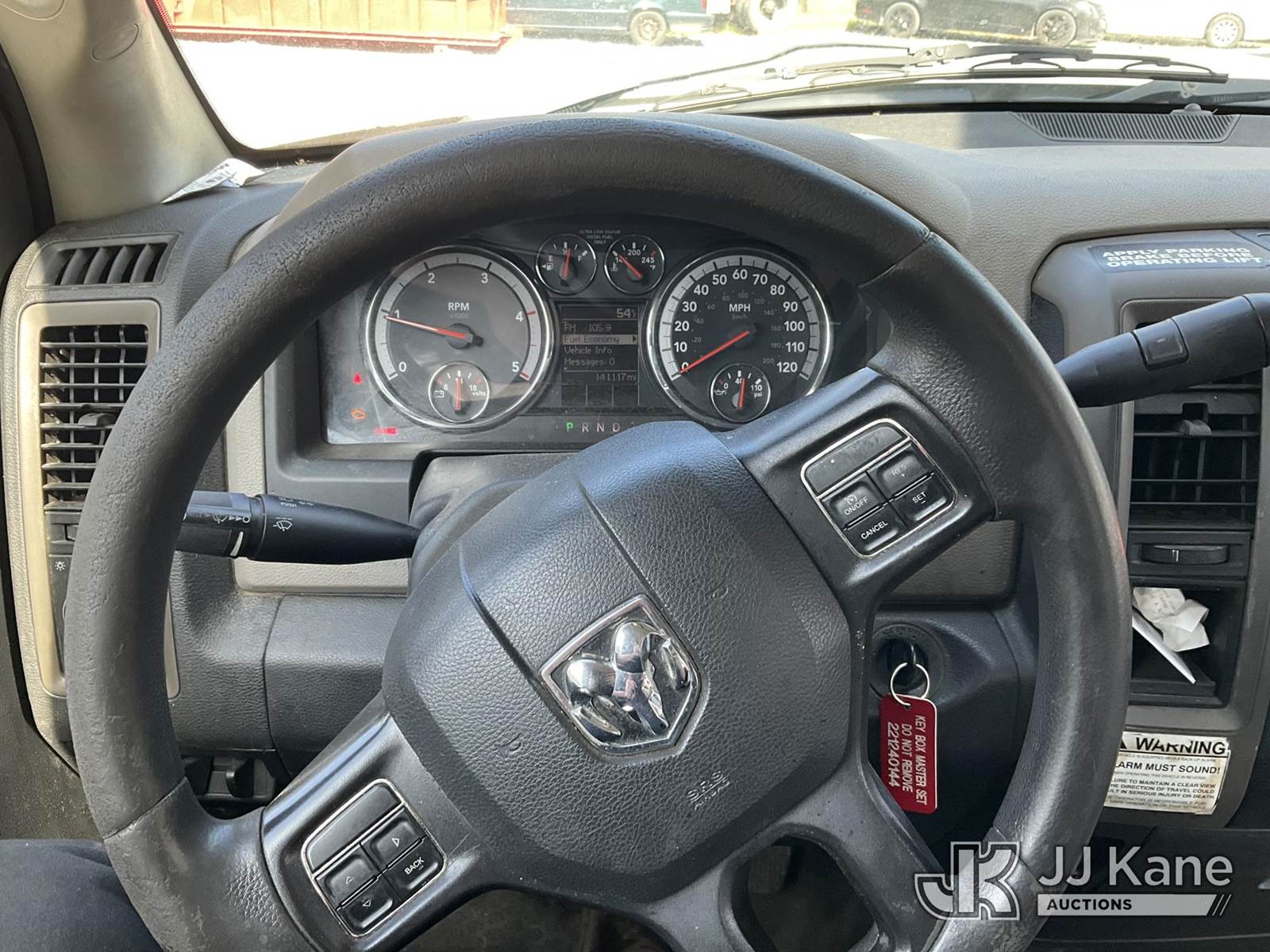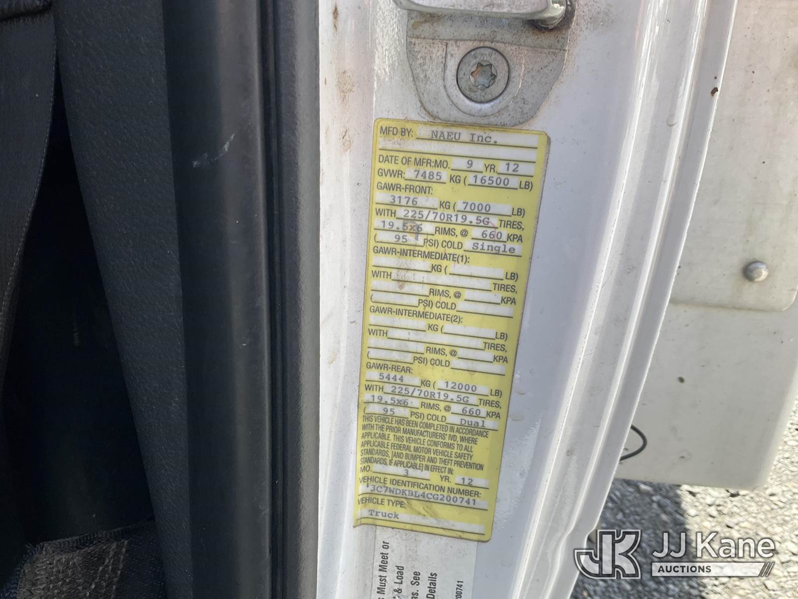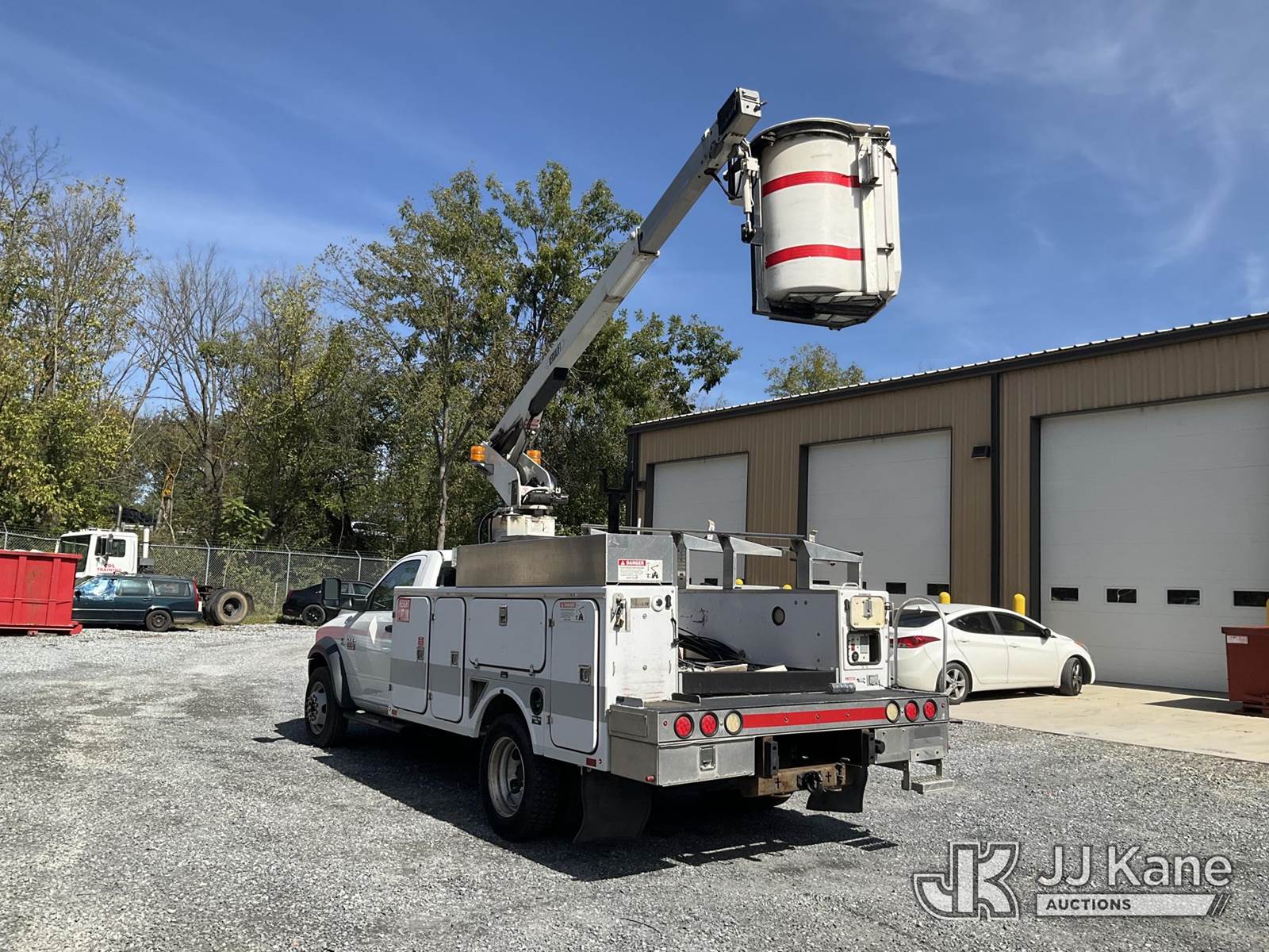 Versalift TEL29N-02, 34 ft, Non-Insulated Bucket Truck s/n AG120322, with single-man bucket, mounted behind cab on 2012 RAM 4500 Service Truck, 6.7L L6 Diesel, Auto, A/C, (141,117 miles) (Runs, Moves & Operates, Check Engine Light On, Jump To Start, Body Damage) (Removal is by Appointment Only, Buyer MUST make a appointment prior to picking up, Buyer/Transporter Must have PAID IN FULL RELEASE. No onsite assistance available, Please Come prepared.) (Reads 1,232 hours) This is a Titled Item NOTE: This unit is being sold AS IS/WHERE IS via Timed Auction and is located in Hagerstown, MD. Inspection & preview days for this unit are by appointment only; please contact us at contact@jjkane.com or 84-Go-JJKane for more details. For pre-sale questions, please contact the on-site office @ (301) 895-7777 or Kevin.Waggoner@JJKane.com. (Missing manuals, See Auction Company for Manufacturers Information to obtain manuals) (Buyer is responsible for removal. Assistance by consignor or JJ Kane Auctioneers is not assured.)