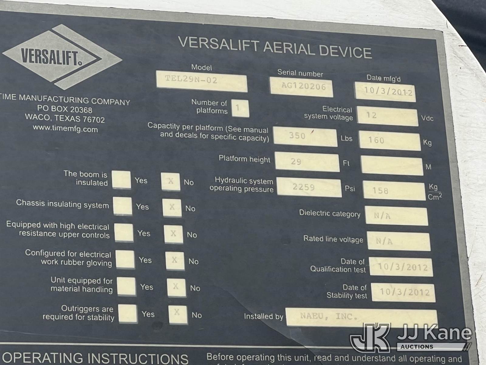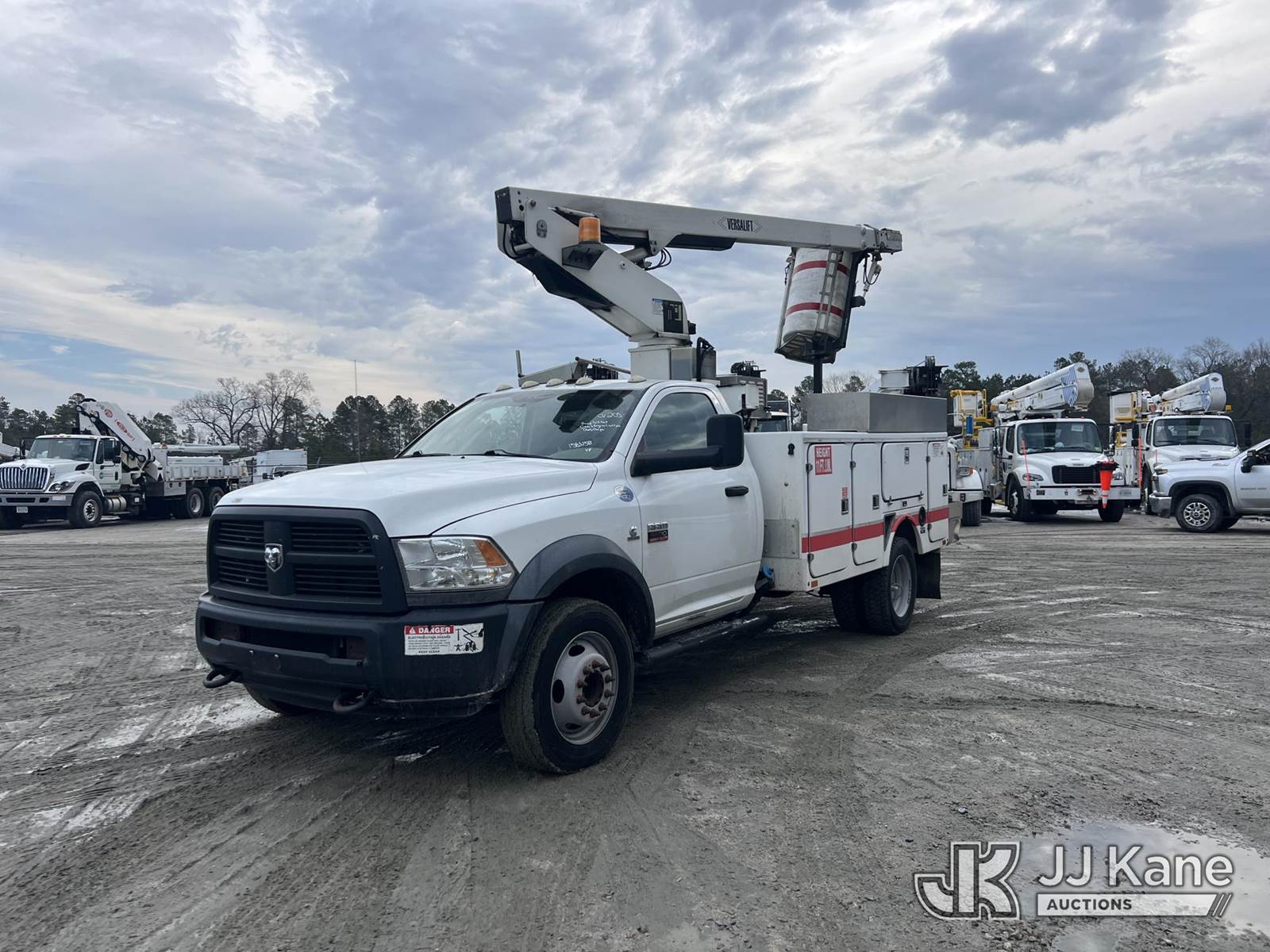 Versalift TEL29N-02, 34 ft, Telescopic Non-Insulated Bucket Truck s/n AG120206, with single-man bucket, mounted behind cab on 2012 RAM 4500 Service Truck, s/n 3C7WDKBL8CG200757, Cummins 6.7L diesel, Auto, A/C, (220,686 miles) (Runs, Moves & Upper Operates) (Jump To Start, Engine Shuts Off After a few Minutes Of Running, Check Engine Light On, Body Damage ) This is a Titled Item NOTE: This unit is being sold AS IS/WHERE IS via Timed Auction and is located in Chester, VA. Inspection & preview days for this unit are the 2 business days prior to the first day of items closing for this auction, item is located at 13301 Great Coastal Dr Chester, VA 23836 and hours of operations are 8a-3p. For pre-sale questions, please contact Doug Caton @ 804-807-4574. (Manuals provided in cab) (Buyer is responsible for removal. Assistance by consignor or JJ Kane Auctions is not assured.)