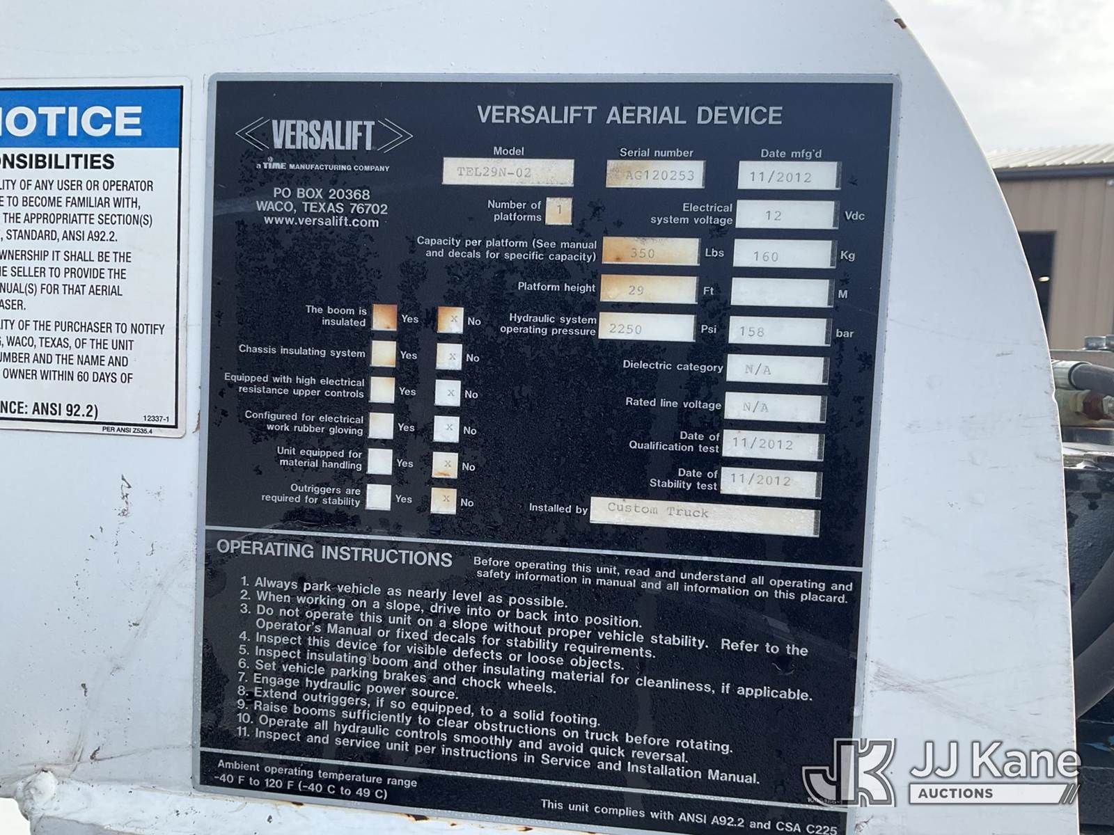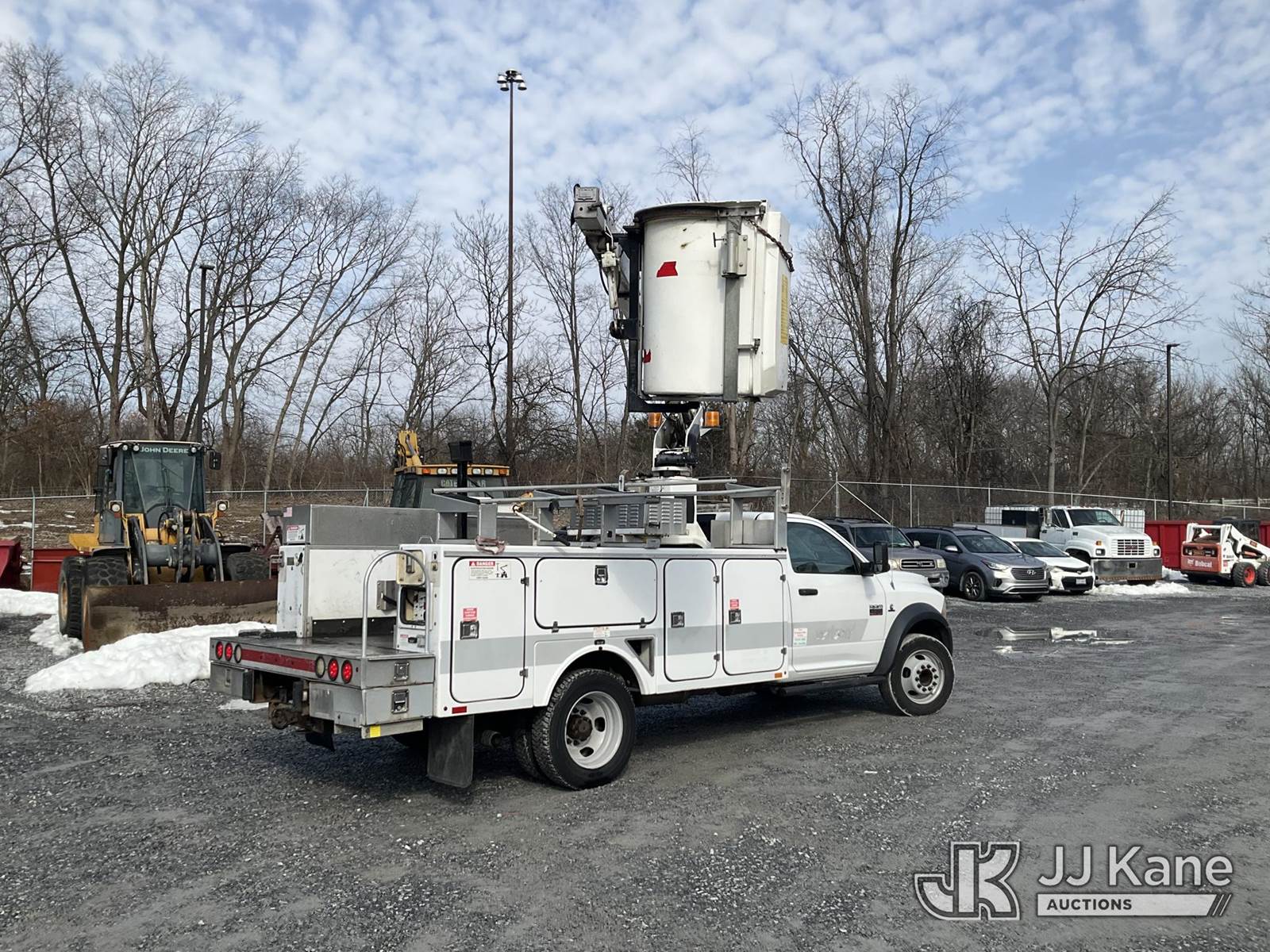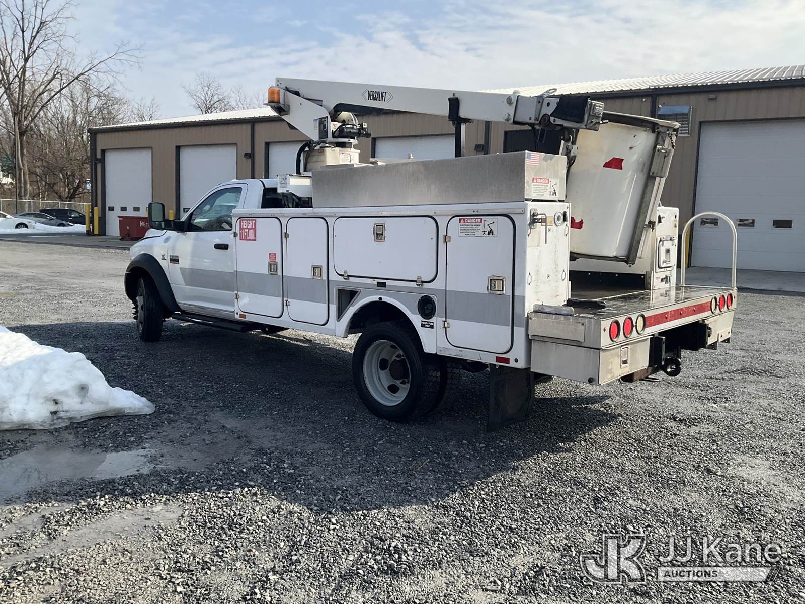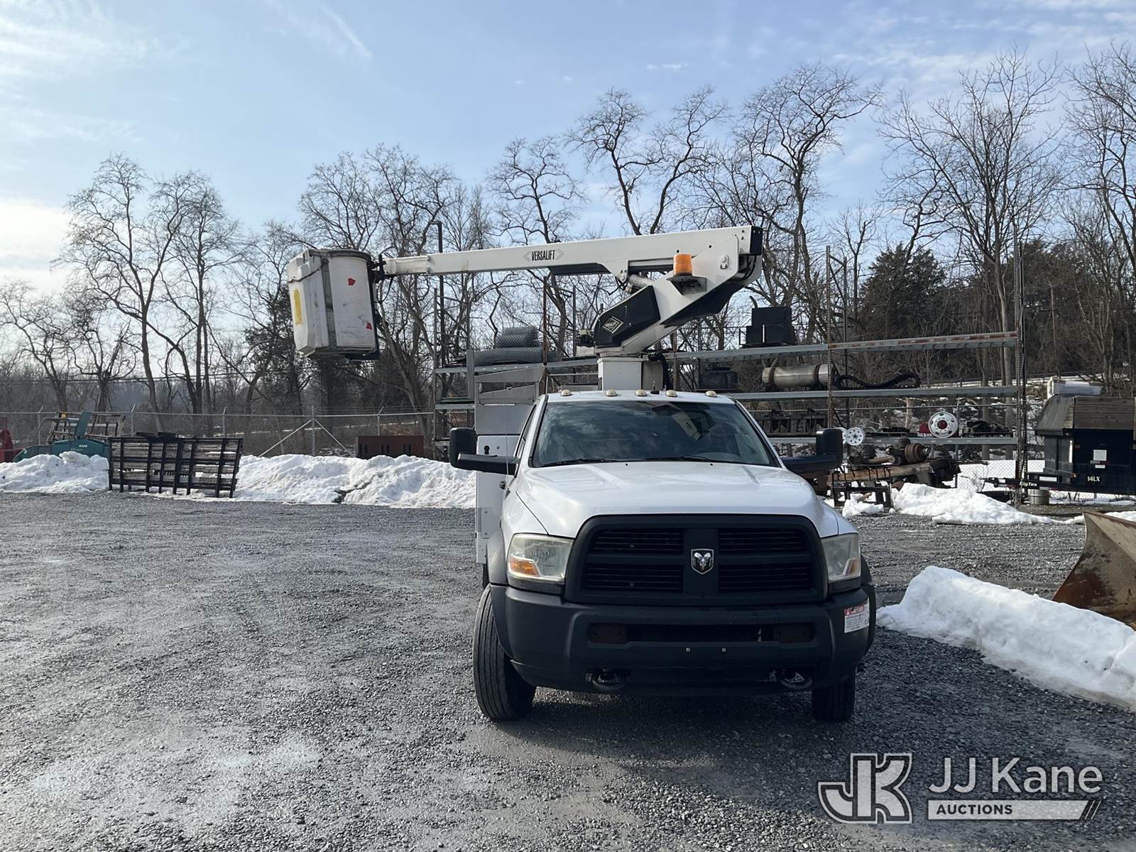Versalift TEL29N-02, 34 ft, Telescopic Non-Insulated Platform Lift s/n AG120253, with Single Man Bucket, mounted on 2012 Dodge Ram 4500 Service Truck, 6.7L L6 Diesel, Auto, A/C, (127,587 miles) (Runs & Movers, No Brakes, Upper Operates SLowly) (Removal is by Appointment Only, Buyer MUST make a appointment prior to picking up, Buyer/Transporter Must have PAID IN FULL RELEASE. No onsite assistance available, Please Come prepared.) (Reads 548 hours) This is a Titled Item NOTE: This unit is being sold AS IS/WHERE IS via Timed Auction and is located in Hagerstown, MD. Inspection & preview days for this unit are by appointment only; please contact us at contact@jjkane.com or 84-Go-JJKane for more details. For pre-sale questions, please contact the on-site office @ (301) 895-7777 or Kevin.Waggoner@JJKane.com. (Buyer is responsible for removal. Assistance by consignor or JJ Kane Auctions is not assured.)
