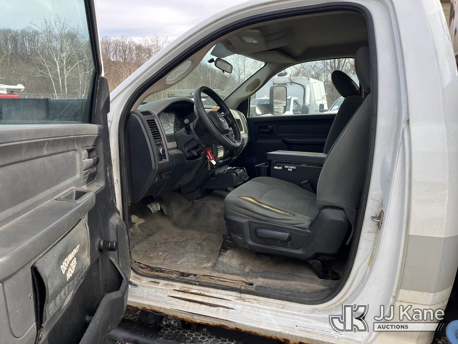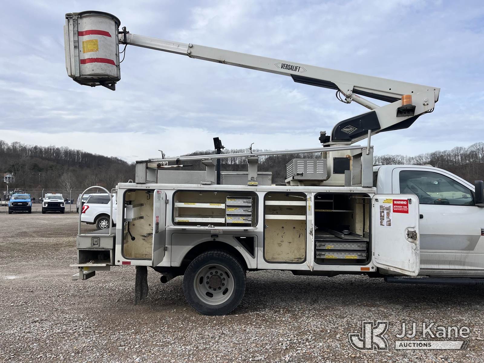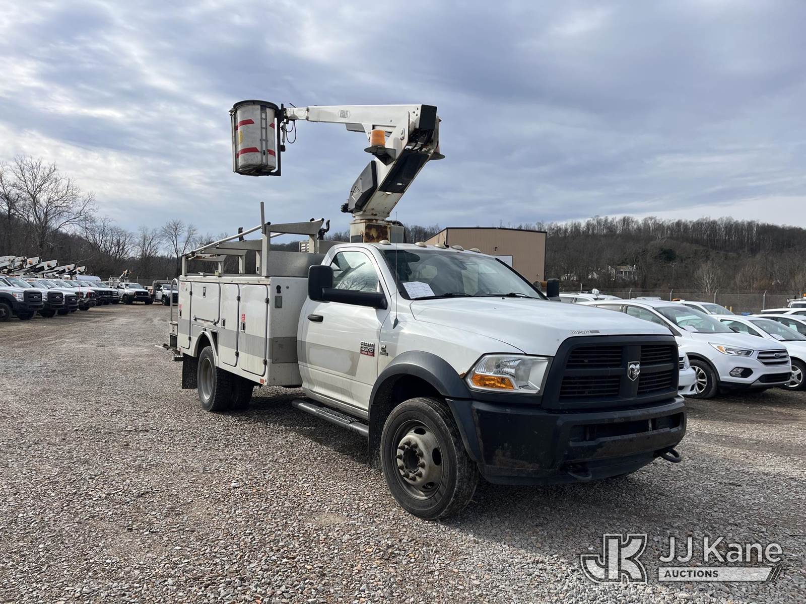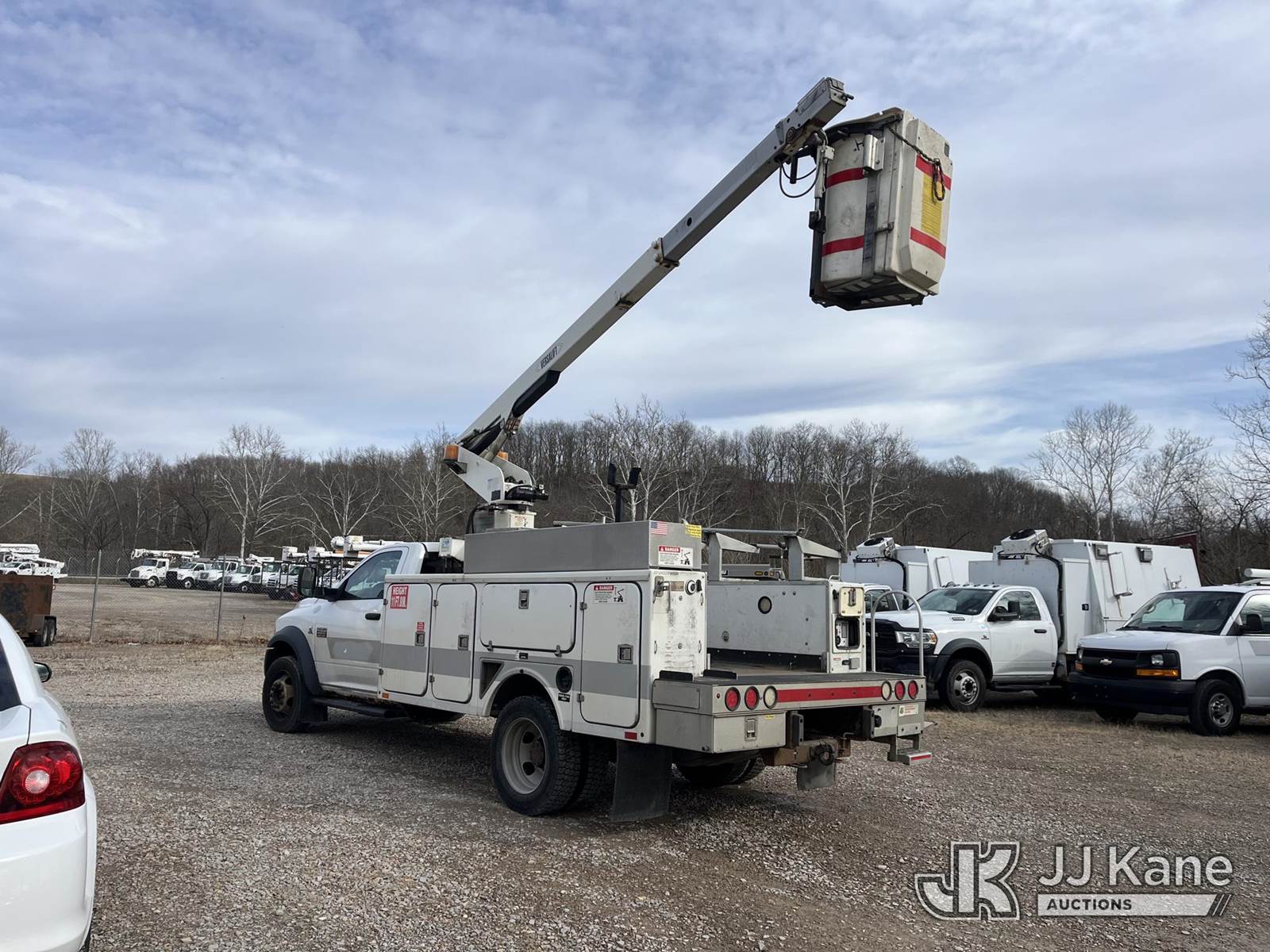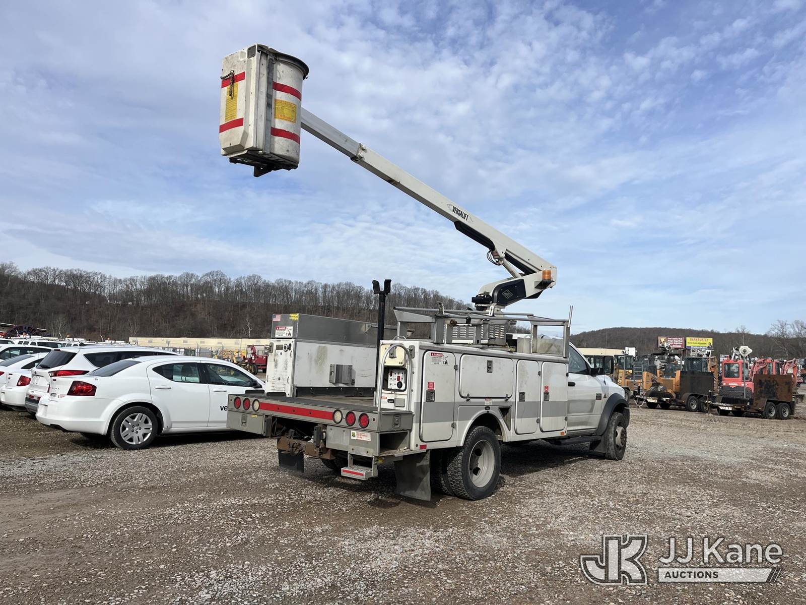 Versalift TEL29N, 34 ft, Non-Insulated Bucket Truck s/n AG120323, with single-man bucket, mounted behind cab on 2012 Dodge Ram 4500 4x2 Service Truck, 6.7L L6 Turbo Diesel, Auto, A/C, (188,833 miles) (Runs, Moves & Operates, Jump To Start, Check Engine Light On, Damaged Side Mirror, Removed Upper Serial Tag, Body & Rust Damage) (Reads 1,415 hours) This is a Titled Item NOTE: This unit is being sold AS IS/WHERE IS via Timed Auction and is located in Smock, PA. Inspection & preview days for this unit are the 2 business days prior to the first day of items closing for this auction, item is located at 1000 Franklin Dr Smock, PA 15480 and hours of operations are 7:00 am to 3:30 pm. For pre-sale questions, please contact Alaina White @ (724) 562-2575 or Alaina.White@JJKane.com. (Missing manuals, See Auction Company for Manufacturers Information to obtain manuals) (Buyer is responsible for removal. Assistance by consignor or JJ Kane Auctions is not assured.)