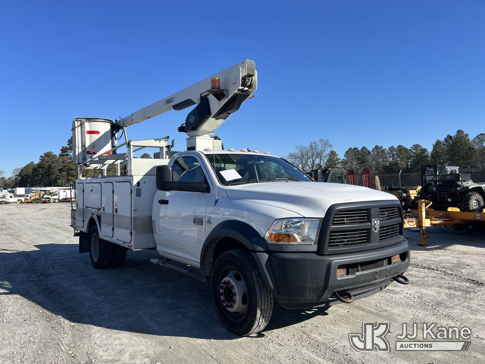 Versalift TEL29N, 34 ft, Telescopic Non-Insulated Bucket Truck s/n AG120391, with single-man bucket, mounted behind cab on 2012 Ram 4500 Service Truck, Cummins 6.7L diesel, Auto, A/C, (193,618 miles) (Runs, Moves & Upper Operates) (Check Engine Light On, Paint Damage, Upper Placard Torn) This is a Titled Item NOTE: This unit is being sold AS IS/WHERE IS via Timed Auction and is located in Chester, VA. Inspection & preview days for this unit are the 2 business days prior to the first day of items closing for this auction, item is located at 13301 Great Coastal Dr Chester, VA 23836 and hours of operations are 8a-3p. For pre-sale questions, please contact Doug Caton @ 804-807-4574. (Manuals provided in cab) (Buyer is responsible for removal. Assistance by consignor or JJ Kane Auctions is not assured.)