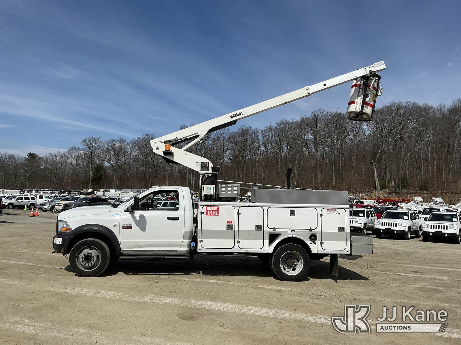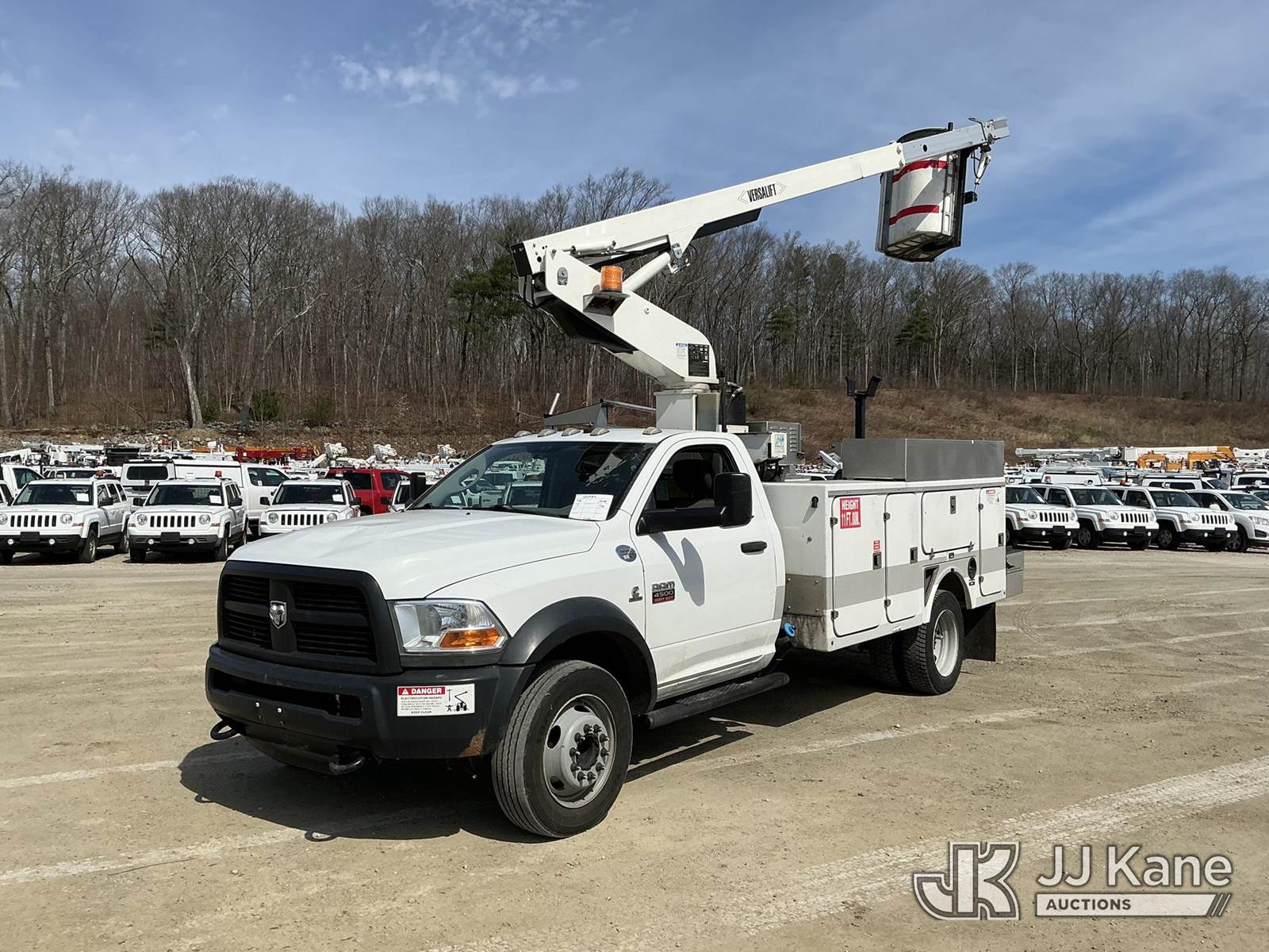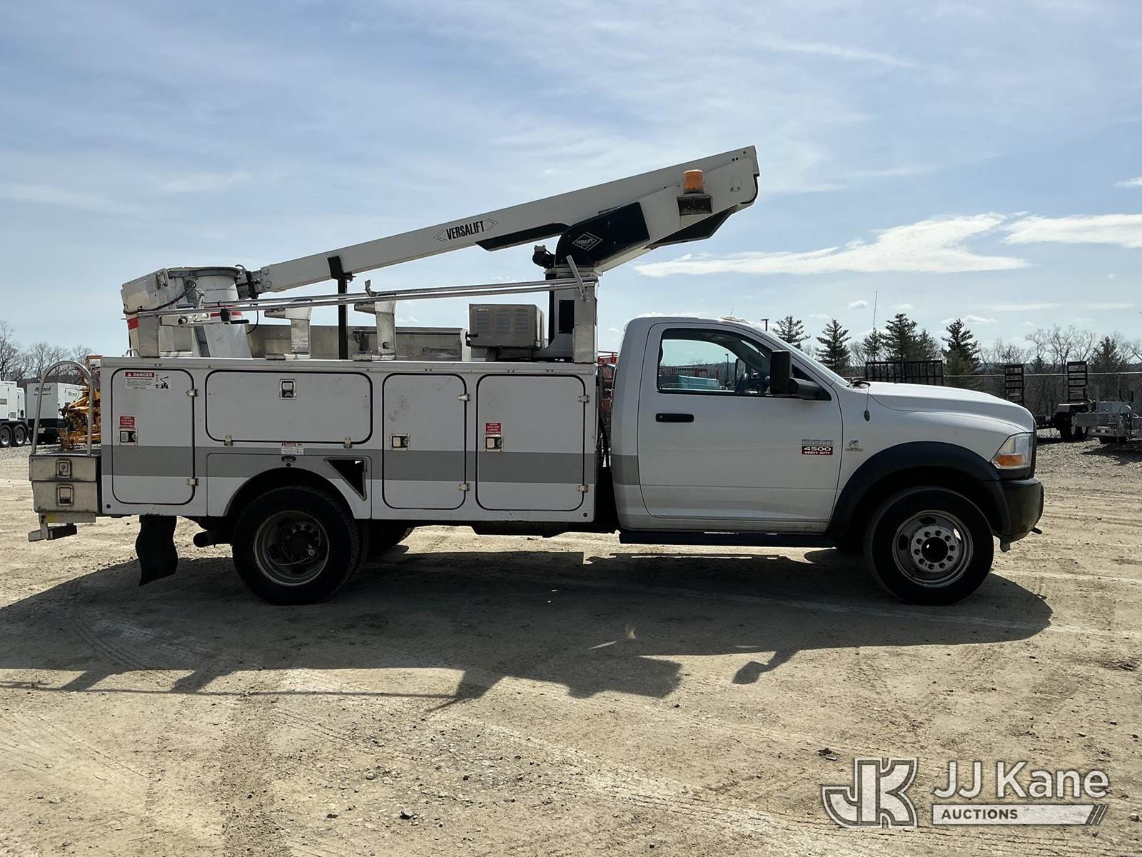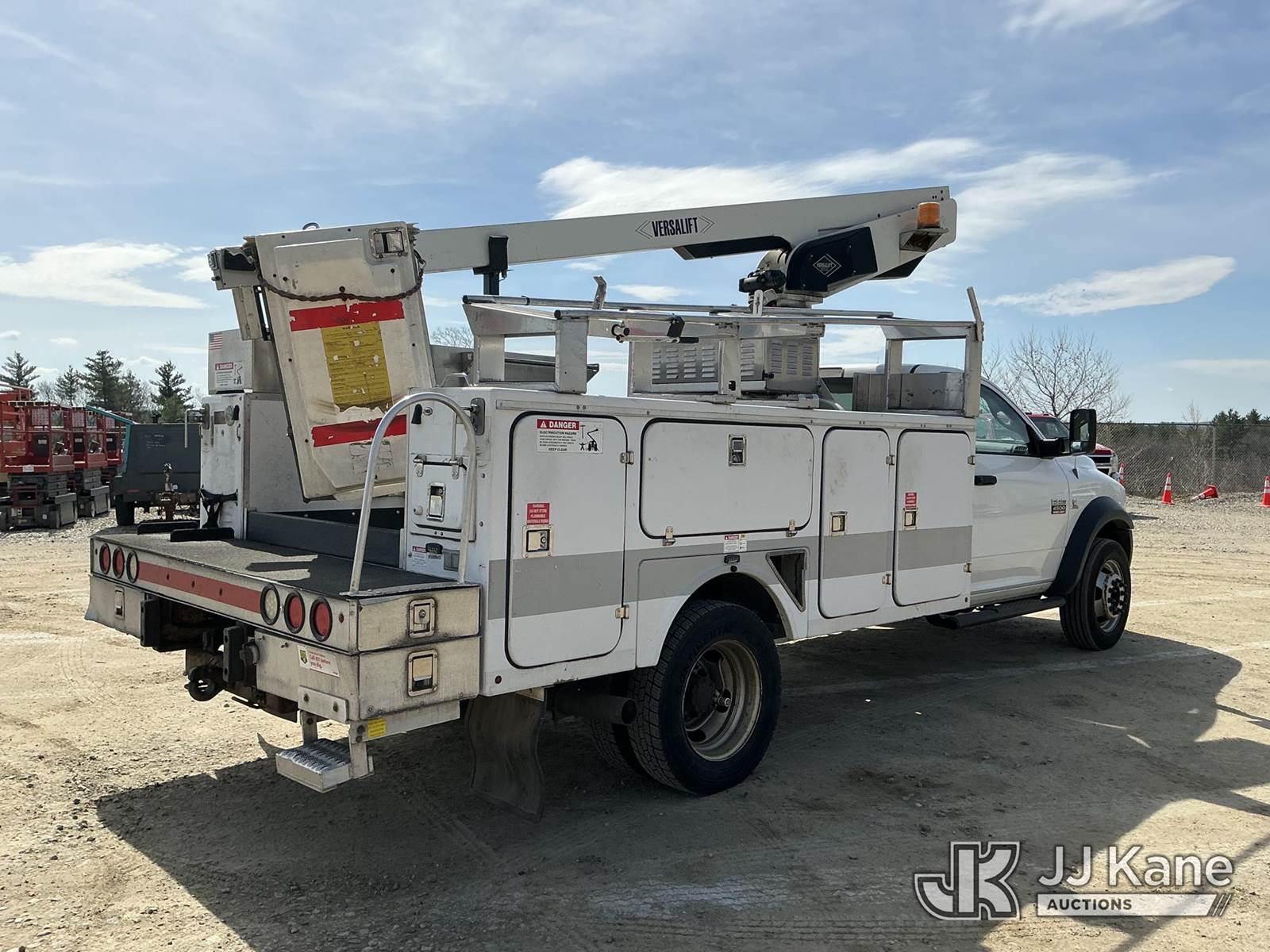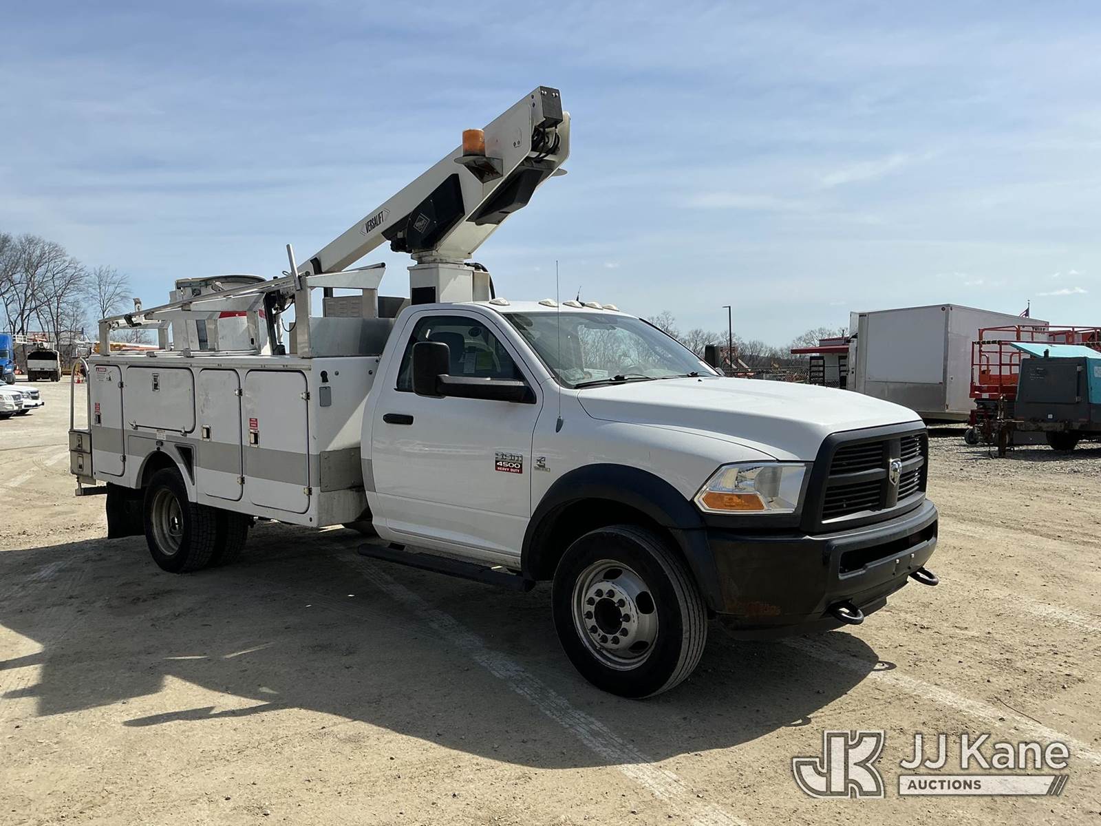 Versalift TEL29N03, 34 ft, Telescopic Non-Insulated Bucket Truck s/n AG120221, with single-man bucket, mounted behind cab on 2012 Dodge Ram 4500 Service Truck, Cummins 6.7L RWD, diesel, Auto, A/C, (71,651 miles) (Runs, Moves & Upper Operates) This is a Titled Item NOTE: This unit is being sold AS IS/WHERE IS via Timed Auction and is located in Shrewsbury, MA. Inspection & preview days for this unit are the 2 business days prior to the first day of items closing for this auction, item is located at 11 Fortune Blvd Shrewsbury, MA 01545 and hours of operations are 8a-4p. For pre-sale questions, please contact Rob Gifford @ (508) 864-4126. (Manuals provided in cab) (Buyer is responsible for removal. Assistance by consignor or JJ Kane Auctions is not assured.)