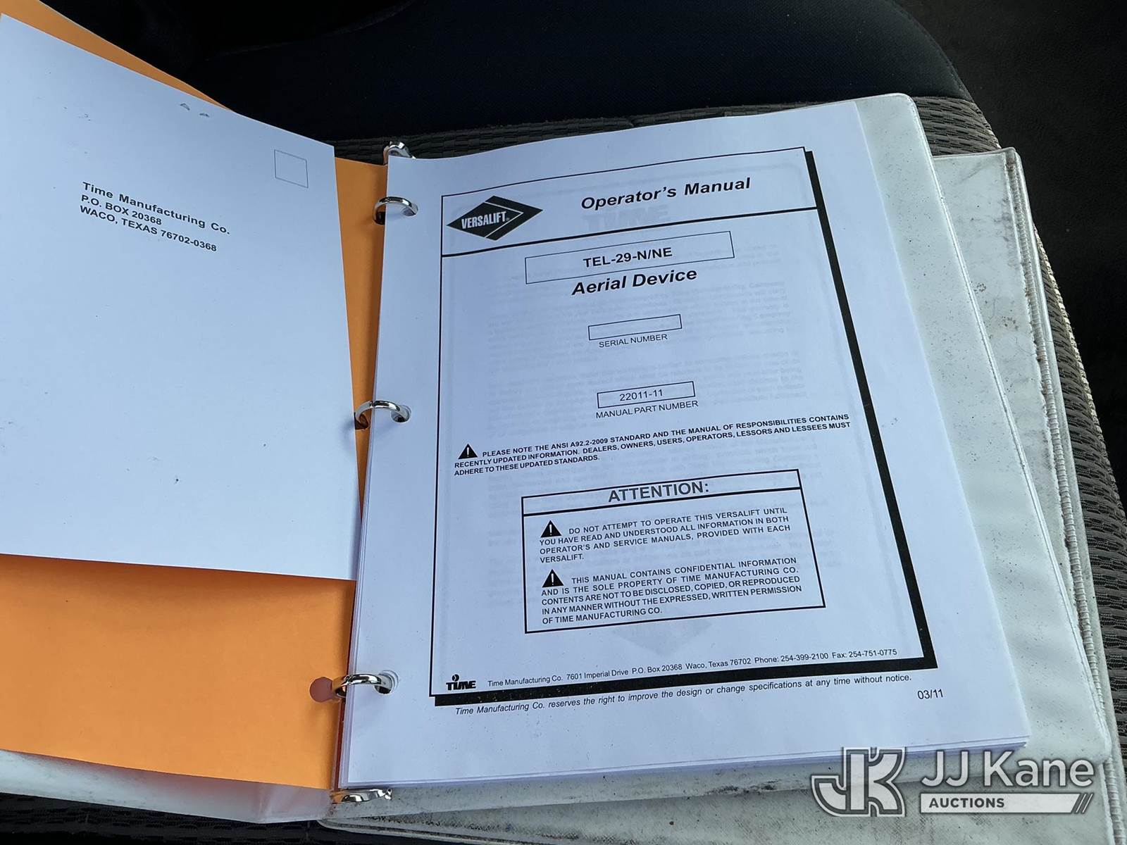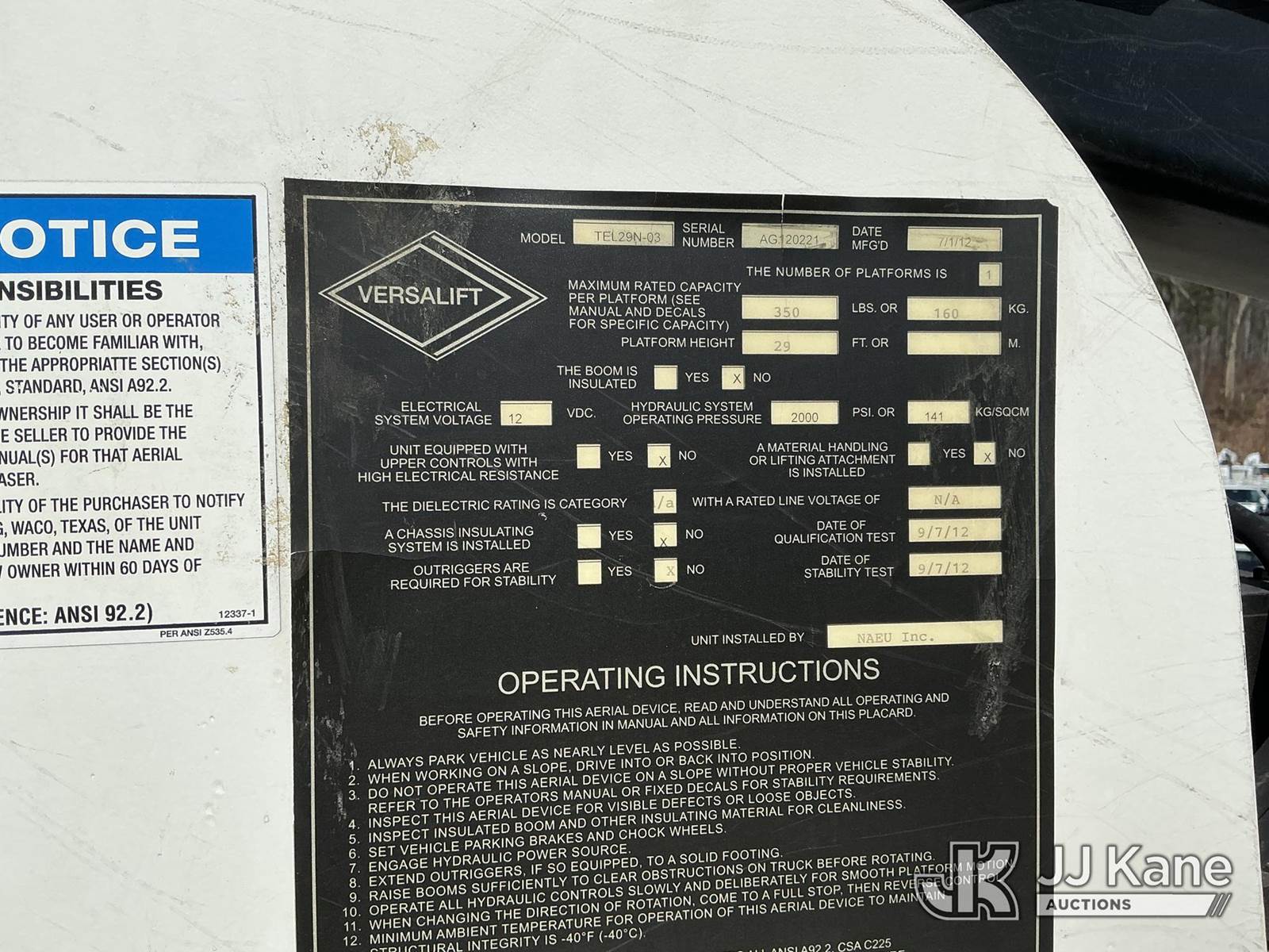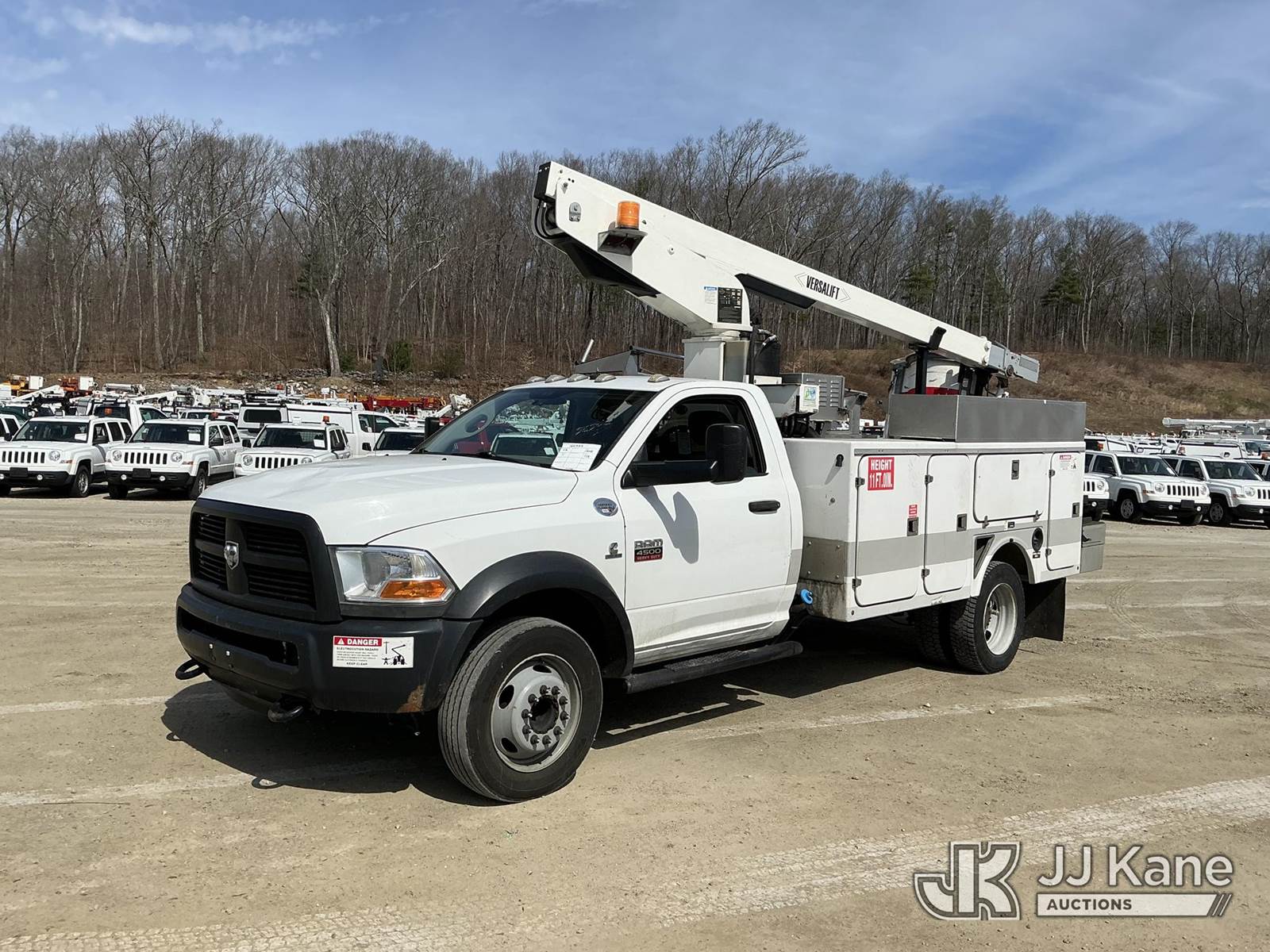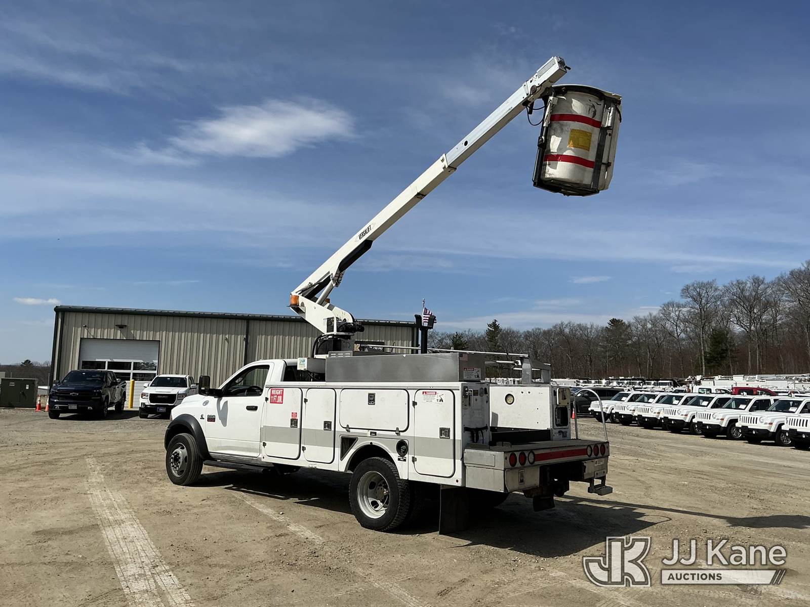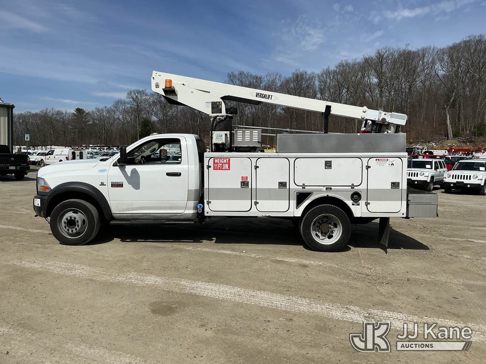 Versalift TEL29N03, 34 ft, Telescopic Non-Insulated Bucket Truck s/n AG120221, with single-man bucket, mounted behind cab on 2012 Dodge Ram 4500 Service Truck, Cummins 6.7L RWD, diesel, Auto, A/C, (71,651 miles) (Runs, Moves & Upper Operates) This is a Titled Item NOTE: This unit is being sold AS IS/WHERE IS via Timed Auction and is located in Shrewsbury, MA. Inspection & preview days for this unit are the 2 business days prior to the first day of items closing for this auction, item is located at 11 Fortune Blvd Shrewsbury, MA 01545 and hours of operations are 8a-4p. For pre-sale questions, please contact Rob Gifford @ (508) 864-4126. (Manuals provided in cab) (Buyer is responsible for removal. Assistance by consignor or JJ Kane Auctions is not assured.)