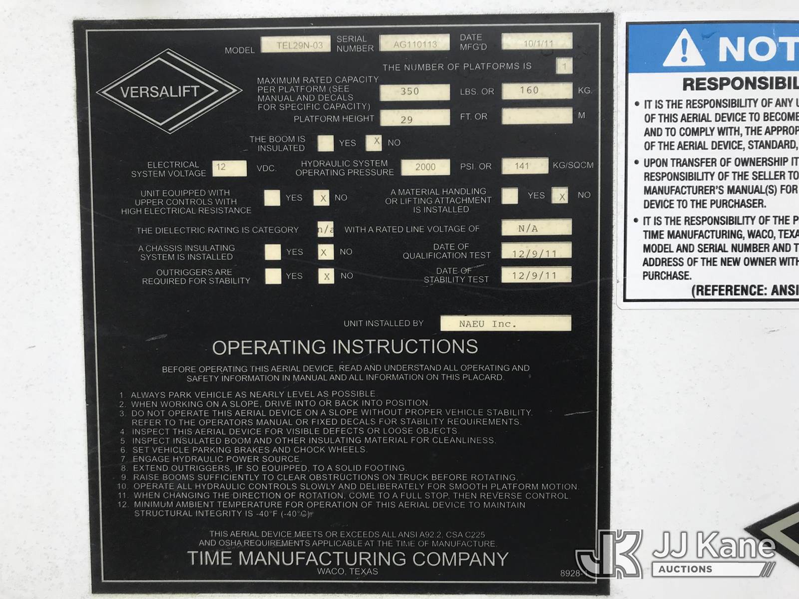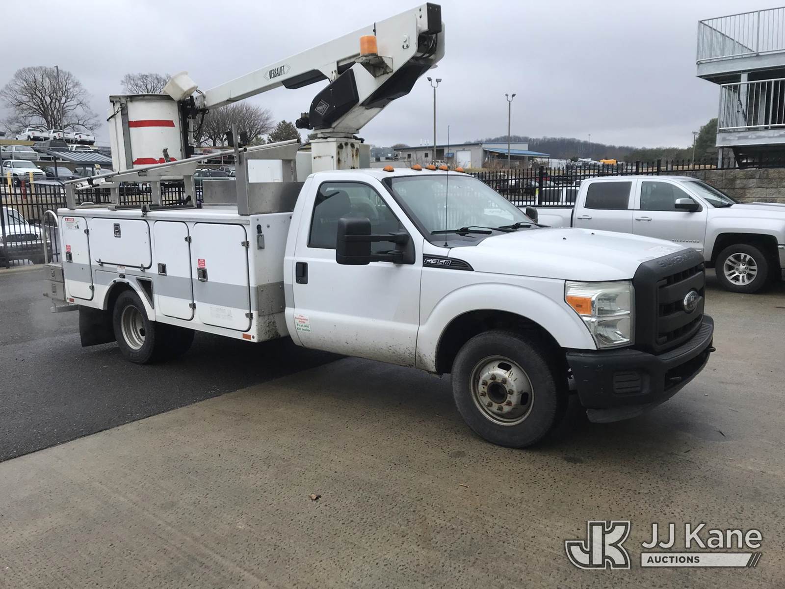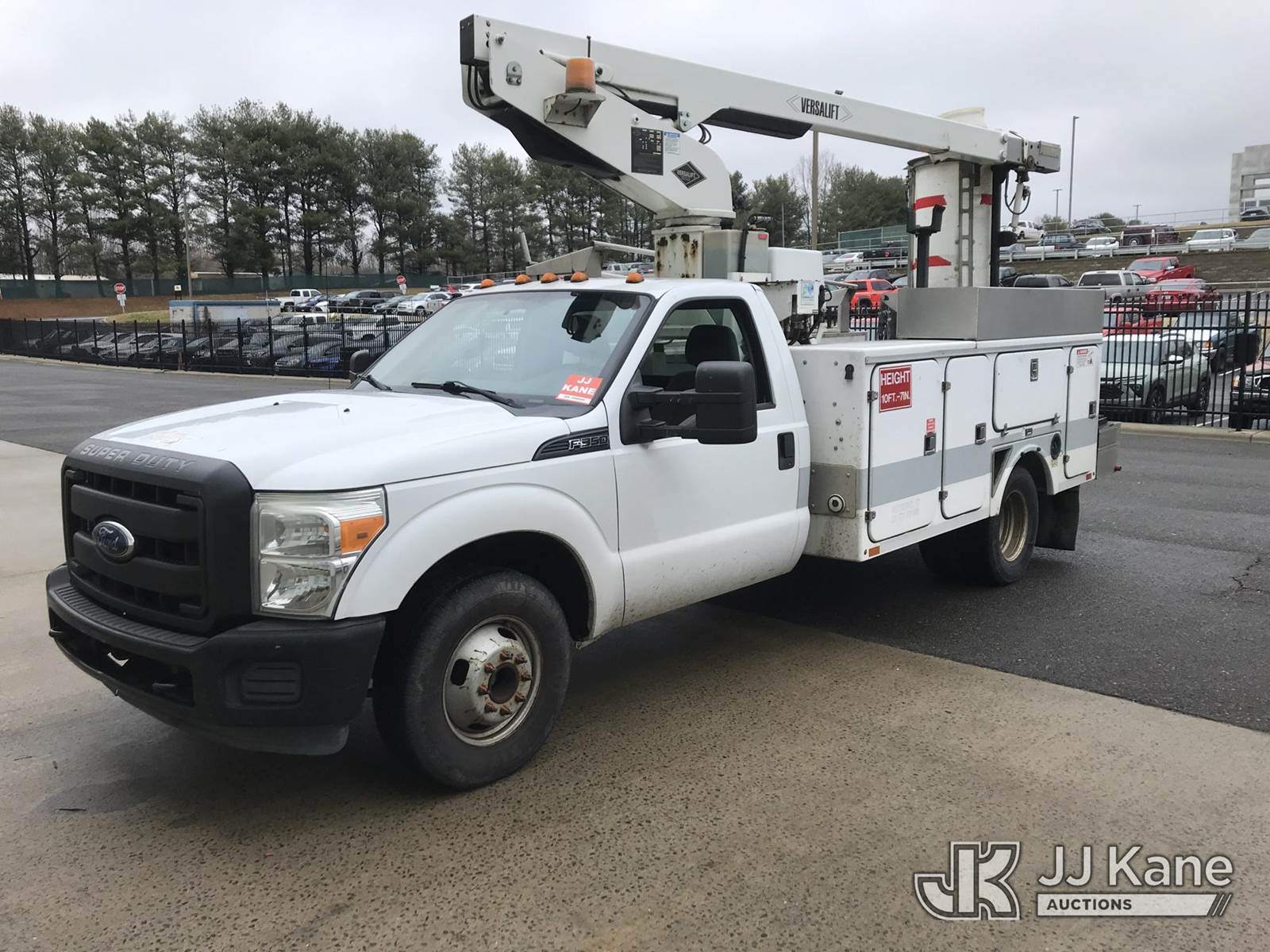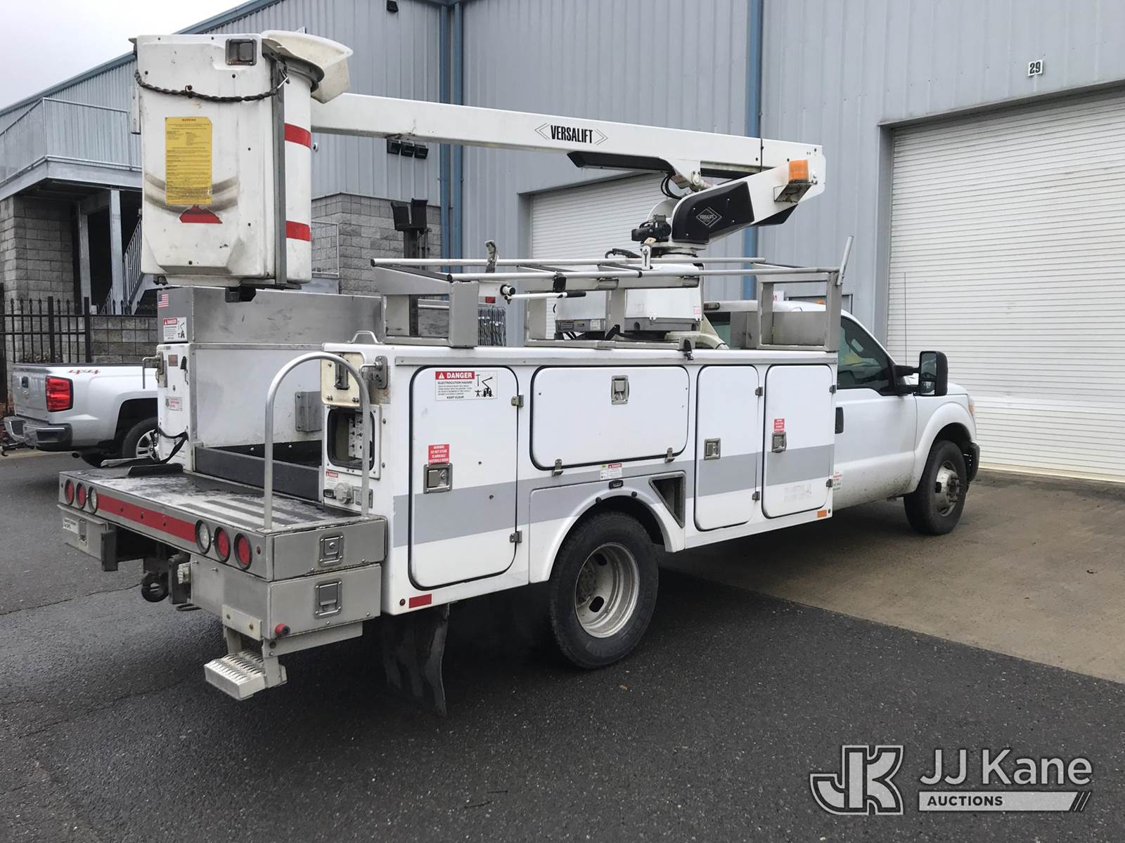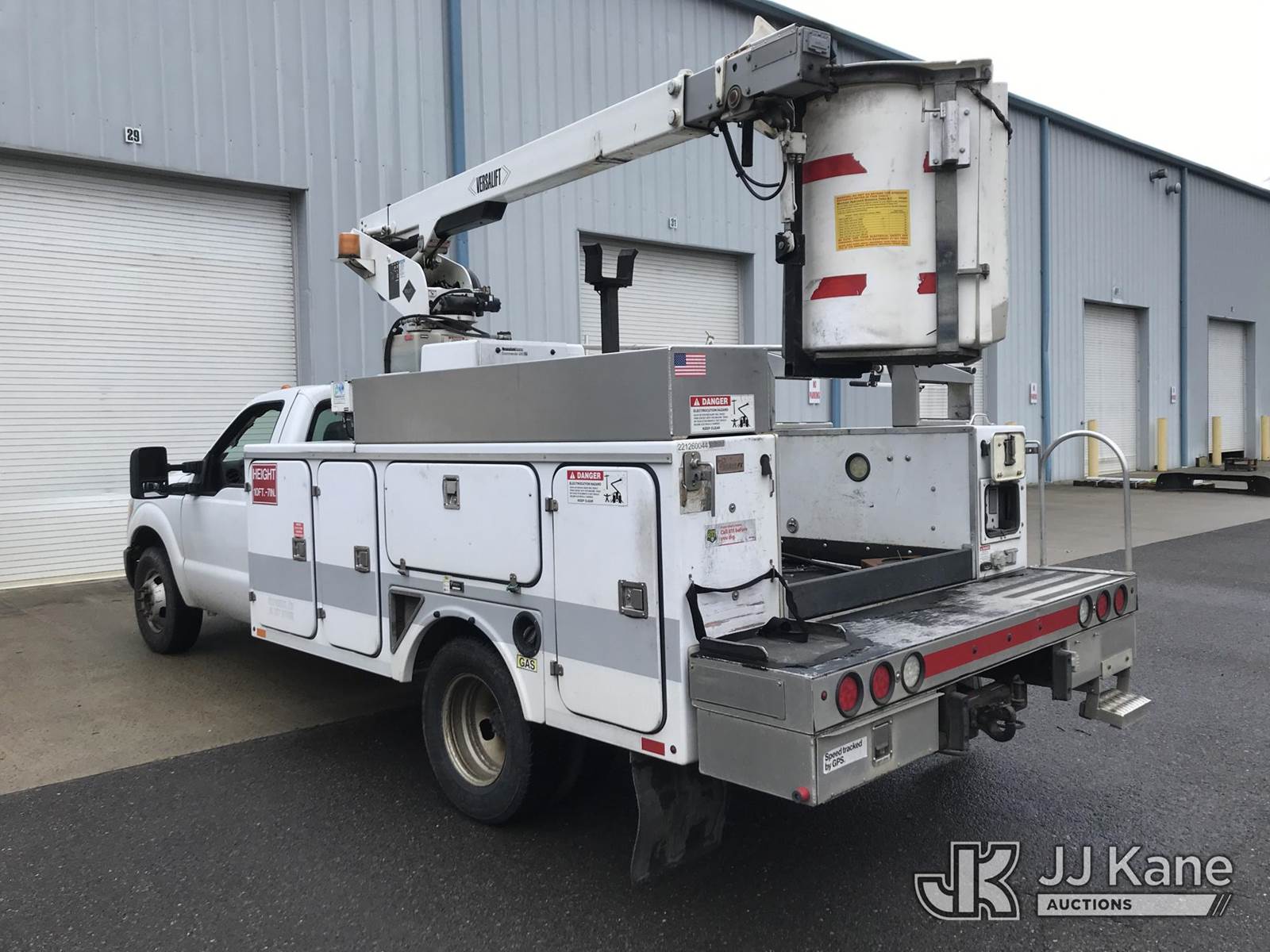 Versalift TEL29NE03, 34 ft, Telescopic Non-Insulated Bucket Truck s/n AG110113, with single-man bucket, mounted behind cab on 2012 Ford F-350 SD Service Truck, 6.2L V8 OHV 16V RWD, Gas, 6-Speed Automatic, A/C, with fiberglass body, (278,813 miles) (Runs, Moves & Upper Operates, Shifts Hard) (Reads 1,491 hours) This is a Titled Item NOTE: This unit is being sold AS IS/WHERE IS via Timed Auction and is located in Kodak, TN. Inspection & preview days for this unit are by appointment only; please contact us at contact@jjkane.com or 84-Go-JJKane for more details. (Missing manuals, See Auction Company for Manufacturers Information to obtain manuals) (Buyer is responsible for removal. Assistance by consignor or JJ Kane Auctions is not assured.)