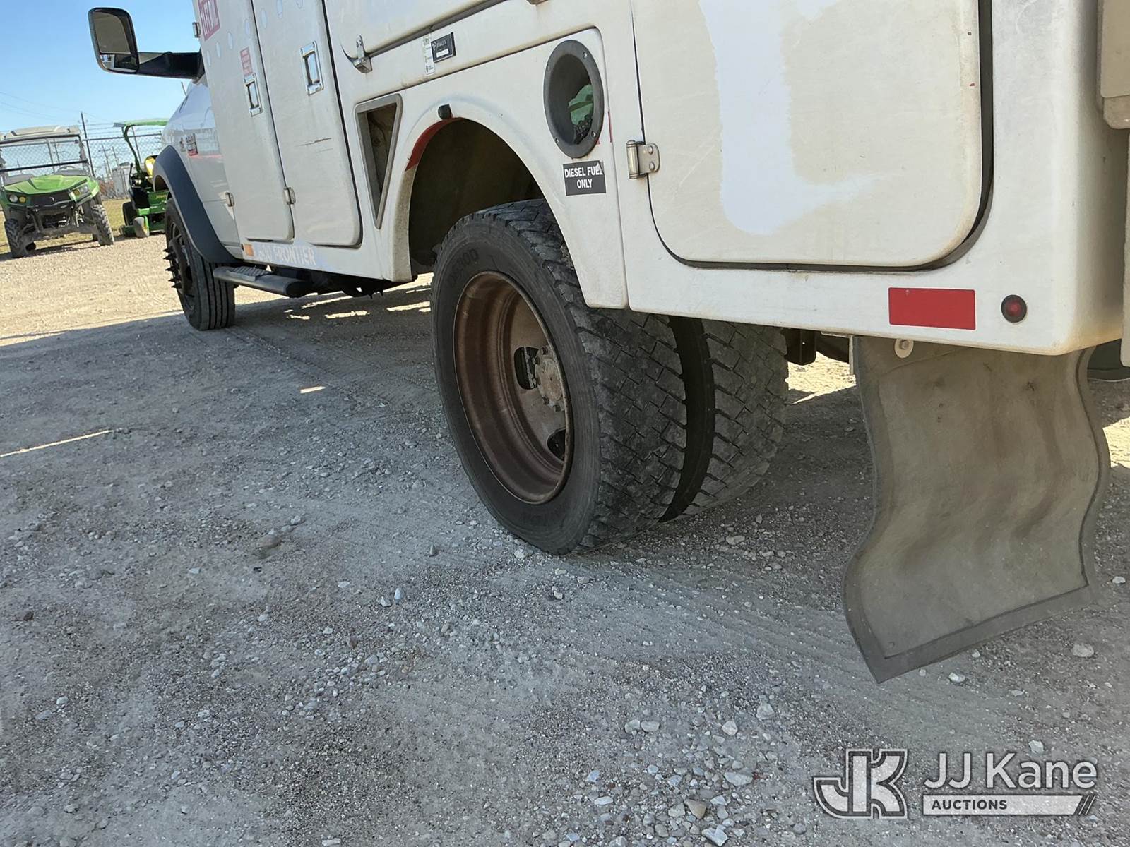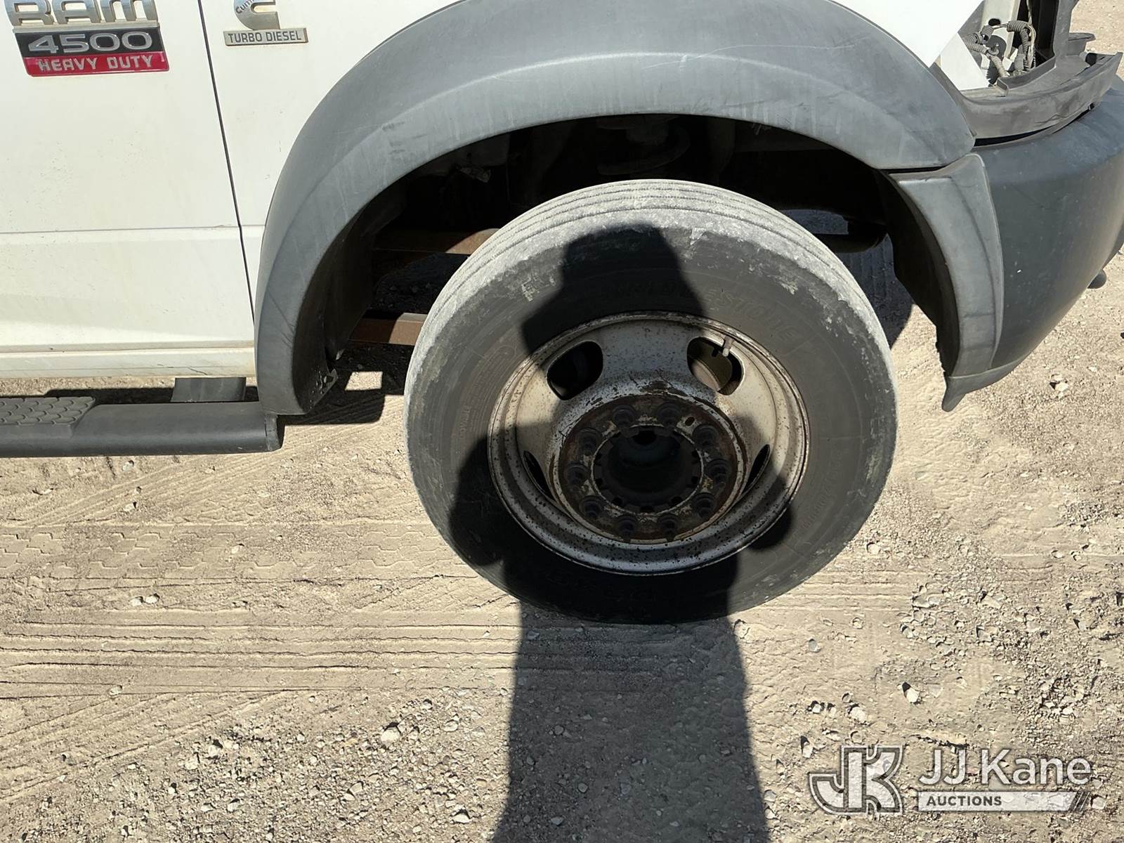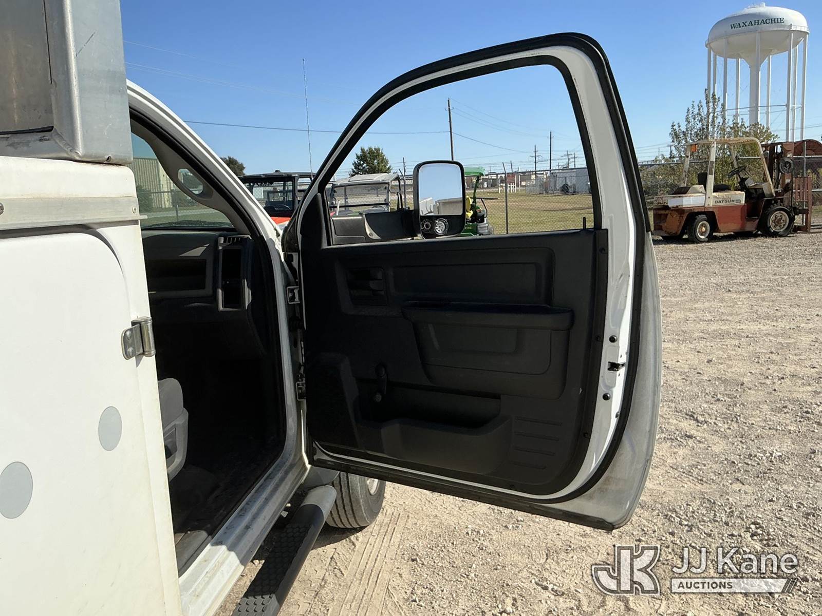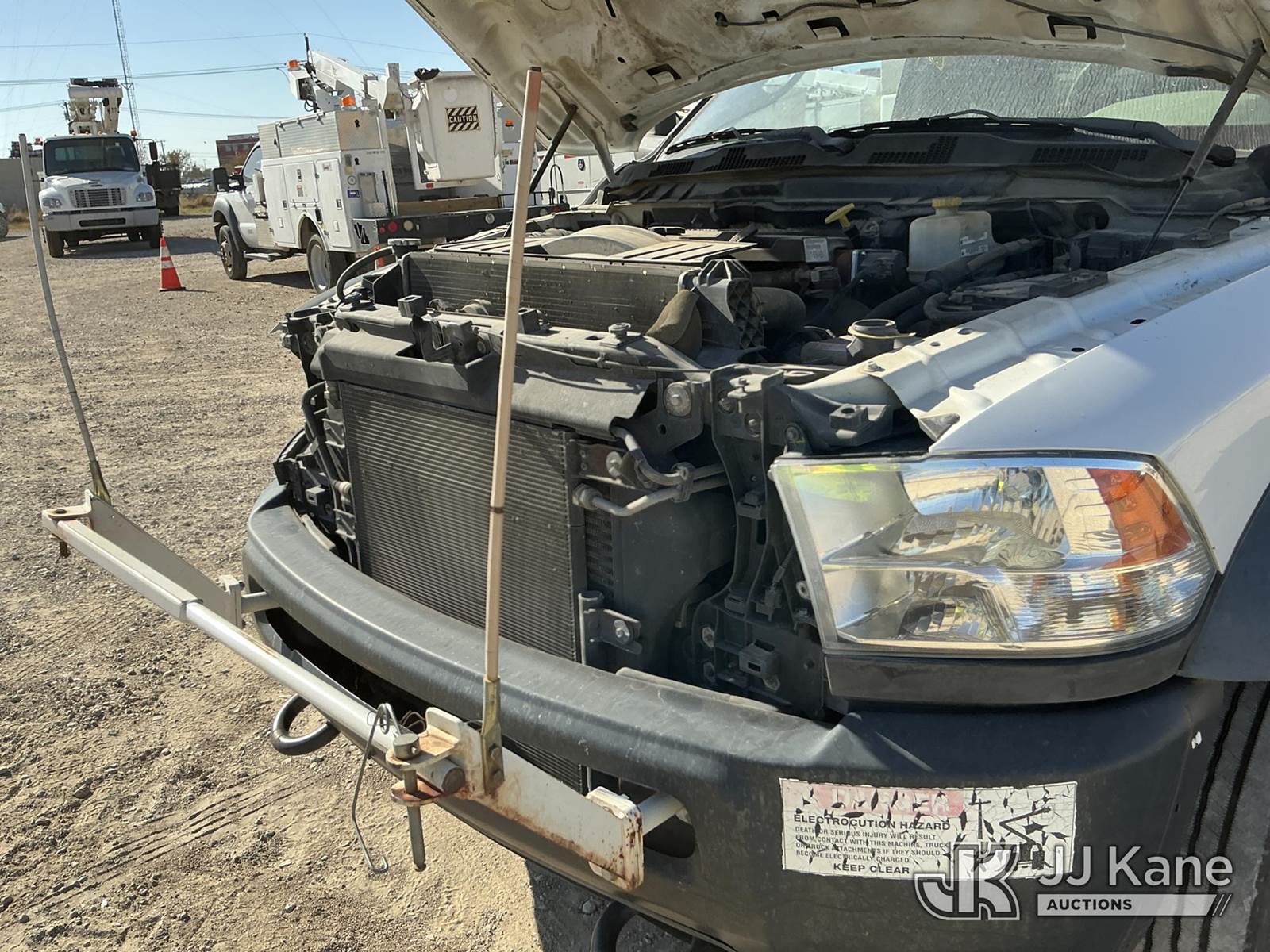 Versalift unknown, Telescopic Non-Insulated Bucket Truck s/n AG120114, with single man bucket, mounted behind cab on 2012 Dodge Ram 4500 Service Truck, 6.7L Auto, diesel, A/C, (178,683 miles) (Runs, Moves & Upper Operates) (Jump To Start, Check Engine Light On, Front Passenger Headlight & Front Radiator Cover Missing, Versalift Manufacturer Data Plate Missing) This is a Titled Item NOTE: This unit is being sold AS IS/WHERE IS via Timed Auction and is located in Waxahachie, TX. For pre-sale questions or to schedule an inspection, please call auction yard at (469) 550-4938. (Missing manuals, See Auction Company for Manufacturers Information to obtain manuals) (Buyer is responsible for removal. Assistance by consignor or JJ Kane Auctioneers is not assured.)