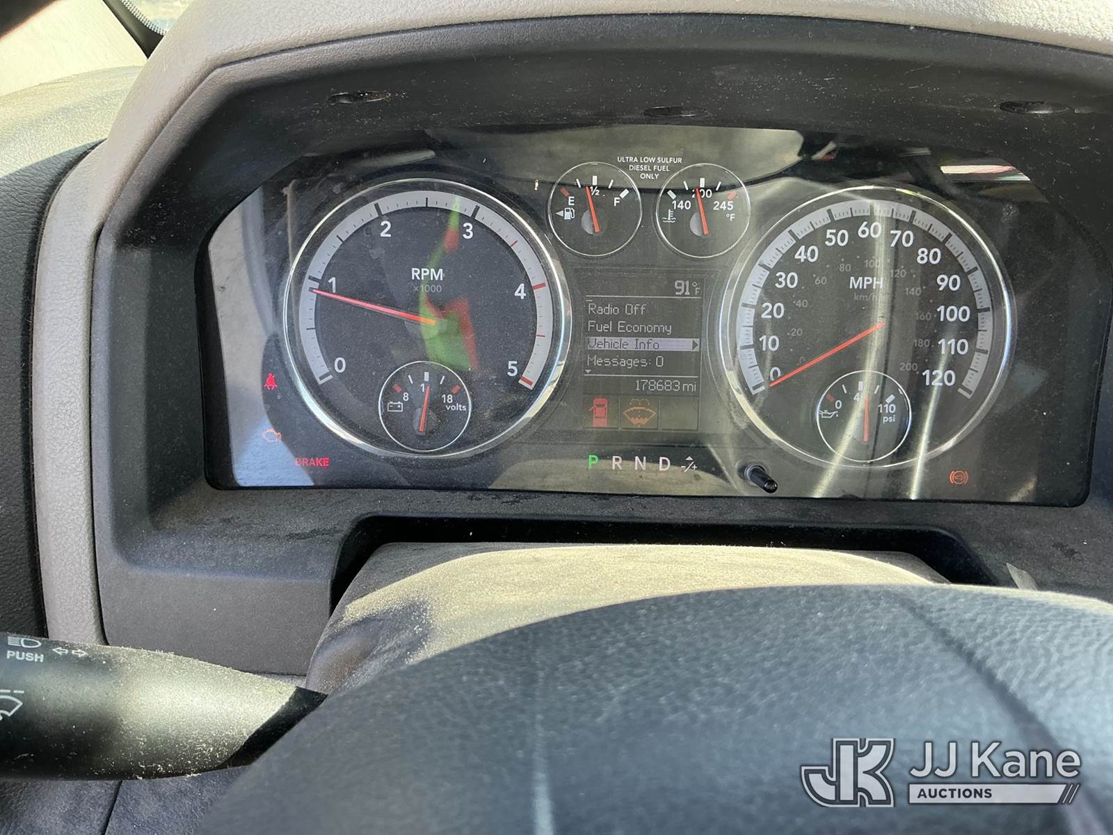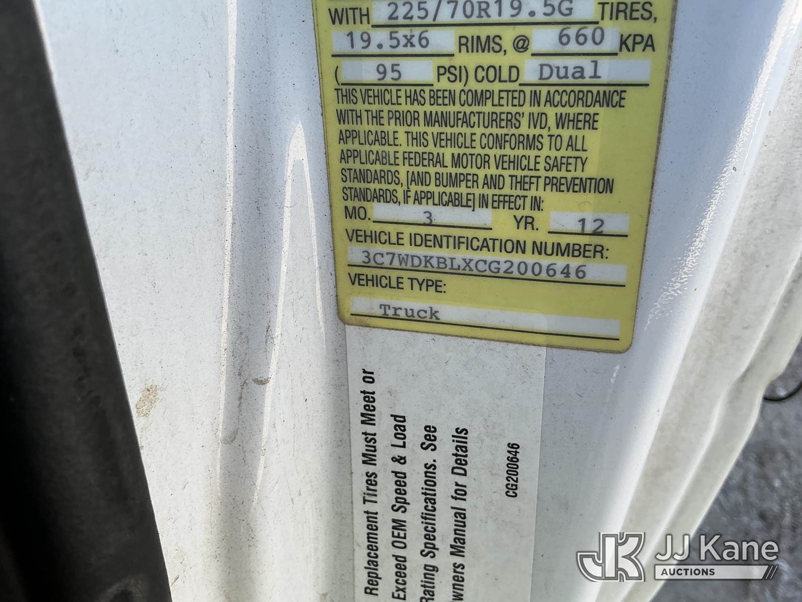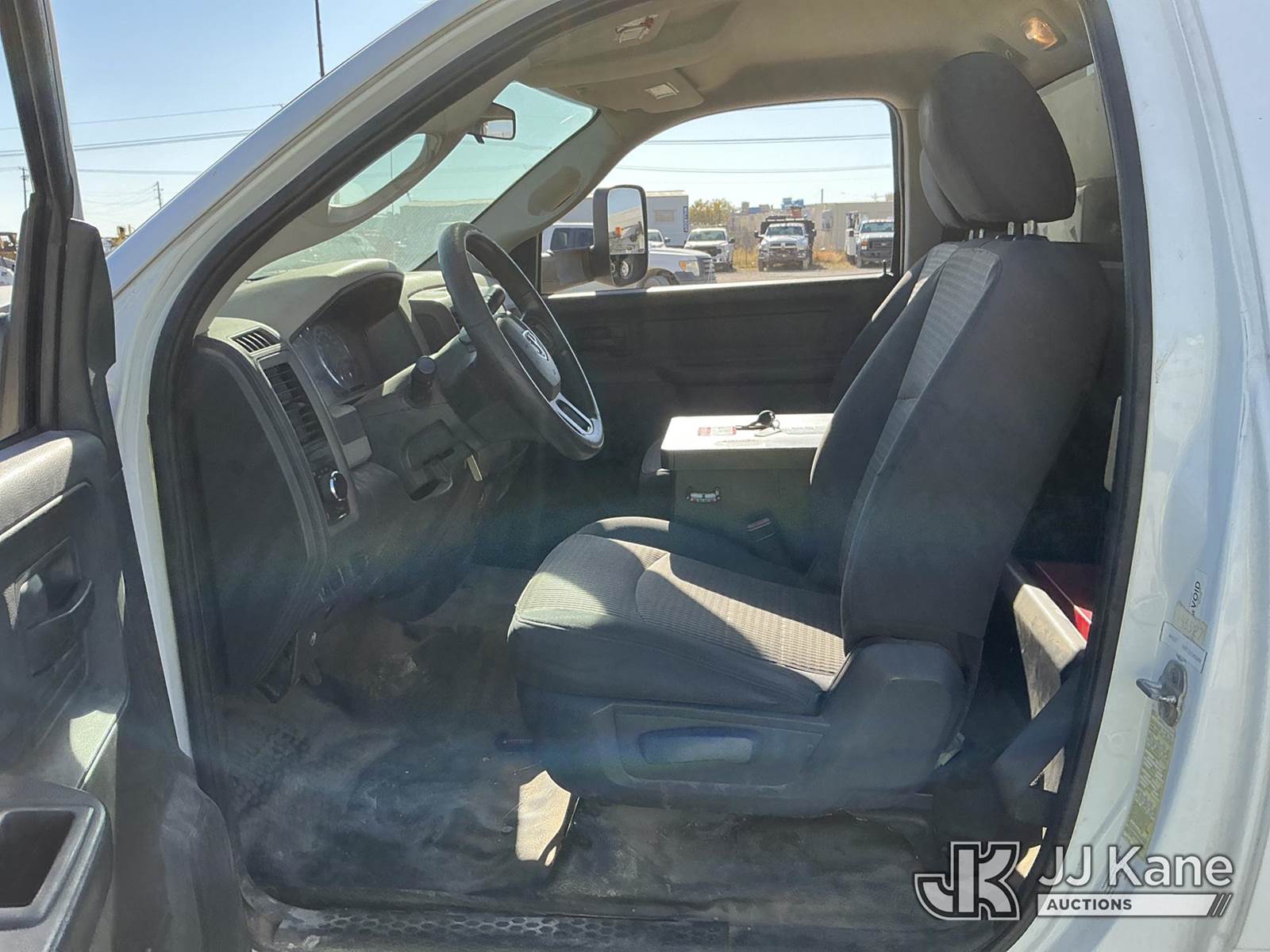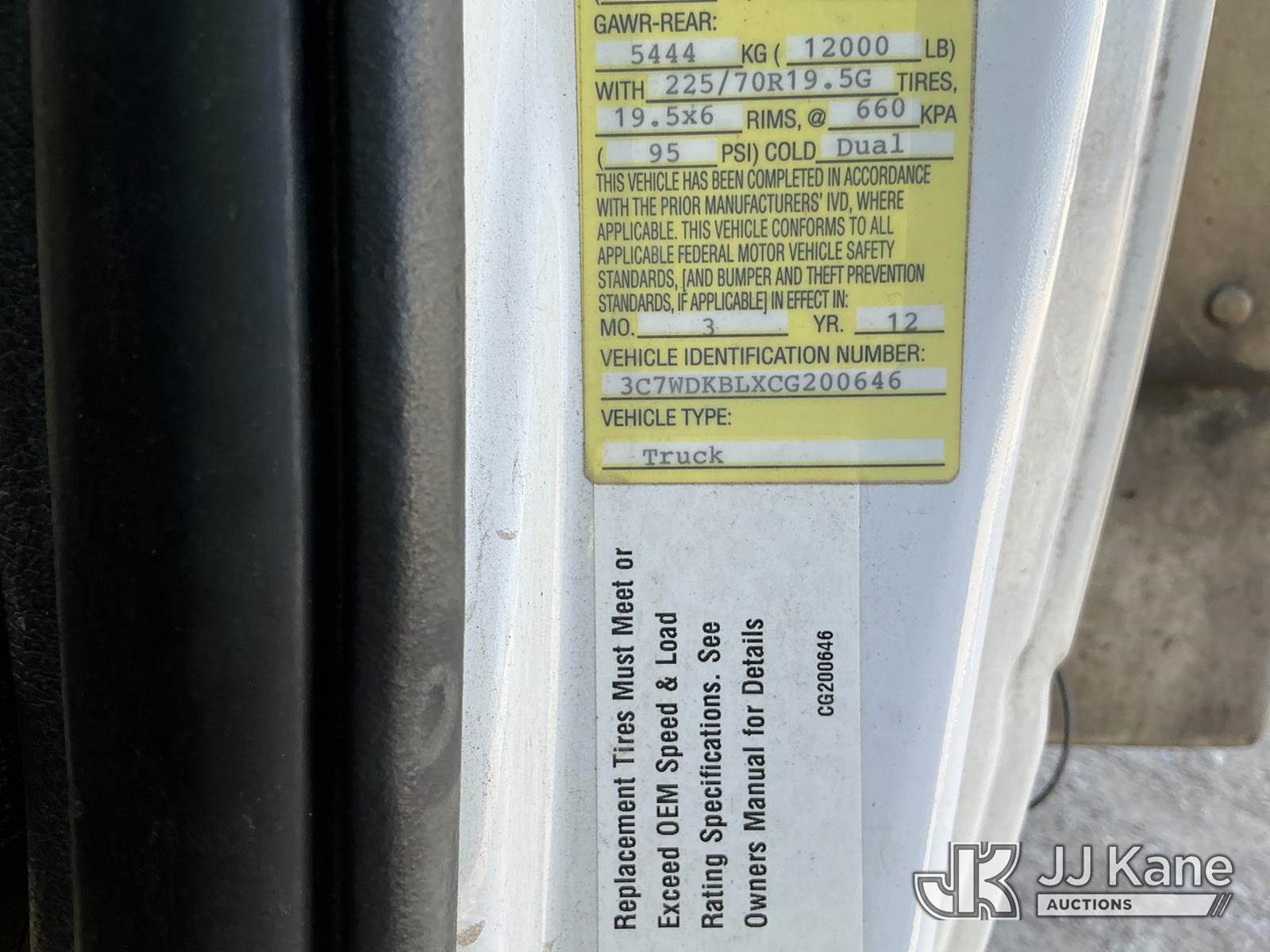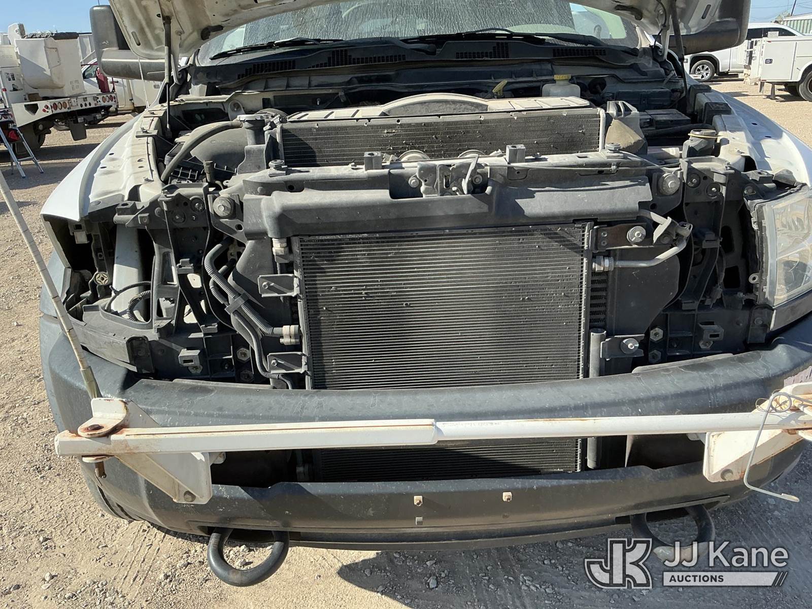 Versalift unknown, Telescopic Non-Insulated Bucket Truck s/n AG120114, with single man bucket, mounted behind cab on 2012 Dodge Ram 4500 Service Truck, 6.7L Auto, diesel, A/C, (178,683 miles) (Runs, Moves & Upper Operates) (Jump To Start, Check Engine Light On, Front Passenger Headlight & Front Radiator Cover Missing, Versalift Manufacturer Data Plate Missing) This is a Titled Item NOTE: This unit is being sold AS IS/WHERE IS via Timed Auction and is located in Waxahachie, TX. For pre-sale questions or to schedule an inspection, please call auction yard at (469) 550-4938. (Missing manuals, See Auction Company for Manufacturers Information to obtain manuals) (Buyer is responsible for removal. Assistance by consignor or JJ Kane Auctioneers is not assured.)