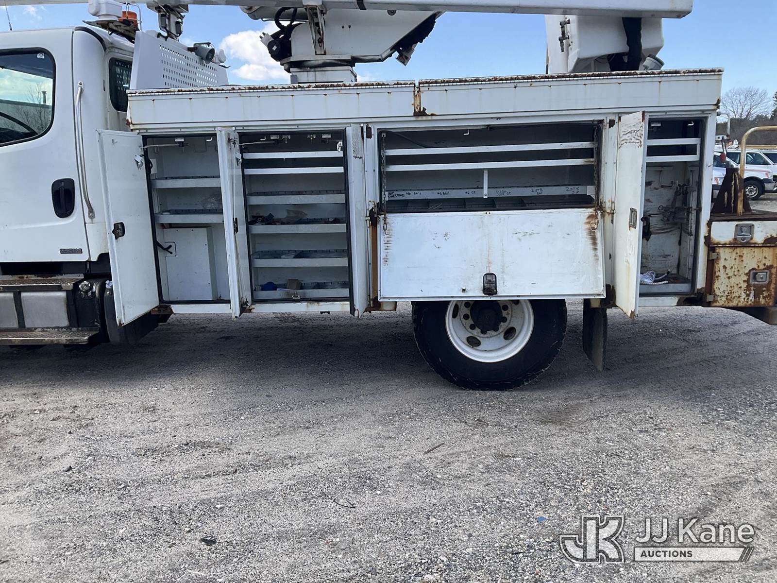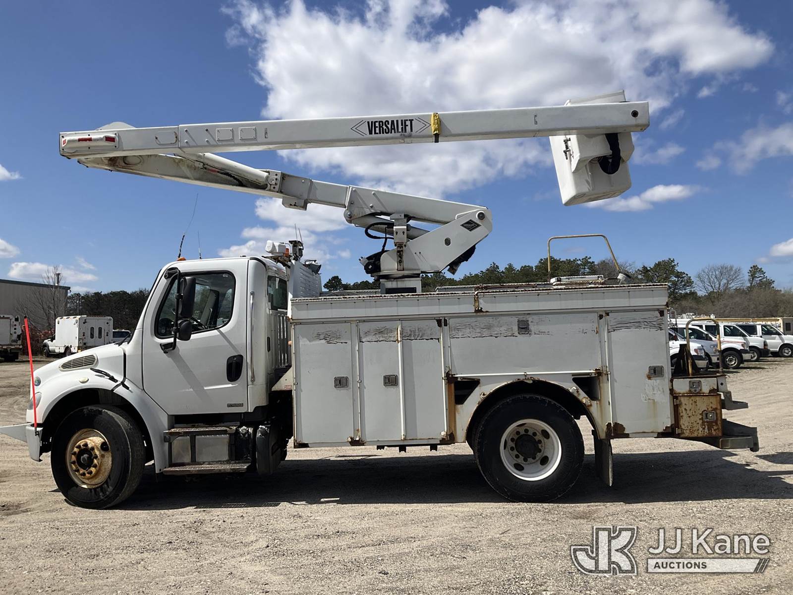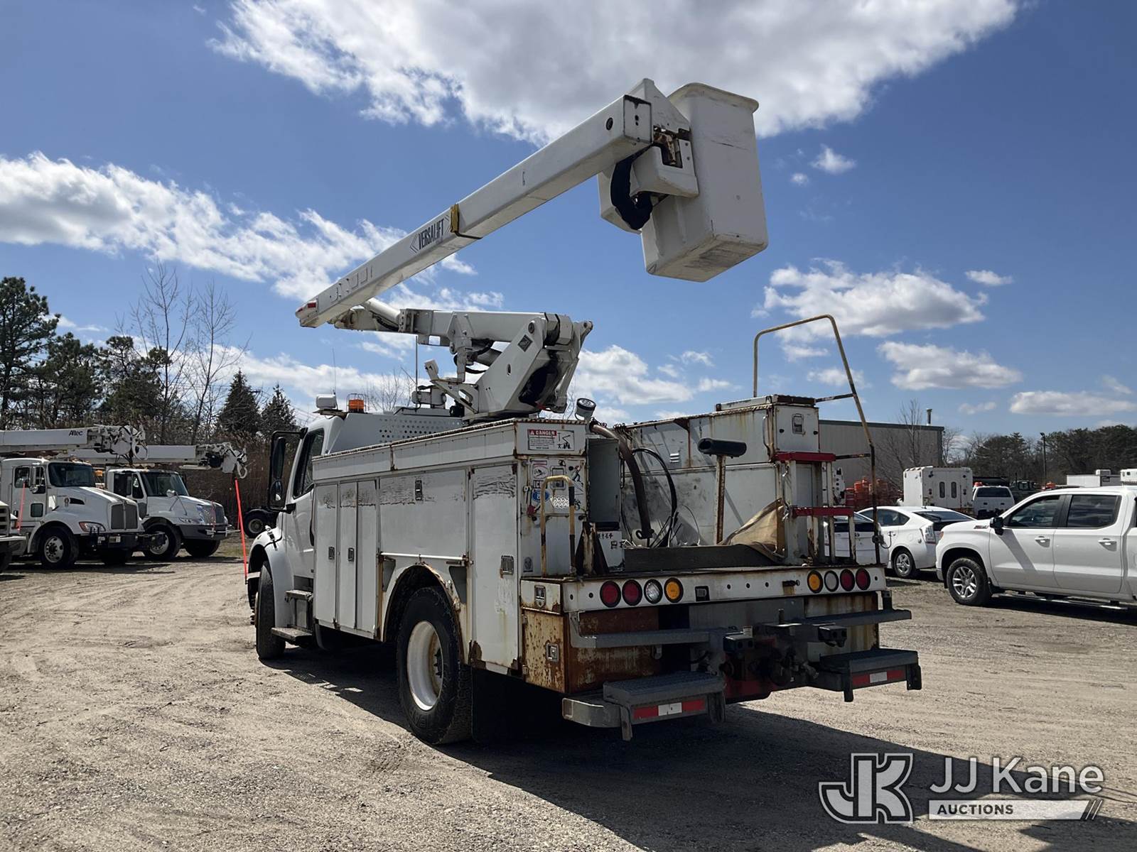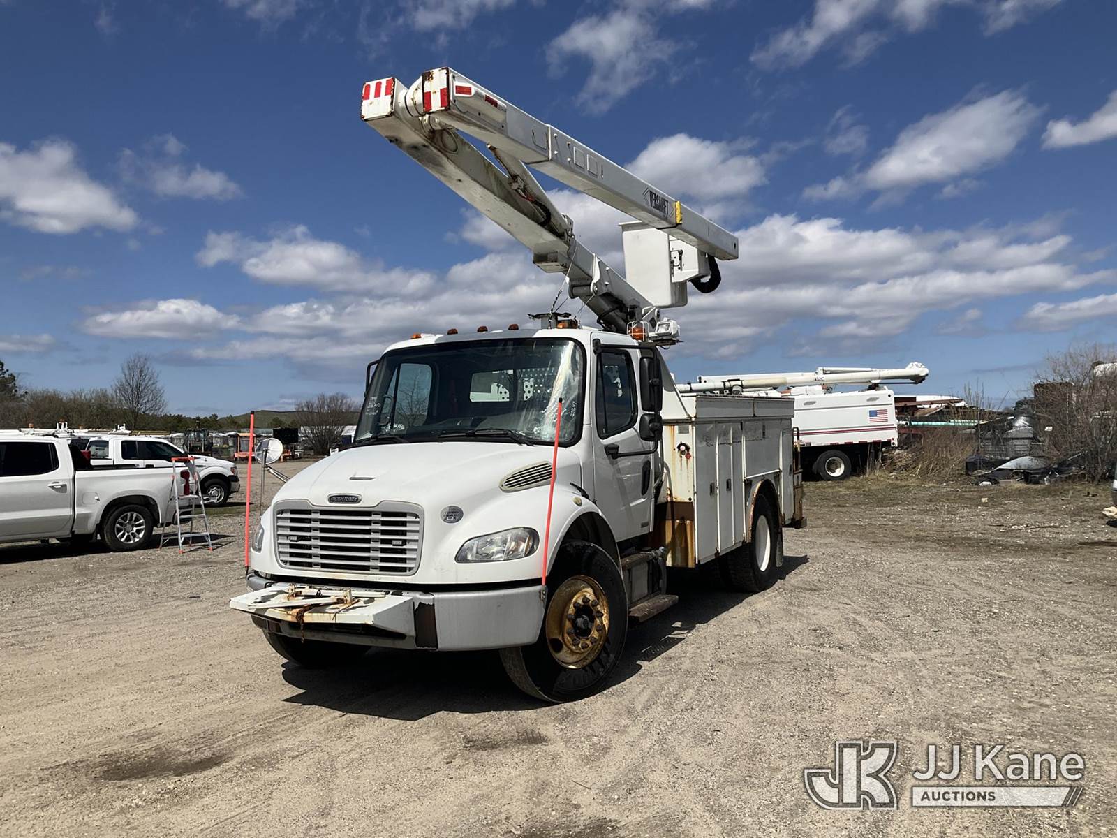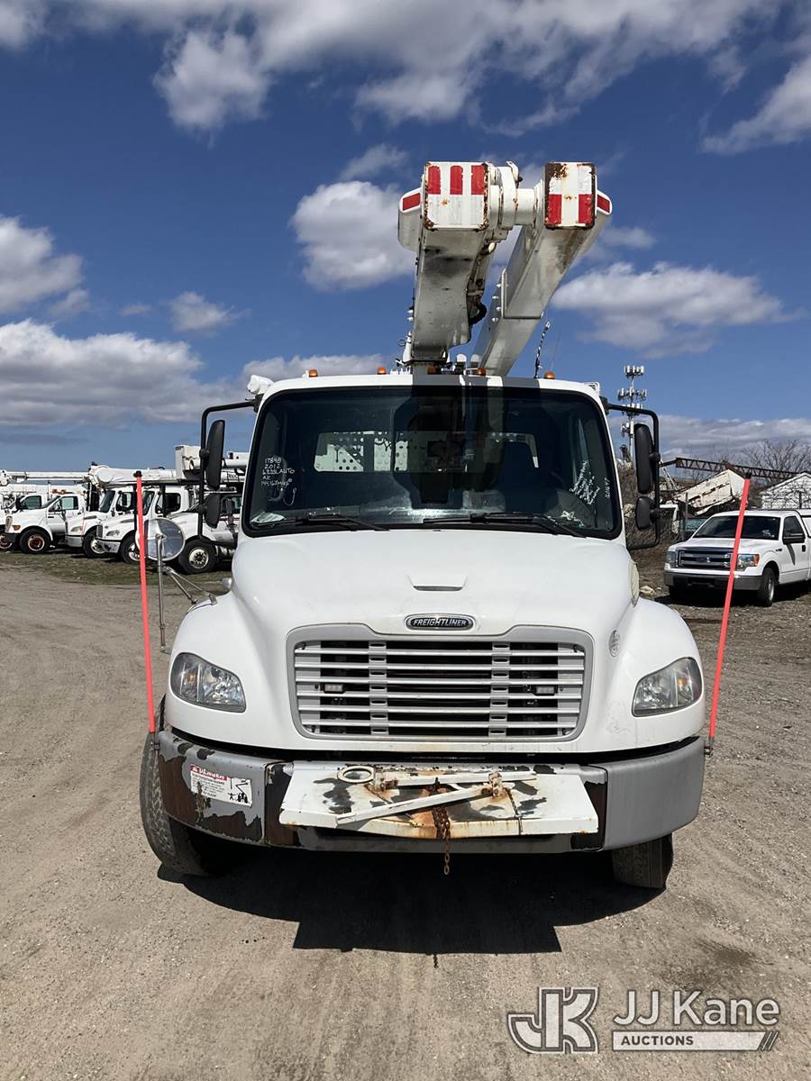 Versalift V043I-01, 47 ft, Over-Center Bucket Truck s/n MF120011, with Single Man Bucket , center mounted on 2012 Freightliner M2 106 Utility Truck, 6.7L diesel, Auto, A/C, (144,163 miles) (Runs, Moves & Upper Operates) (Trans Issues, Check Trans Light On, Must Tow, Buyer Must Load) (Removal is by Appointment Only, Buyer MUST make a appointment prior to picking up, Buyer/Transporter Must have PAID IN FULL RELEASE. No onsite assistance available, Please Come prepared.) This is a Titled Item NOTE: This unit is being sold AS IS/WHERE IS via Timed Auction and is located in Bellport, NY. Inspection & preview days for this unit are by appointment only; please contact us at contact@jjkane.com or 84-Go-JJKane for more details. (Manuals provided in cab) (Buyer is responsible for removal. Assistance by consignor or JJ Kane Auctions is not assured.)
