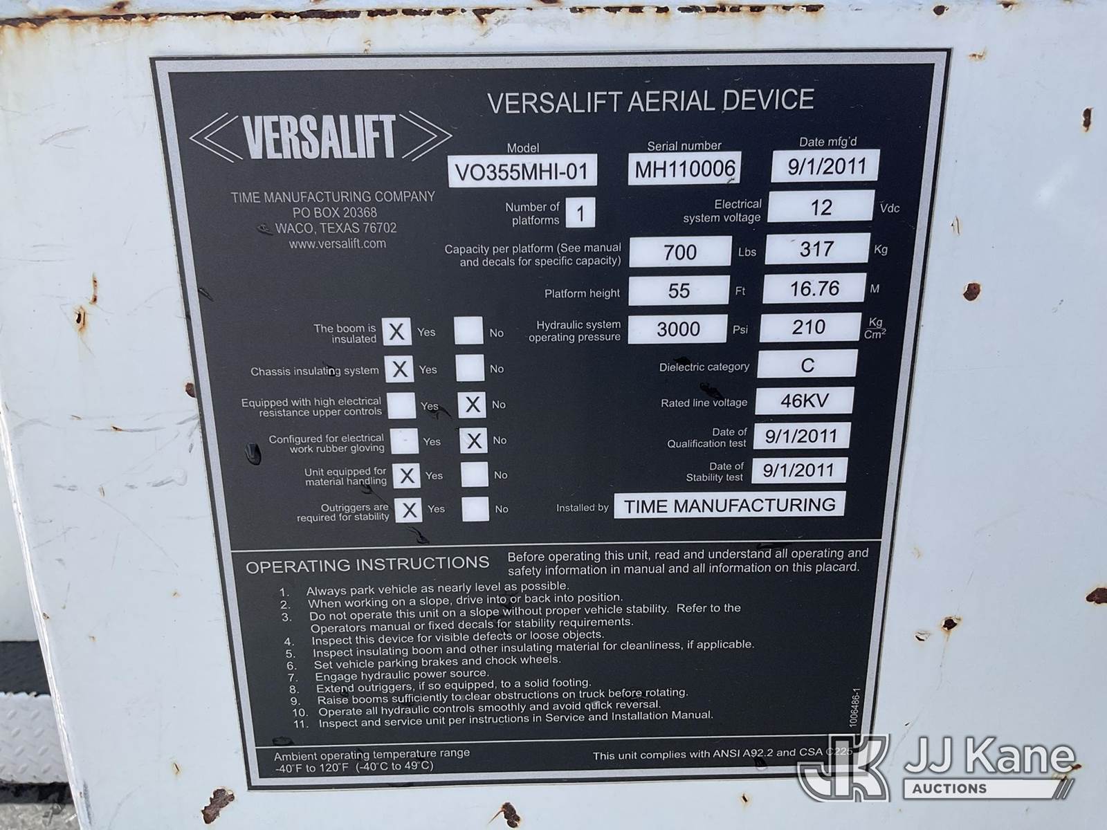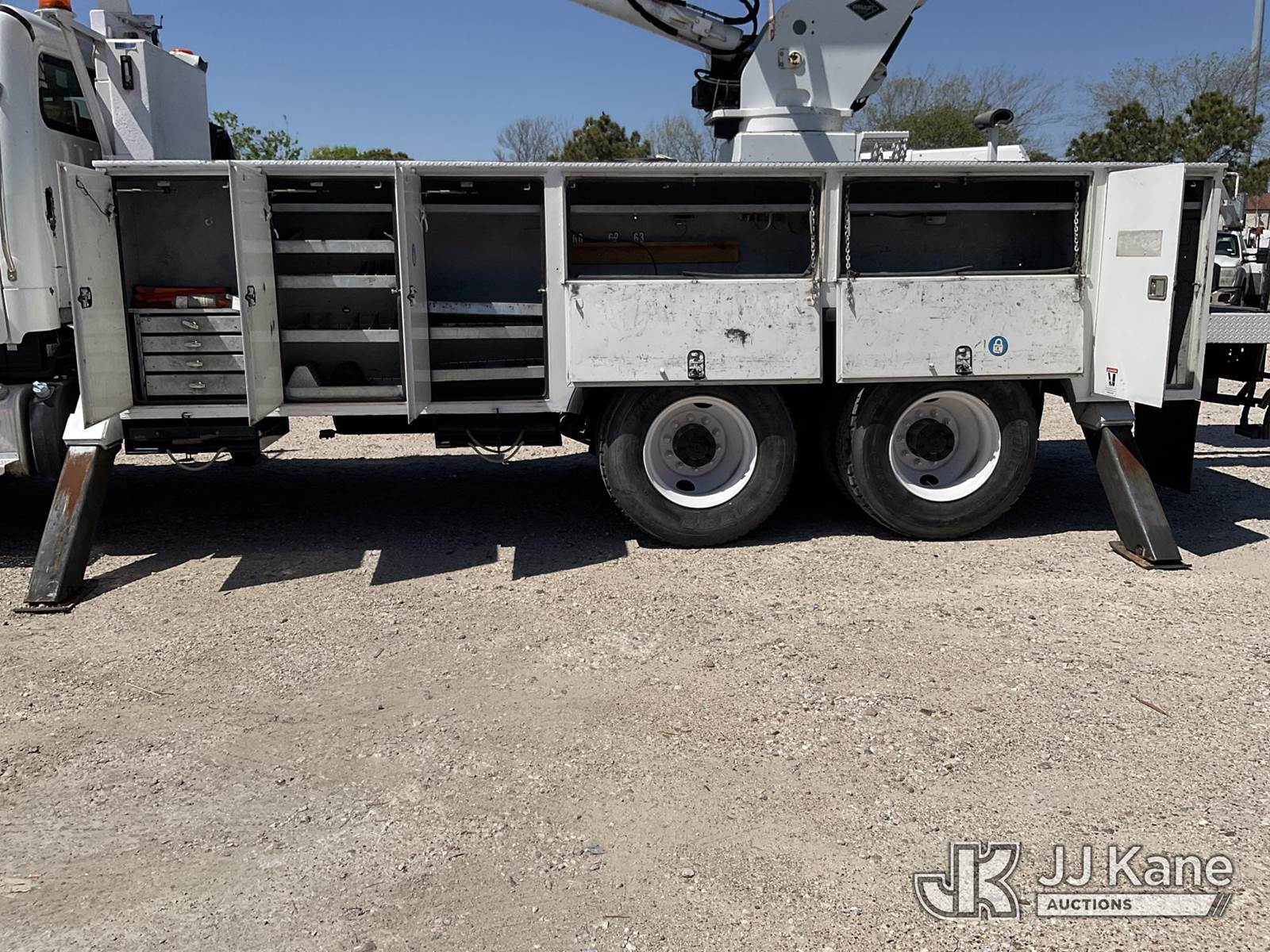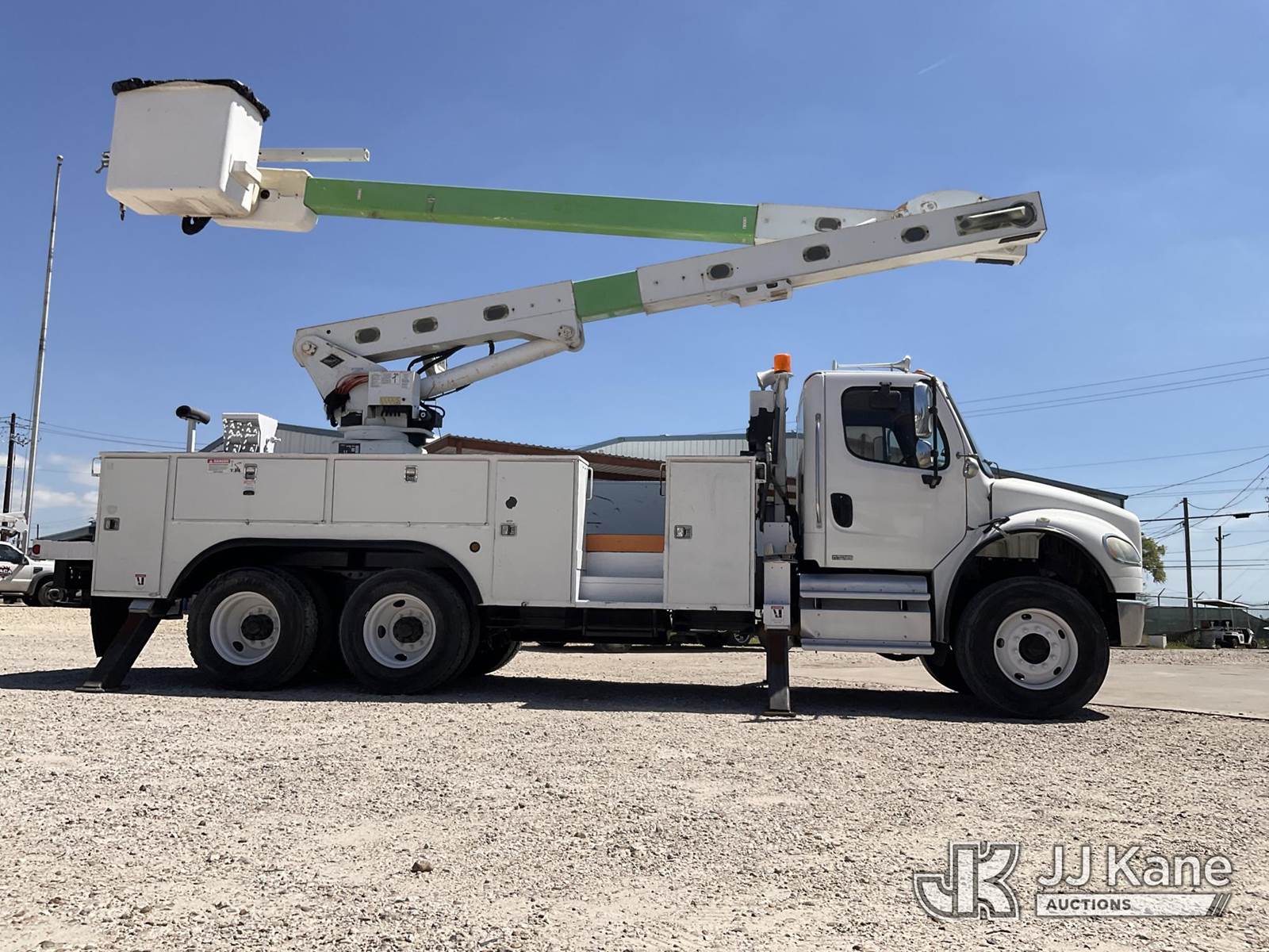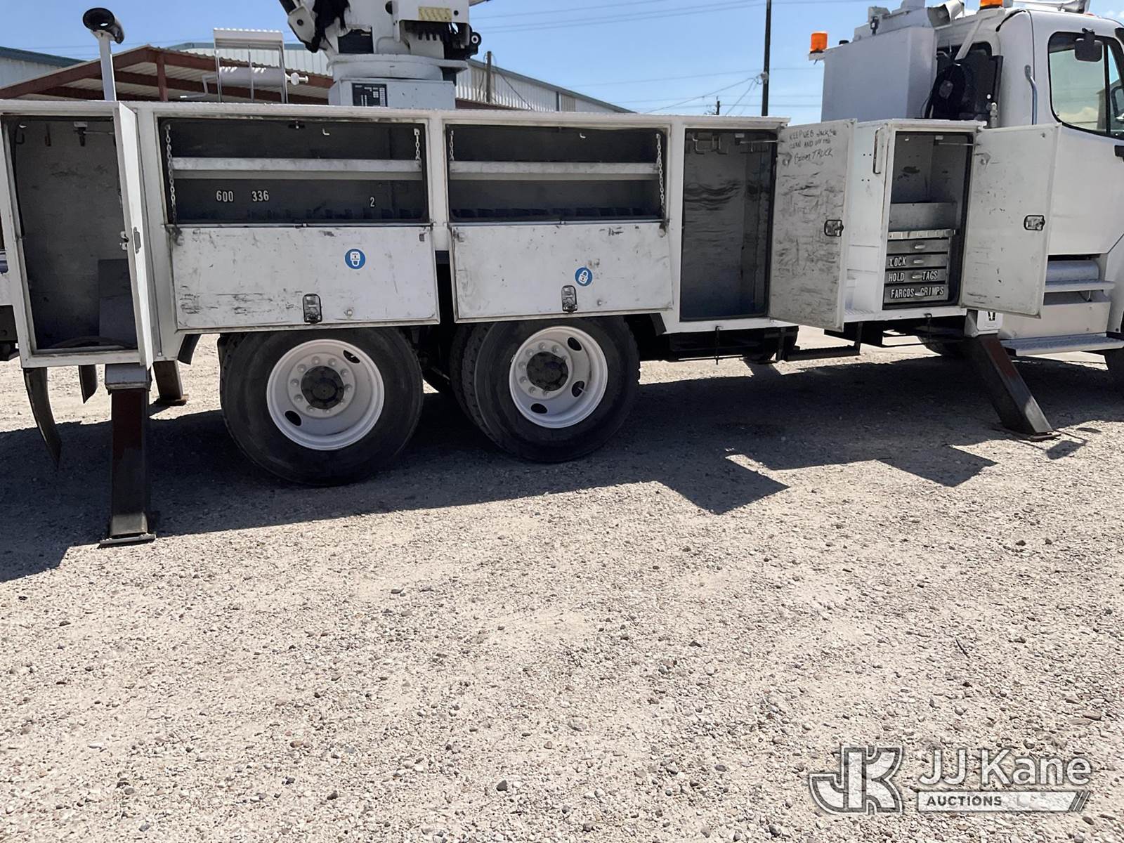 Versalift VO355MHI, 60 ft, Over-Center Material Handling Bucket s/n MH110006, with Two-Man Bucket, 4 Hydraulic Outriggers, rear mounted on 2012 Freightliner M2 106 T/A Utility Truck, 8.3L L6 DIESEL 6X4, Auto, A/C, (204,663 miles) (Runs, Moves & Upper Operates) This is a Titled Item NOTE: This unit is being sold AS IS/WHERE IS via Timed Auction and is located in Channelview, TX. For more information & removal arrangements please contact Charlie de Kanter @ 281-910-7147 (Missing manuals, See Auction Company for Manufacturers Information to obtain manuals) (Buyer is responsible for removal. Assistance by consignor or JJ Kane Auctions is not assured.)