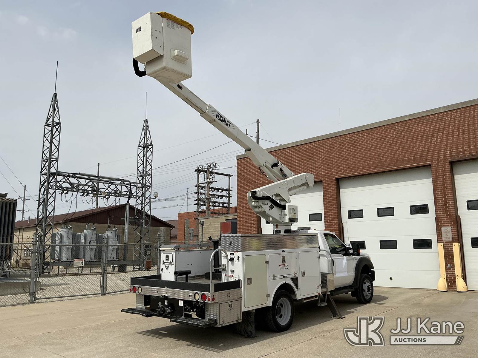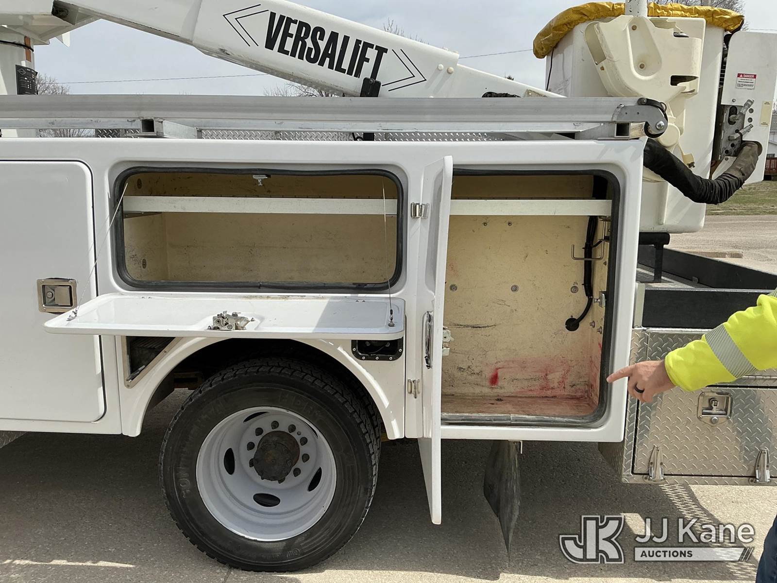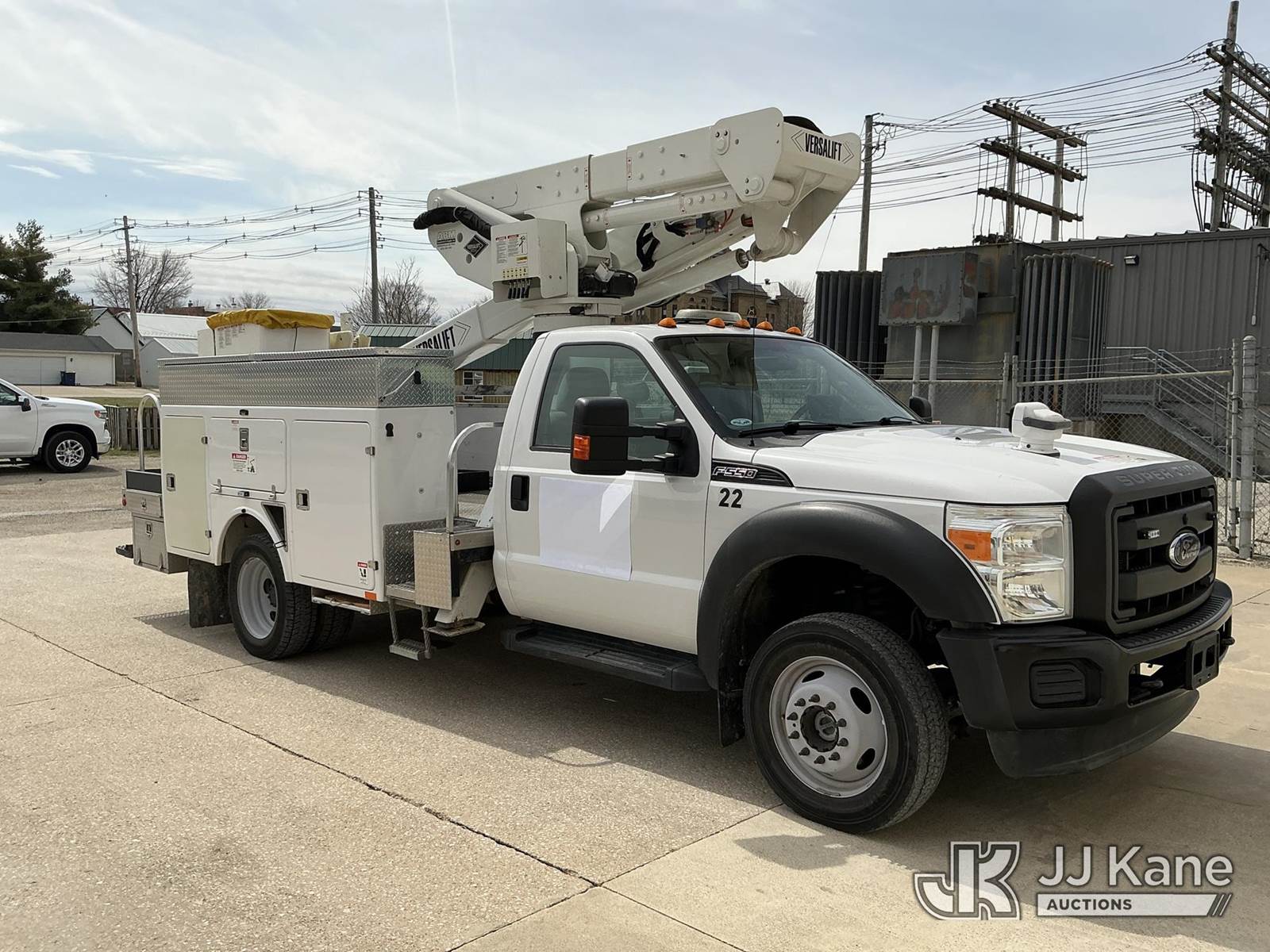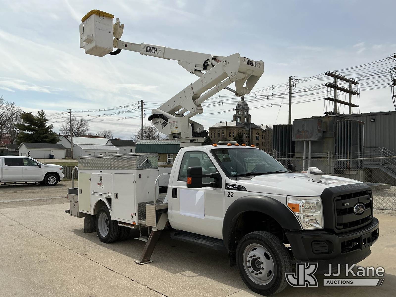 Versalift VST-40I, 45 ft, Articulating & Telescopic Bucket Truck s/n KW120108, with Single-Man Bucket, mounted behind cab on 2012 Ford F-550 Service Truck, 10-cyl gas, 4WD, Auto, A/C, (31,196 miles) Municipal Owned & Maintained, Garage Kept (Runs, Moves & Upper Operates) (Reads 8,290 hours) This is a Titled Item NOTE: This unit is being sold AS IS/WHERE IS via Timed Auction and is located in Vinton, IA. For more information and removal arrangements please contact Austin Scott @ 816-205-2291. Load out by appointment only, Buyer/Hauler must present copy of paid invoice upon arrival. Purchaser acknowledges ALL lots must be removed within 5 business days of Auction. Items not removed in a timely matter will be transported by a third party to a storage facility. Buyer will be responsible for transport and storage fees. For load out and pick information, please reference the hauler sheet sent out after purchase. (Manuals provided in cab) (Buyer is responsible for removal. Assistance by consignor or JJ Kane Auctions is not assured.)