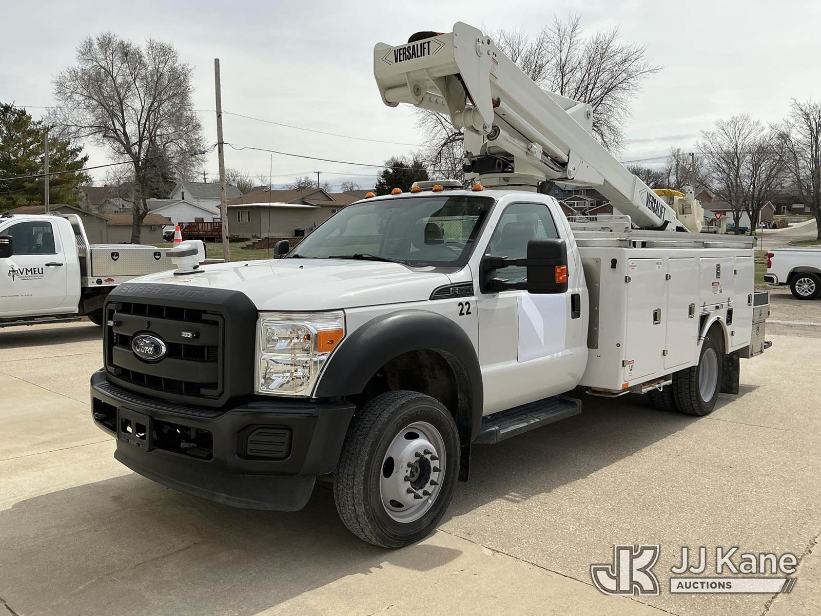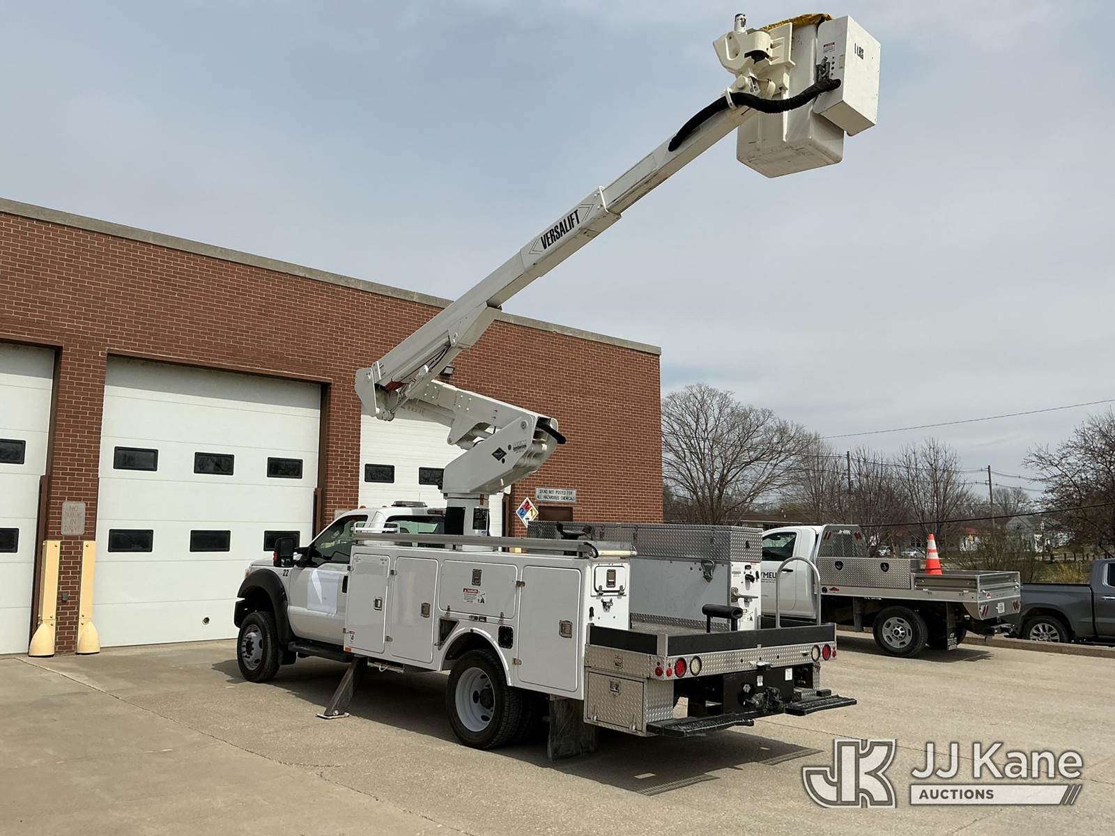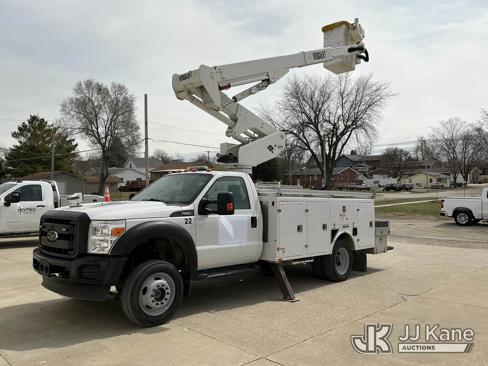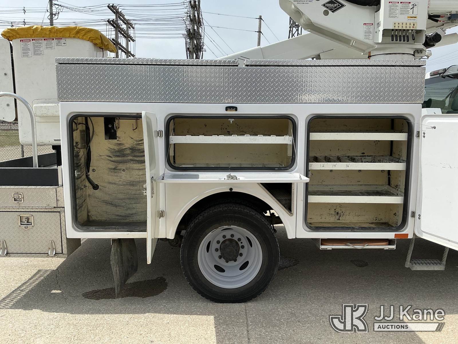 Versalift VST-40I, 45 ft, Articulating & Telescopic Bucket Truck s/n KW120108, with Single-Man Bucket, mounted behind cab on 2012 Ford F-550 Service Truck, 10-cyl gas, 4WD, Auto, A/C, (31,196 miles) Municipal Owned & Maintained, Garage Kept (Runs, Moves & Upper Operates) (Reads 8,290 hours) This is a Titled Item NOTE: This unit is being sold AS IS/WHERE IS via Timed Auction and is located in Vinton, IA. For more information and removal arrangements please contact Austin Scott @ 816-205-2291. Load out by appointment only, Buyer/Hauler must present copy of paid invoice upon arrival. Purchaser acknowledges ALL lots must be removed within 5 business days of Auction. Items not removed in a timely matter will be transported by a third party to a storage facility. Buyer will be responsible for transport and storage fees. For load out and pick information, please reference the hauler sheet sent out after purchase. (Manuals provided in cab) (Buyer is responsible for removal. Assistance by consignor or JJ Kane Auctions is not assured.)