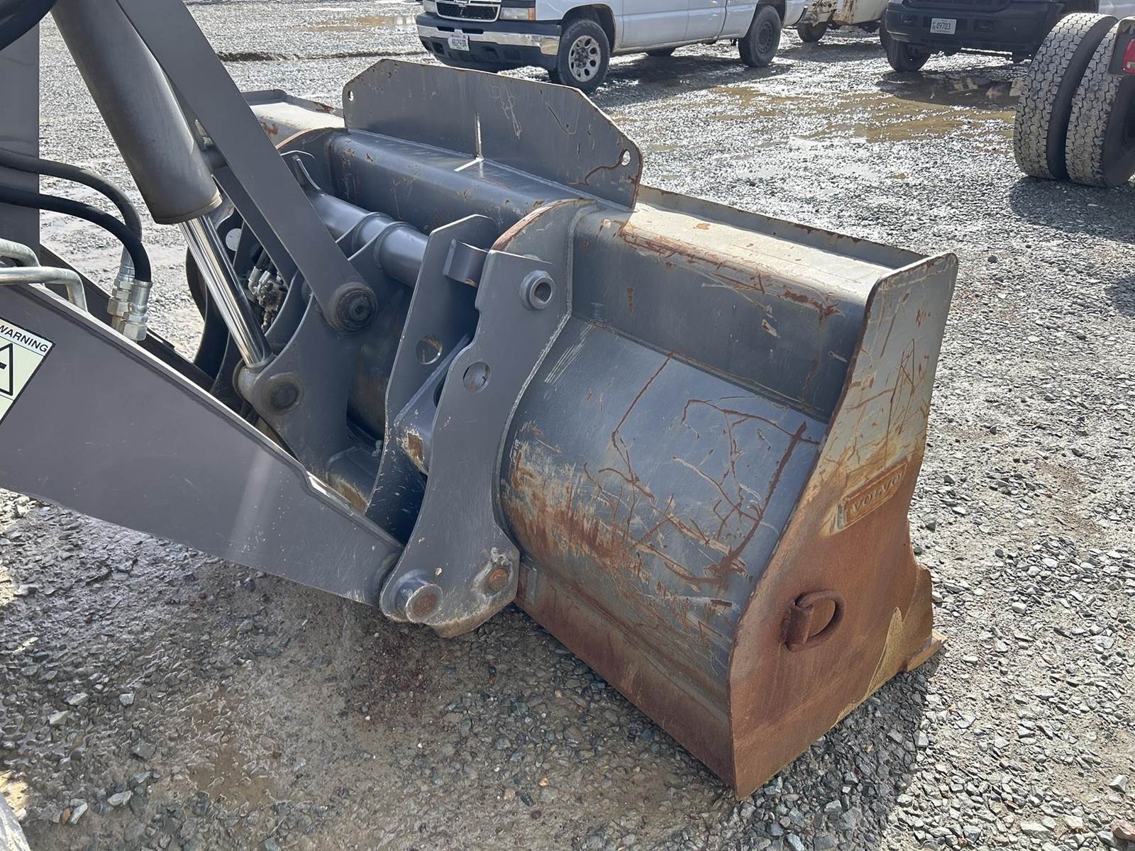 Volvo D3.8H Turbo Diesel Engine, 4 Speed Manual, 4x4, Differential Lock, Approx. 93" Bucket, Hydraulic Quick Coupler, Approx. 24" Backhoe Bucket, Extendable Backhoe Boom, Hydraulic Thumb Claw, Outriggers, EROPS, Heat, AC, Radio, Work Lights, Joystick Control, Backhoe Joystick Controls, 12.5/80-18 Front Tires, 19.5L-24 Rear Tires
