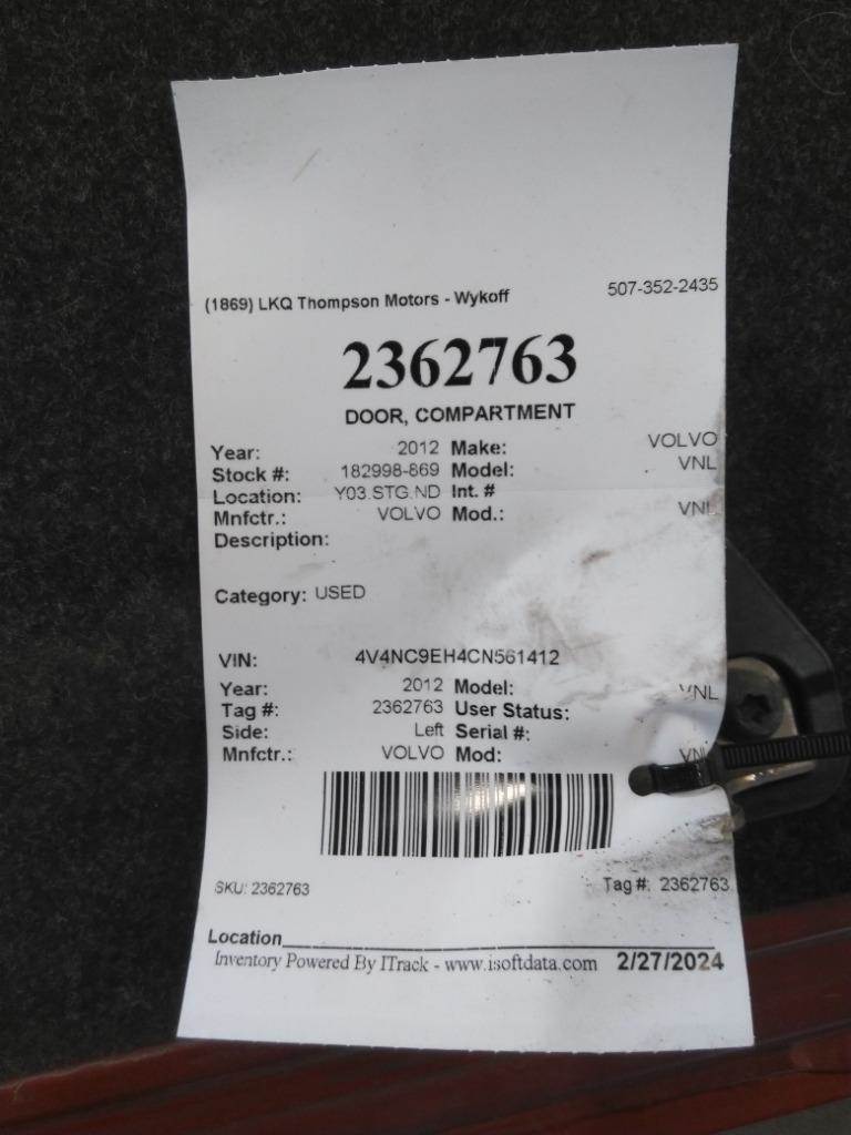 2012 Volvo VNL Right Sleeper Door