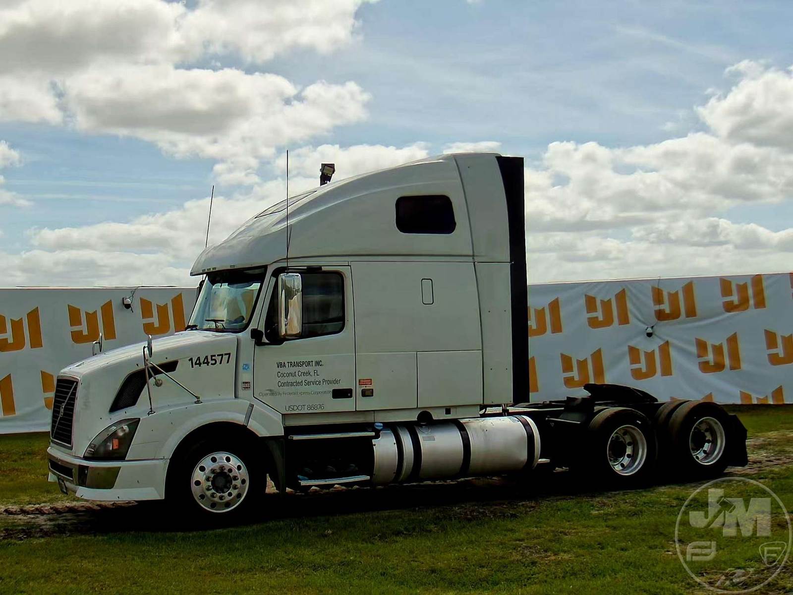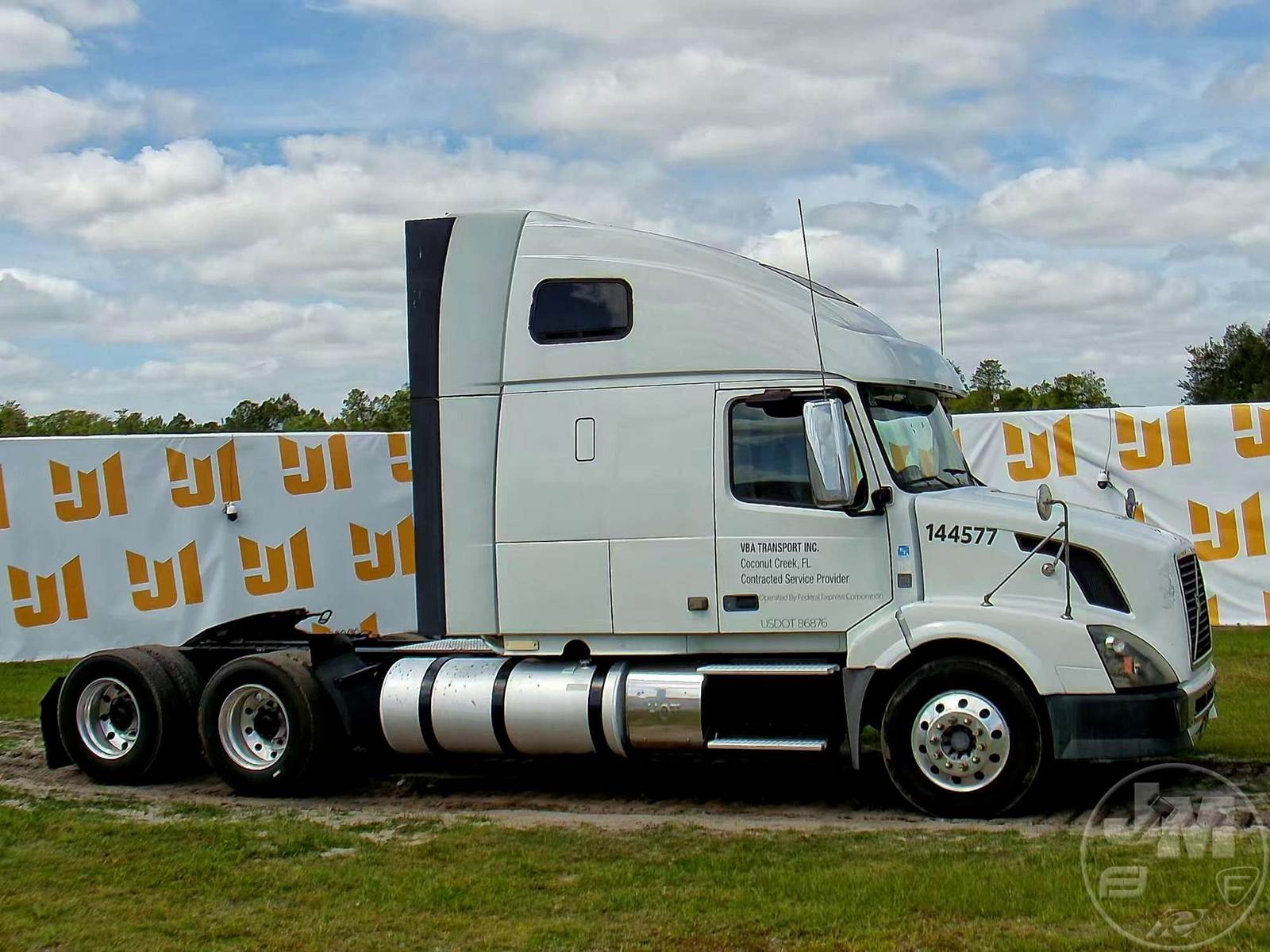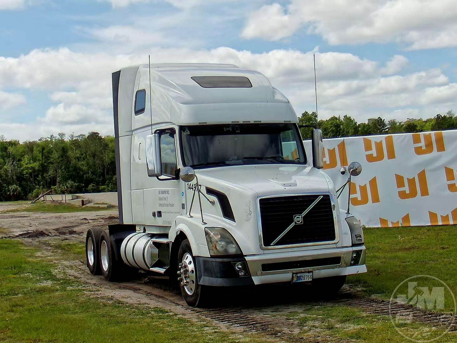 TANDEM AXLE TRUCK TRACTOR, VOLVO, D13, HP 435, EATON FULLER, 10 SPEED, AIR RIDE SUSPENSION, DRUM, 224 " WB, C/A: 102", 12K FRONTS, 40K REARS, A/C, DUAL AIR SEATS, CRUISE CONTROL, POWER WINDOWS, POWER DOOR LOCKS, POWER MIRRORS, ENGINE BRAKE, DIFF LOCK, SLEEPER SIZE 60", UPPER BUNK, ALUM DISC WHEELS, AIR SLIDE FIFTH WHEEL, 295/75R22.5 TIRES, HOUR METER READS: 11050, ODOMETER READS: 1338394