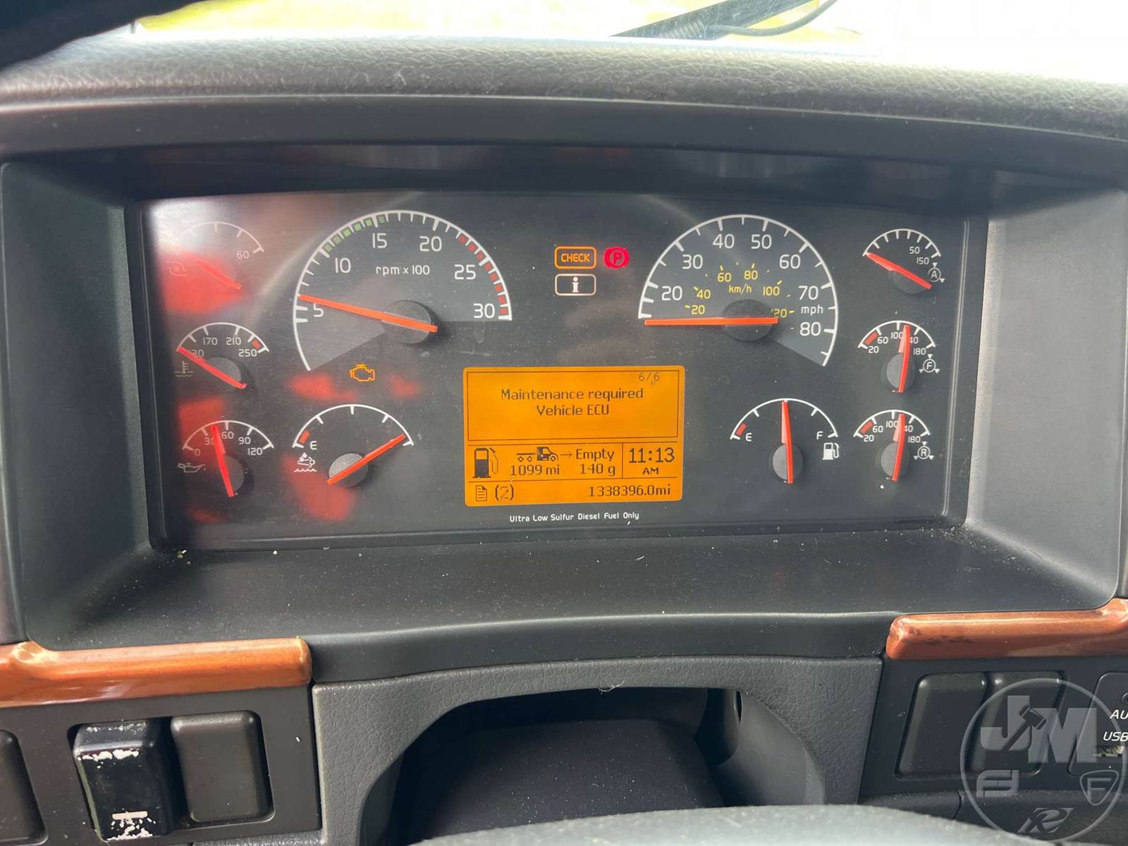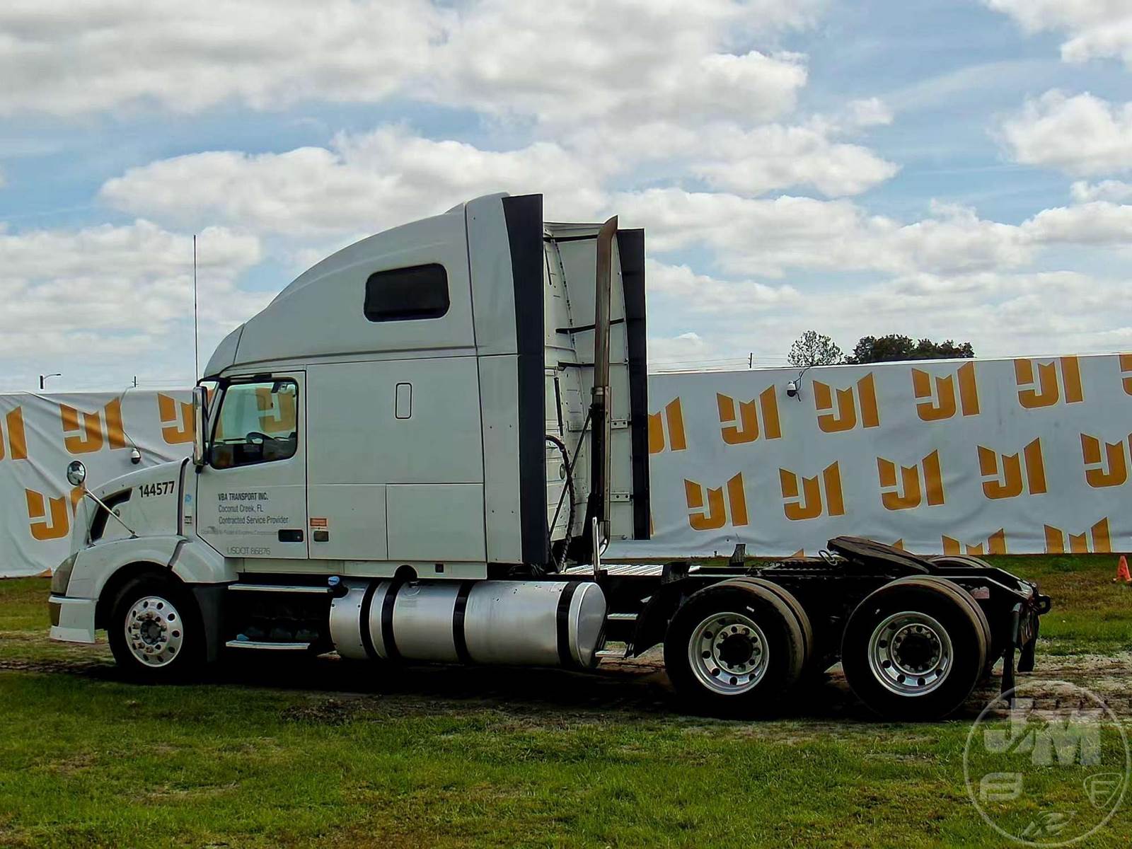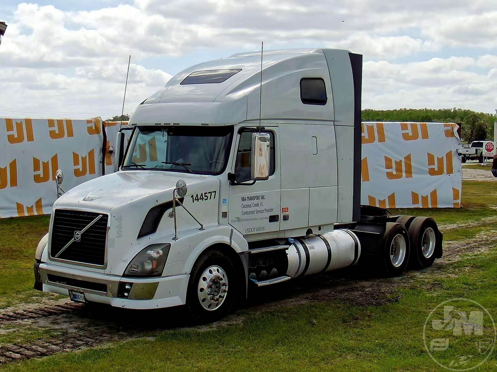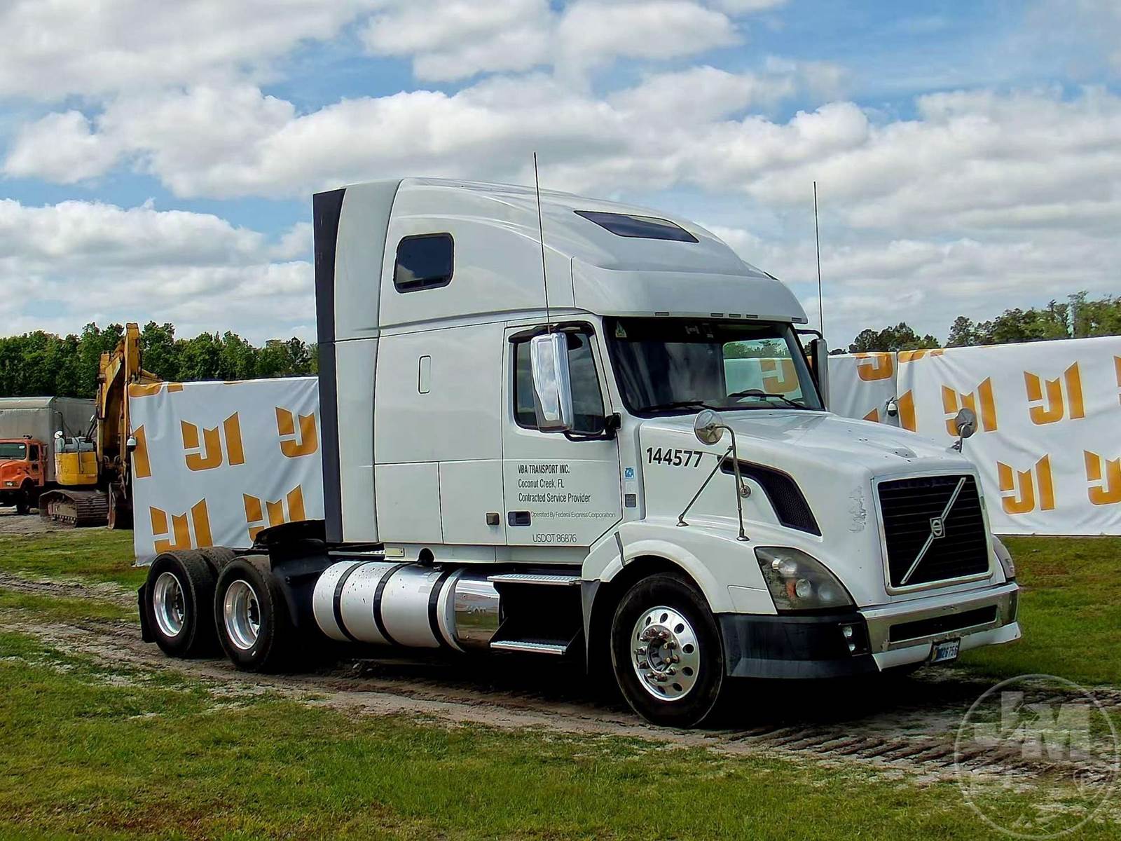 TANDEM AXLE TRUCK TRACTOR, VOLVO, D13, HP 435, EATON FULLER, 10 SPEED, AIR RIDE SUSPENSION, DRUM, 224 " WB, C/A: 102", 12K FRONTS, 40K REARS, A/C, DUAL AIR SEATS, CRUISE CONTROL, POWER WINDOWS, POWER DOOR LOCKS, POWER MIRRORS, ENGINE BRAKE, DIFF LOCK, SLEEPER SIZE 60", UPPER BUNK, ALUM DISC WHEELS, AIR SLIDE FIFTH WHEEL, 295/75R22.5 TIRES, HOUR METER READS: 11050, ODOMETER READS: 1338394