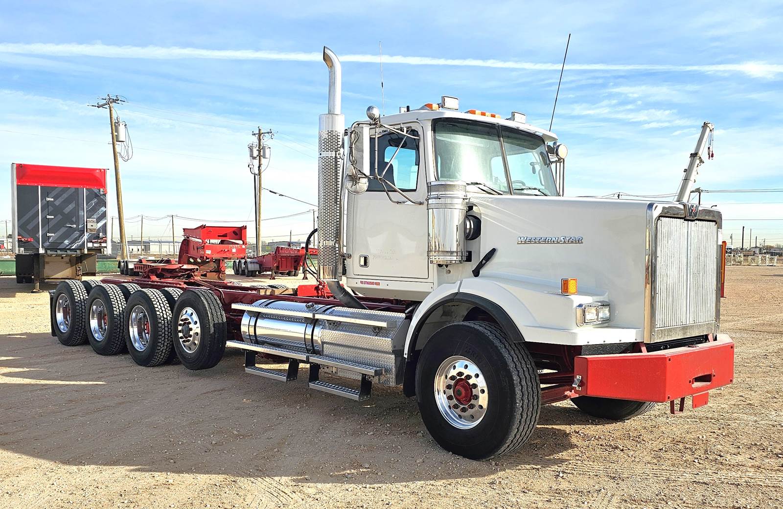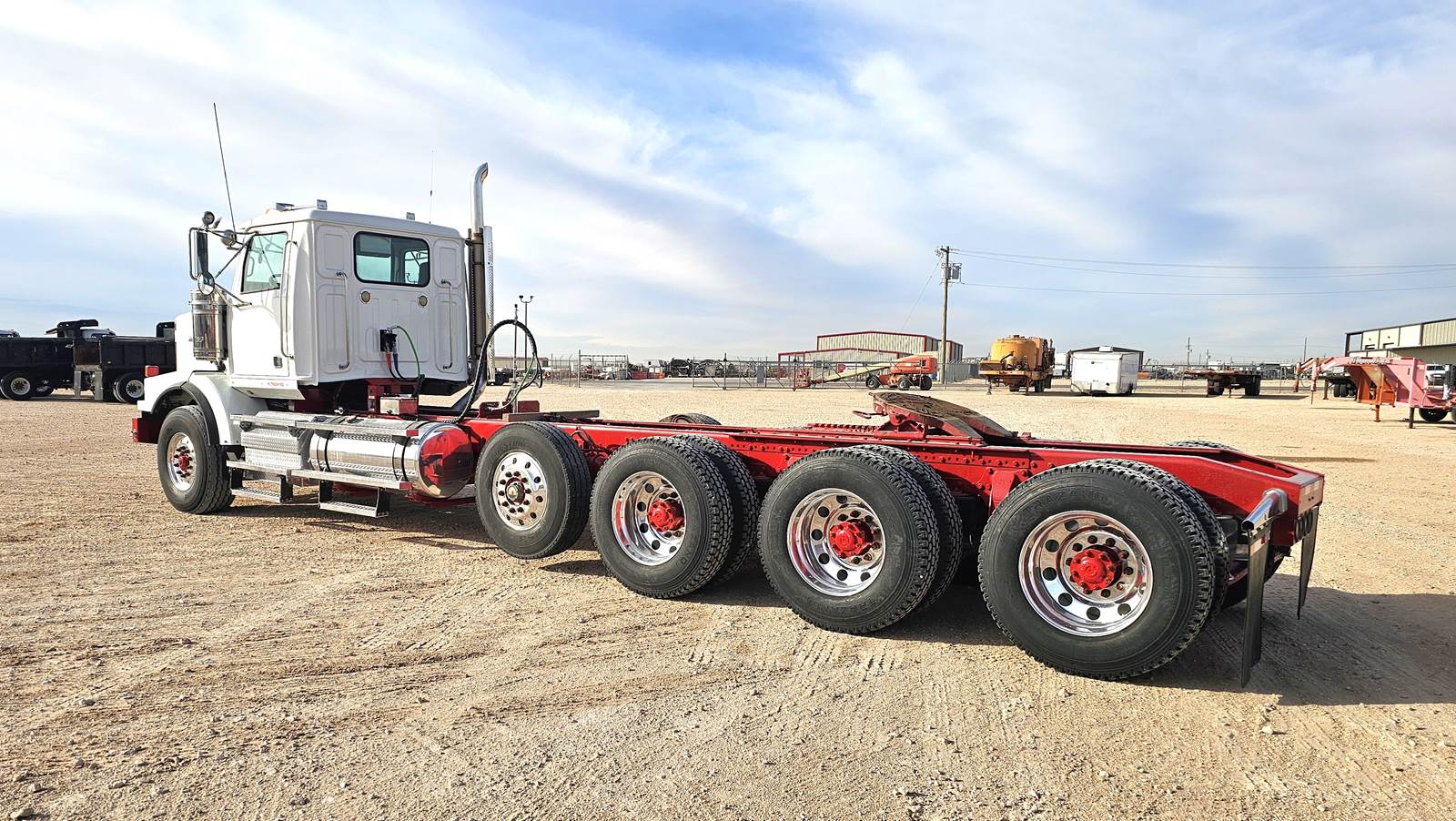 CUMMINS ISX 600 HP, EATON FULLER 18 SPD, 20K LBS. FRONT AXLE, 20K LBS. PUSHER AXLE, 69K LBS. TRI-DRIVE AXLES, FULL LOCKING REARS, RATIO 4.30, AIR SLIDE FIFTH WHEEL, ALUMINUM WHEELS, WB 320"