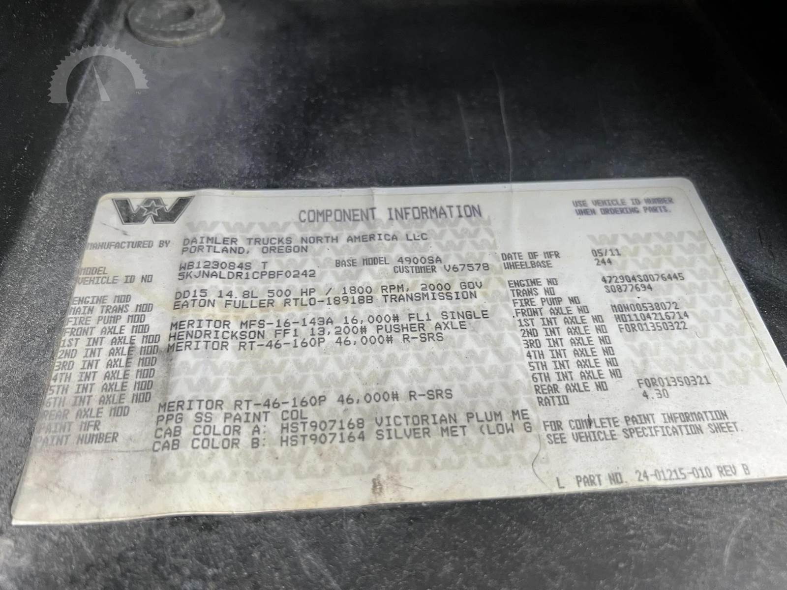2011 Western Star 4900SA, Only 50,000 original miles, 500 HP Detroit DD15, 18 Speed Overdrive transmission with 4.30 gears, 46k rear ends with full lockers. 16K front axle and #13,200 steerable lift, 2 Line wet kit.