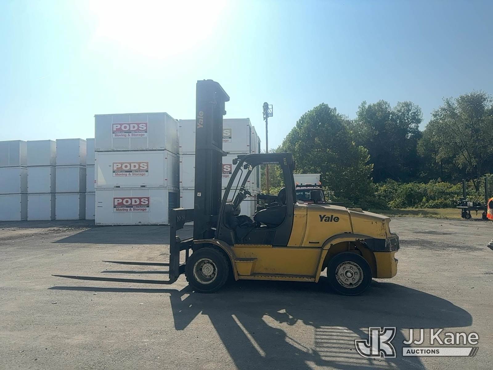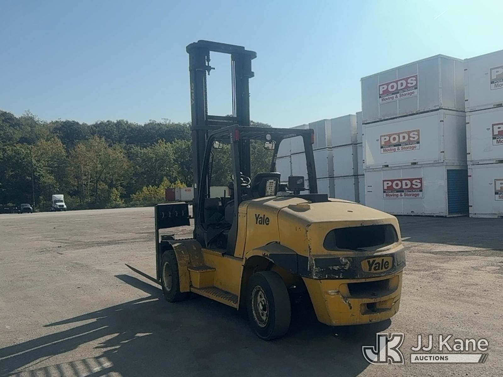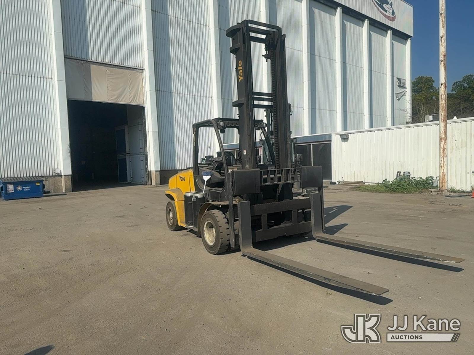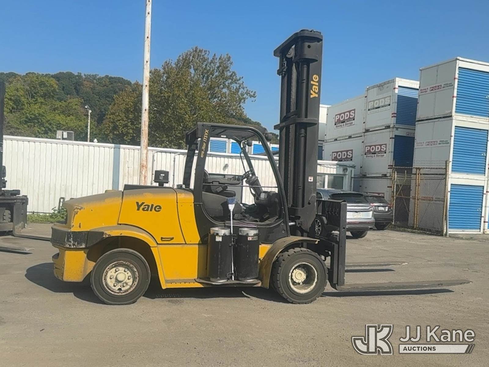 2012 Yale GLP-175VX Pneumatic Tired Forklift, s/n A909V01566K, Shuttle, LPG, with Two stage forklift. Mast height raised 222 in. Mast height lowered 156 in with 94 in forks, max capacity 16150lbs, LPG Tanks not included. (Runs, Moves & Operates With A Jump) (Reads 3,501 hours) NOTE: This unit is being sold AS IS/WHERE IS via Timed Auction and is located in Trafford, PA. For more information & removal arrangements please contact Michael Rosenblatt @ 412-699-8012. (Buyer is responsible for removal. Assistance by consignor or JJ Kane Auctioneers is not assured.)