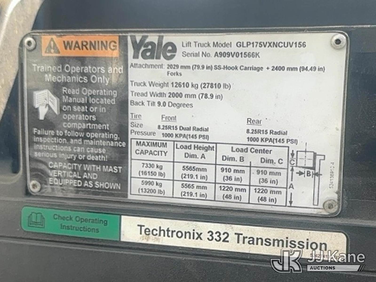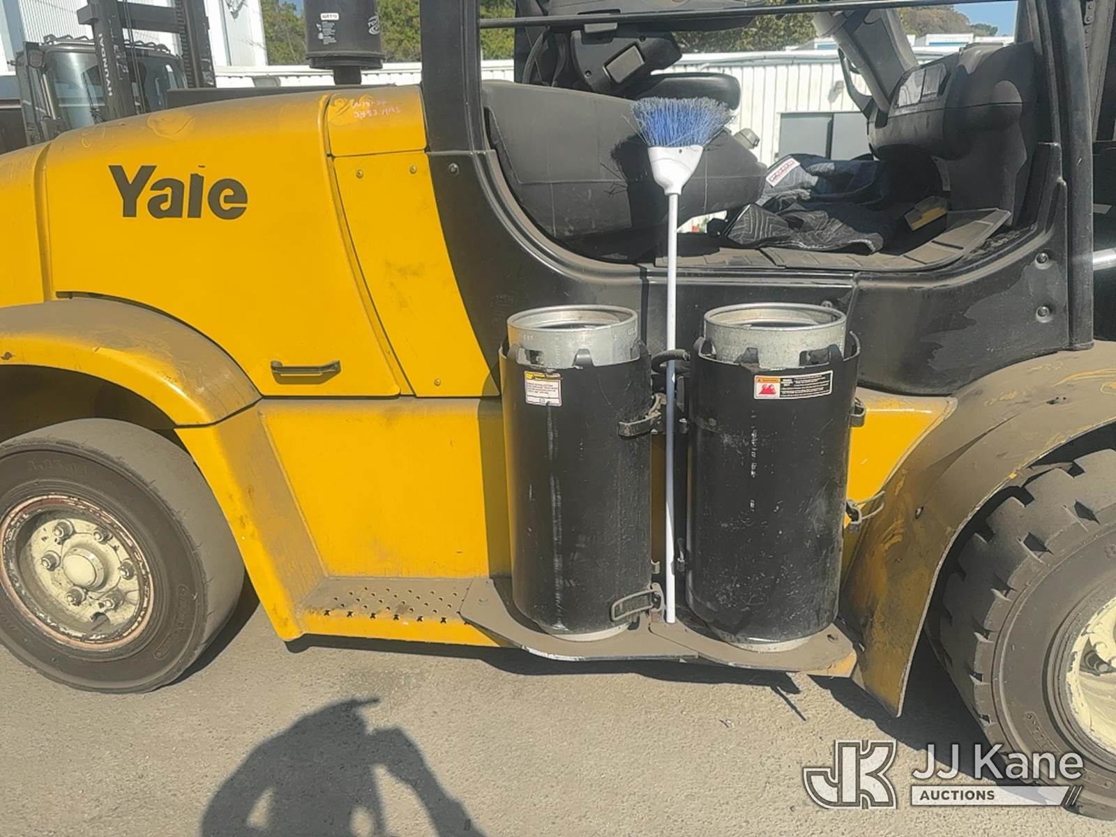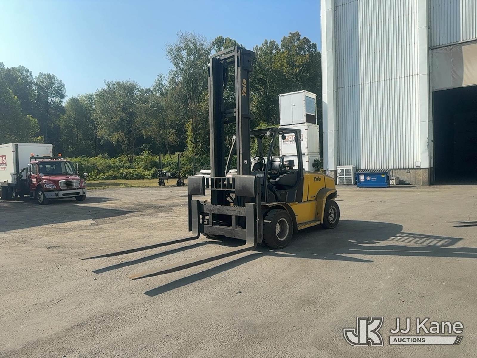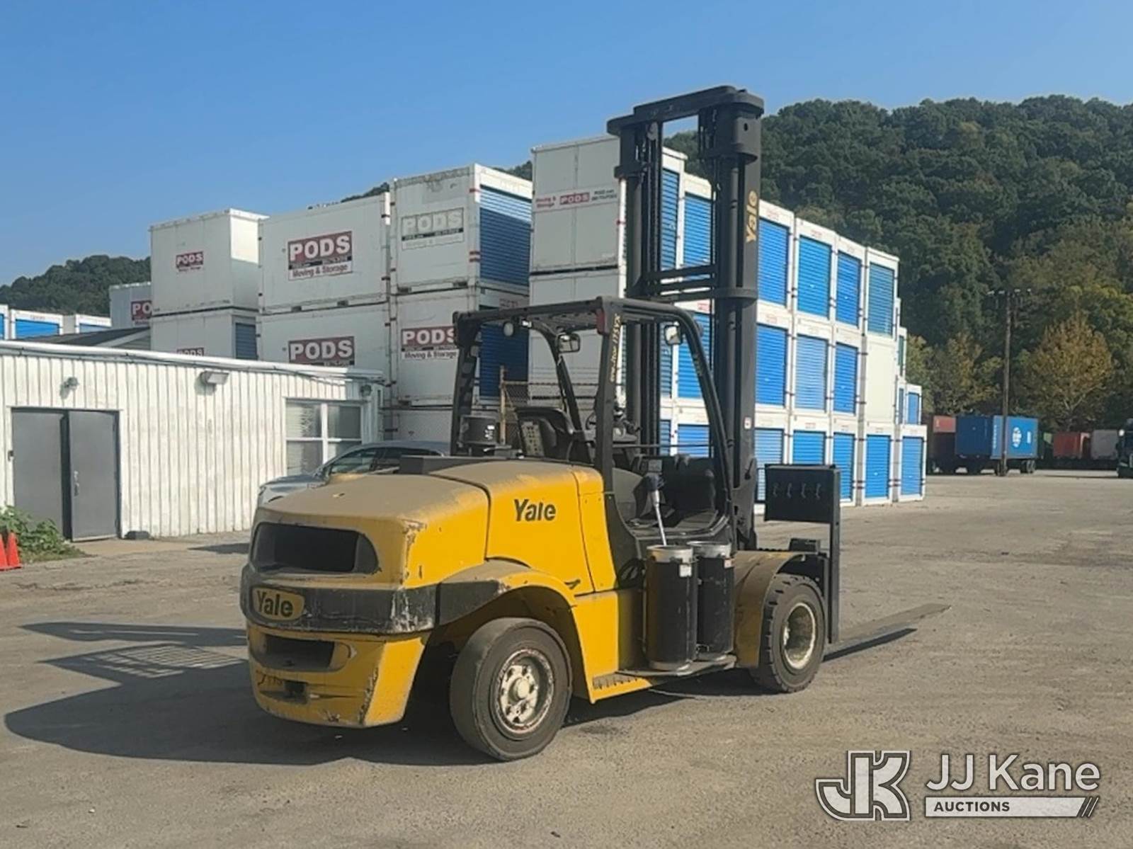 2012 Yale GLP-175VX Pneumatic Tired Forklift, s/n A909V01566K, Shuttle, LPG, with Two stage forklift. Mast height raised 222 in. Mast height lowered 156 in with 94 in forks, max capacity 16150lbs, LPG Tanks not included. (Runs, Moves & Operates With A Jump) (Reads 3,501 hours) NOTE: This unit is being sold AS IS/WHERE IS via Timed Auction and is located in Trafford, PA. For more information & removal arrangements please contact Michael Rosenblatt @ 412-699-8012. (Buyer is responsible for removal. Assistance by consignor or JJ Kane Auctioneers is not assured.)