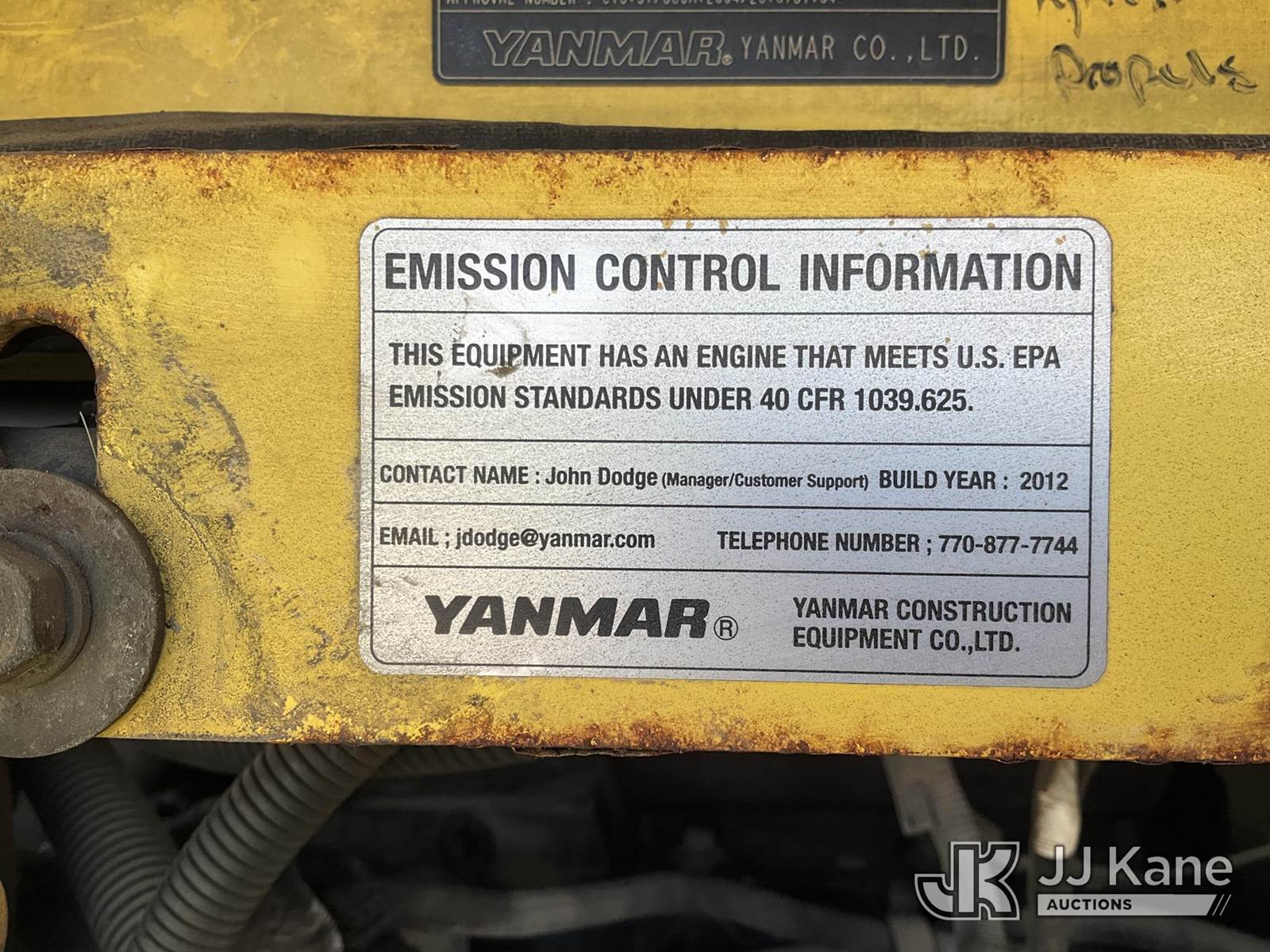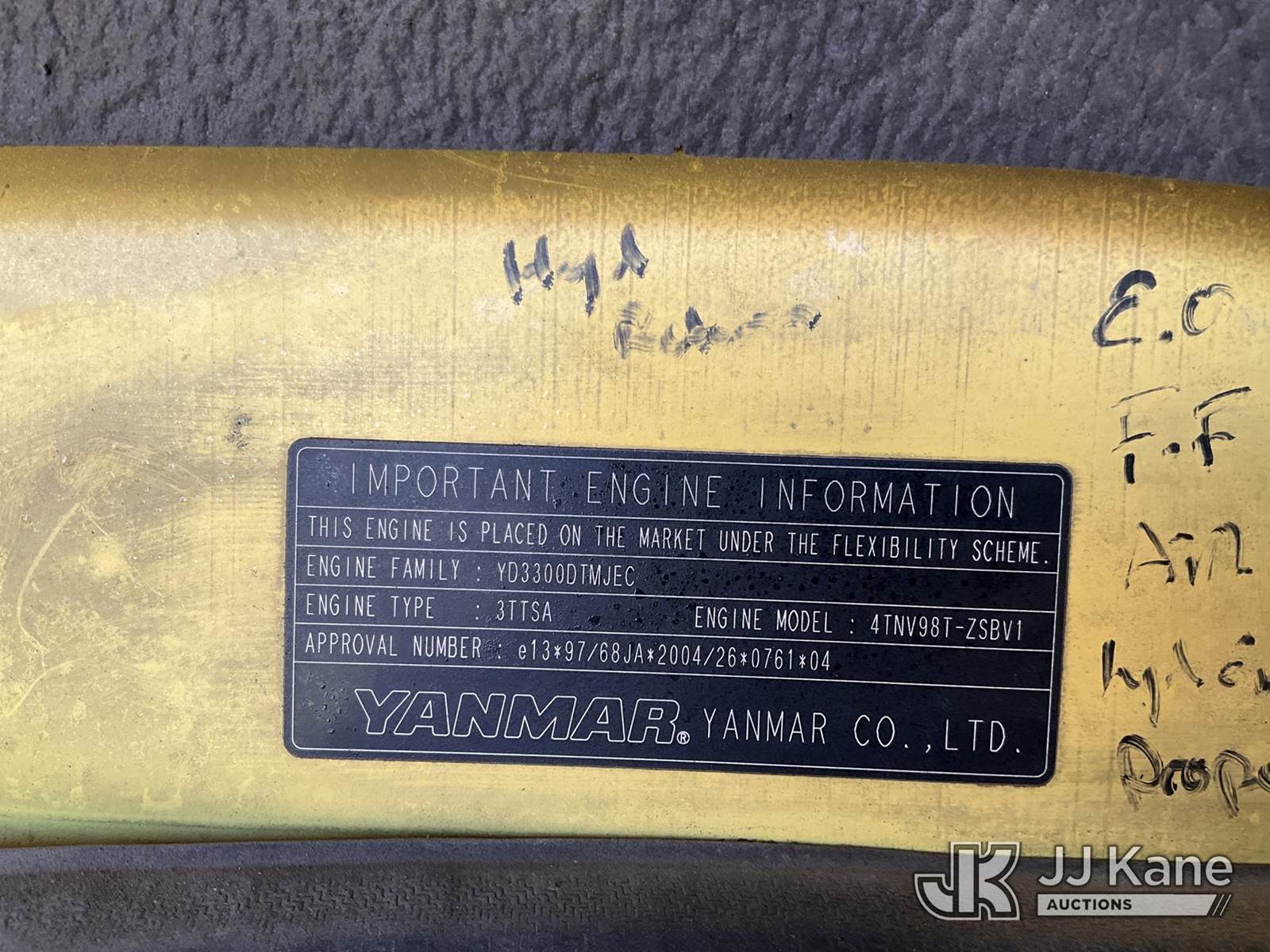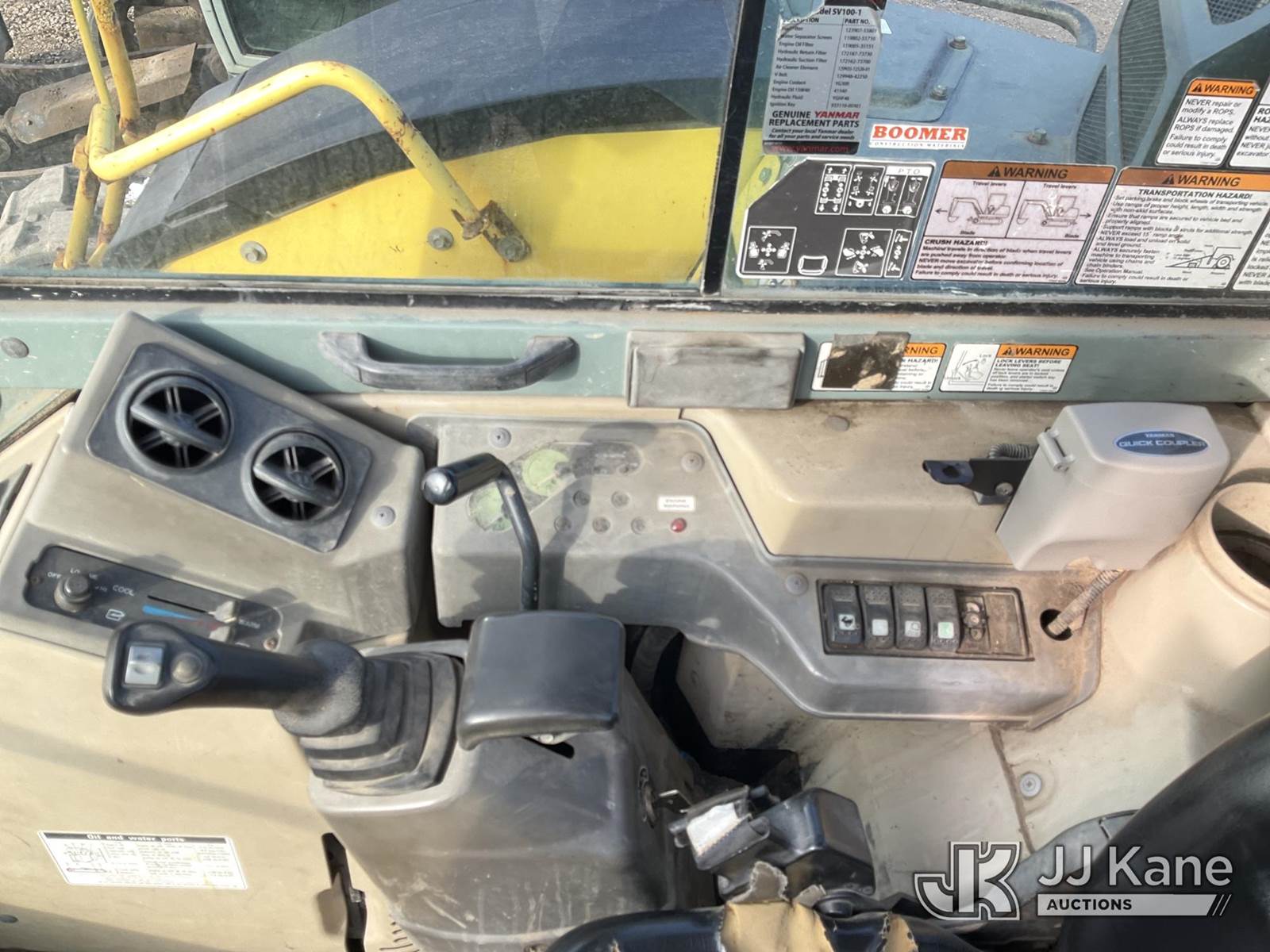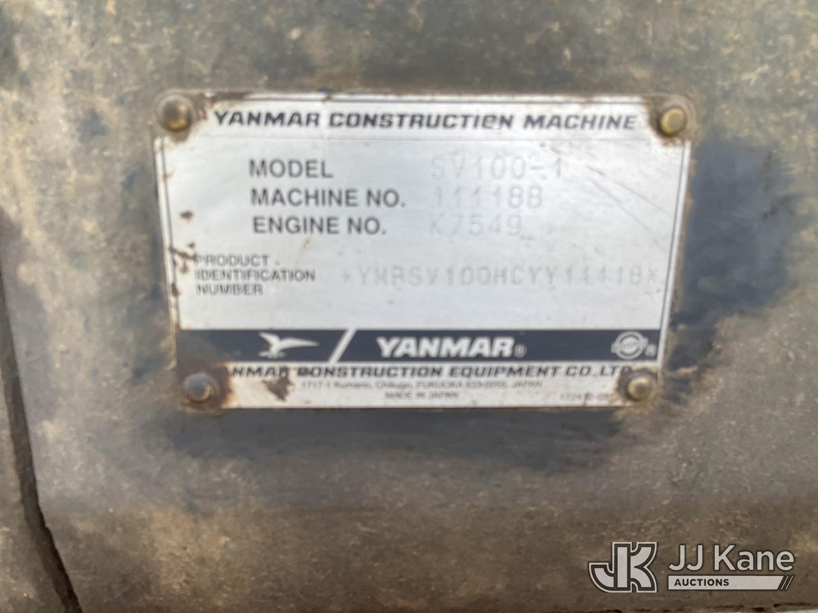 2012 Yanmar SV-100 Mini Hydraulic Excavator, s/n YMRSV100HCYY11118, Yanmar Hydraulic Driven, diesel, A/C, with rubber tracks, digging bucket, backfill blade & EROPS, (Runs, Moves, Operates ) (Reads 12,712 hours) NOTE: This unit is being sold AS IS/WHERE IS via Timed Auction and is located in Charlotte, MI. Inspection & preview days for this unit are the 2 business days prior to the first day of items closing for this auction, item is located at 750 Island Hwy Charlotte, MI 48813 and hours of operations are 8a-4p. For pre-sale questions, please contact Corey Cook at (517) 983-0796 or corey.cook@jjkane.com (Buyer is responsible for removal. Assistance by consignor or JJ Kane Auctioneers is not assured.)
