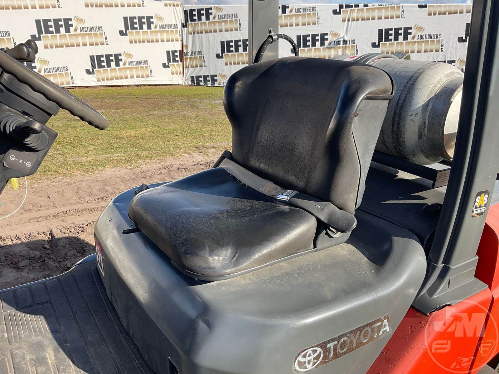 TOYOTA 5620 LB PNEUMATIC TIRE FORKLIFT, TOYOTA, 4 CYL , LPG, CANOPY, TILT CARRIAGE, SIDE SHIFT, OVERALL MAST HEIGHT 15' 5", 3 STAGE MAST, 42" FORKS, HOUR METER READS: 8367, ***LPG TANK NOT INCLUDED***