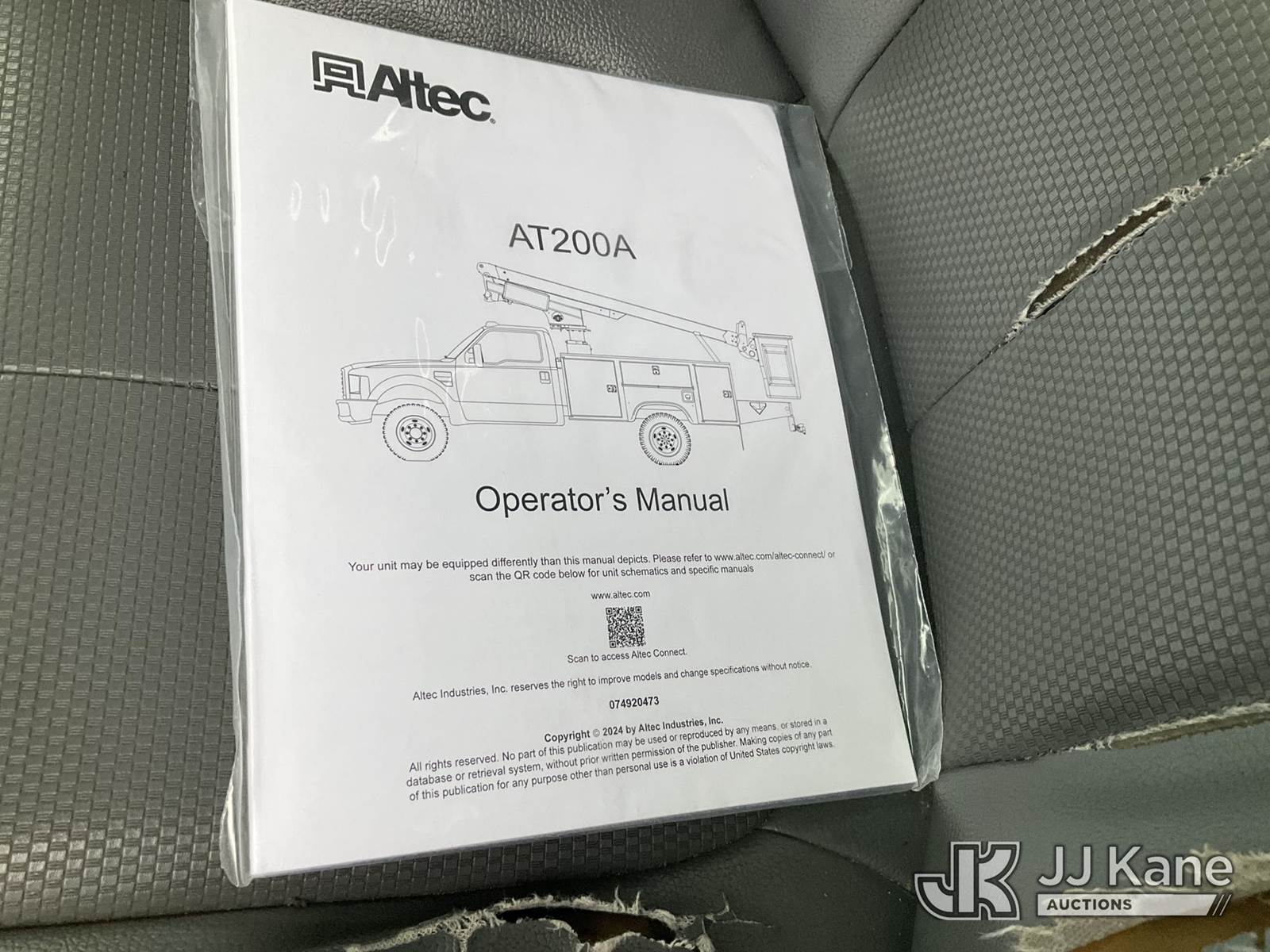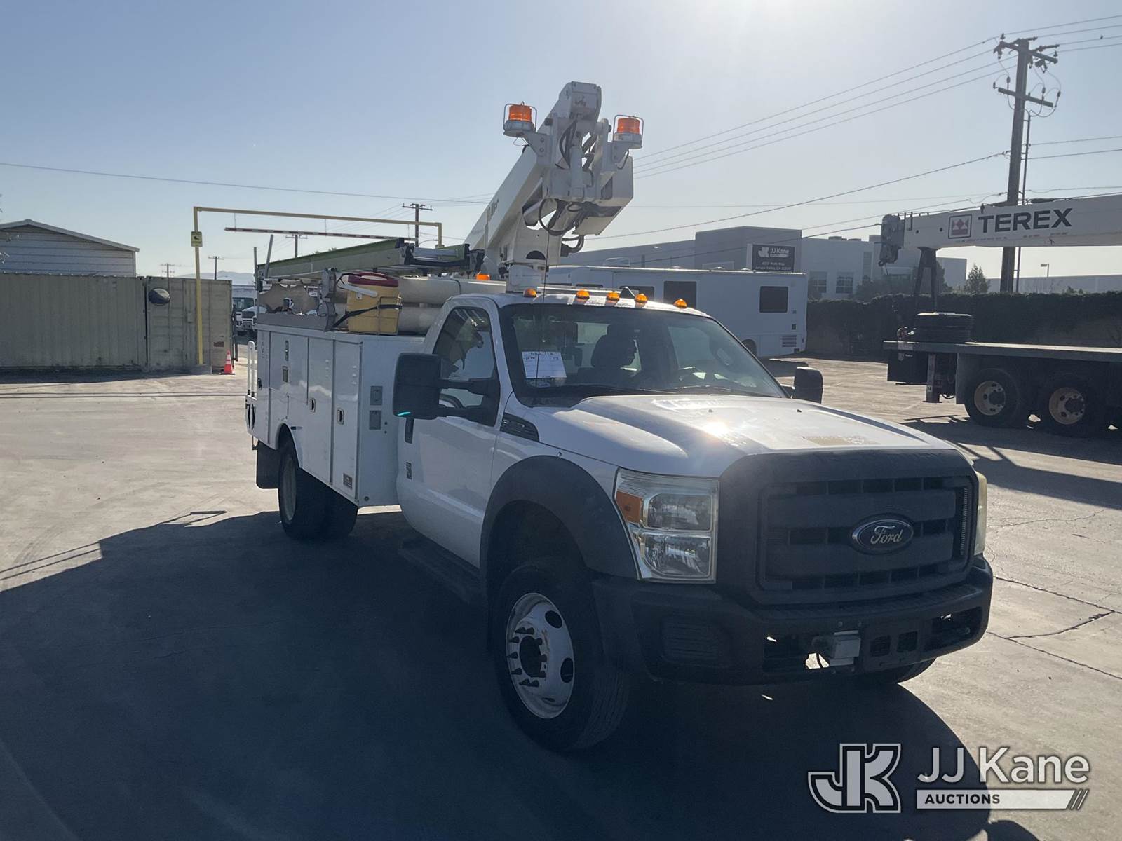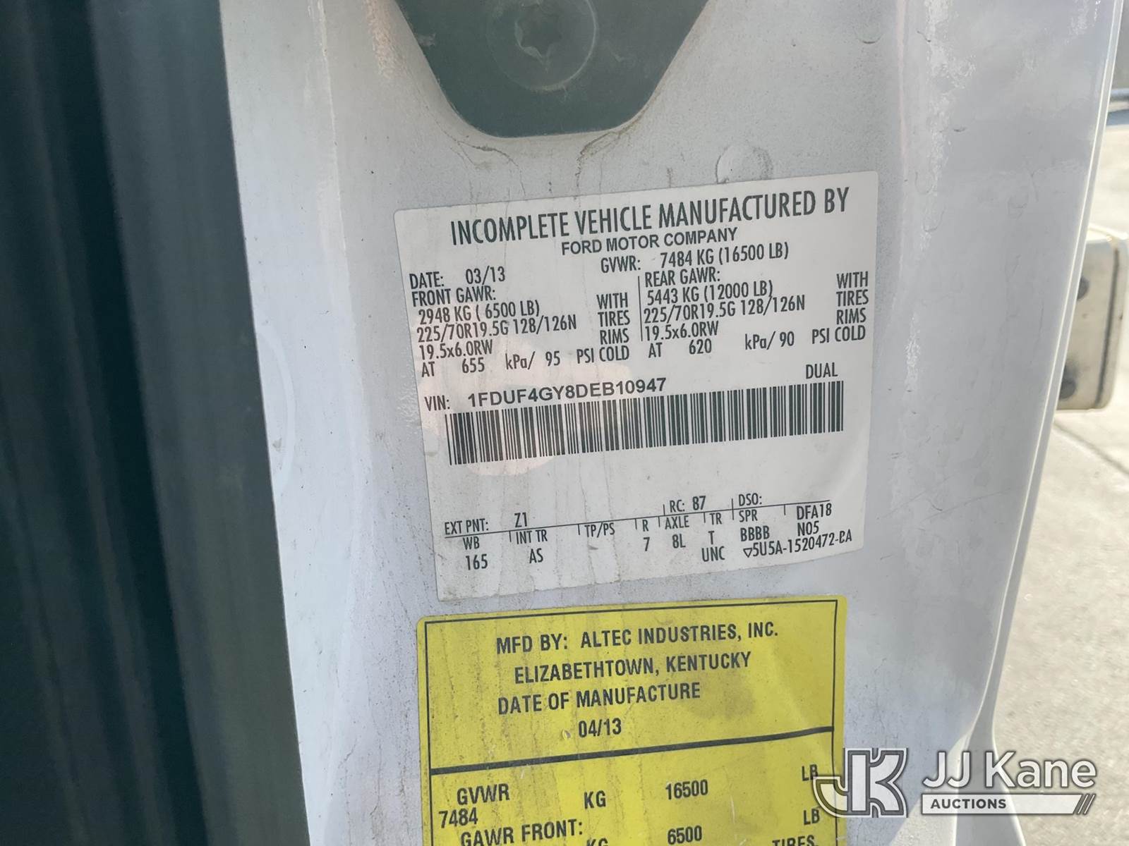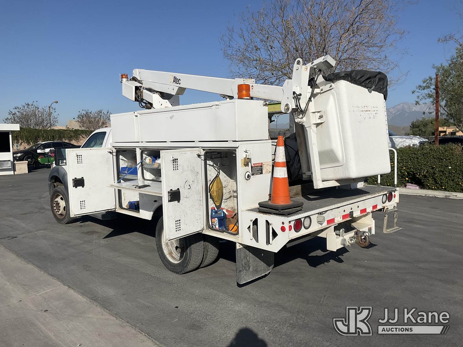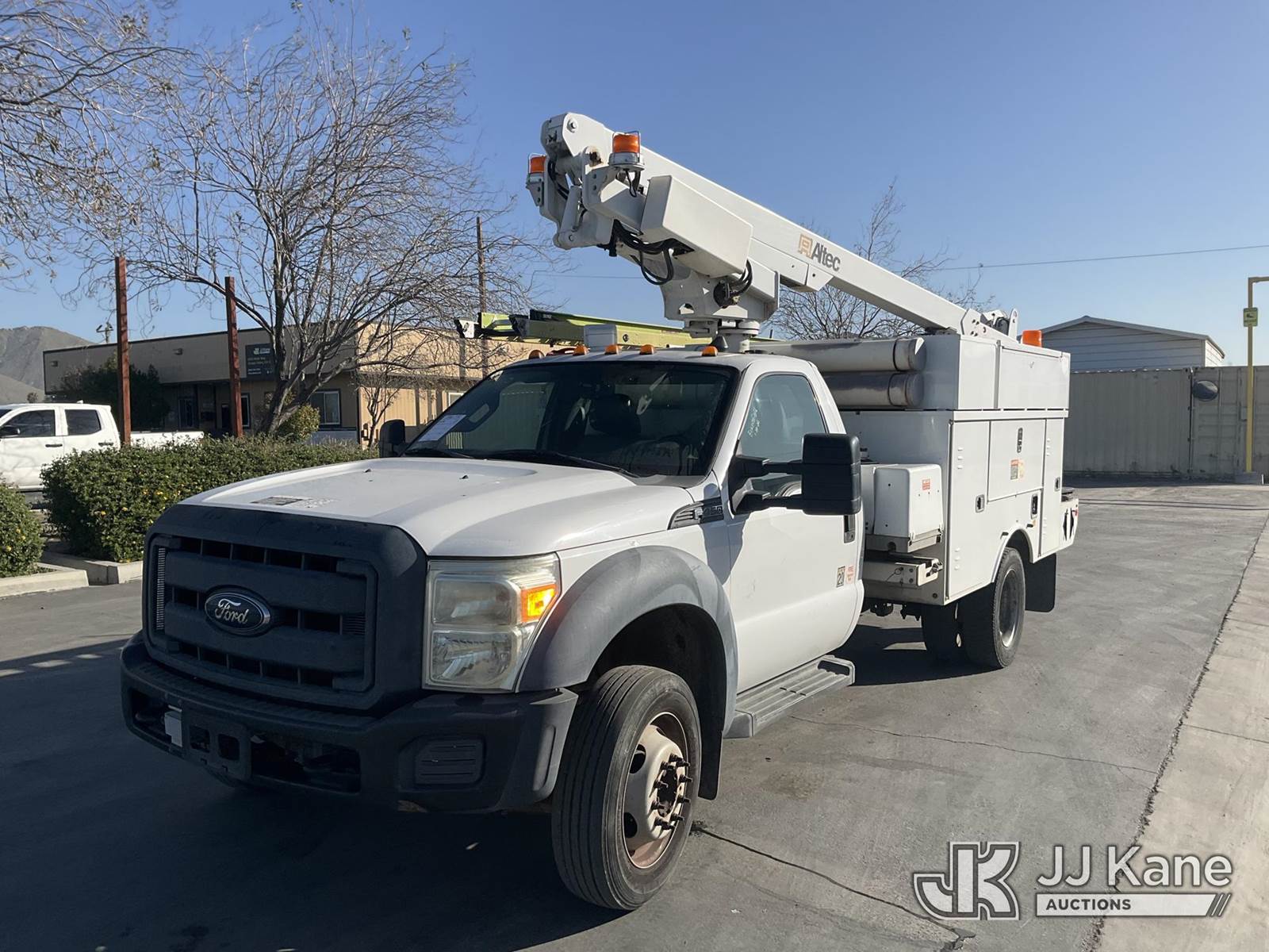 Altec 200A, 35 ft, Articulating & Telescopic Bucket s/n 0413BV20072, with single man bucket, mounted behind cab on 2013 Ford F-450 SD Regular Cab DRW 2WD Service Truck, 6.8L V10 SOHC 30V Gas, Auto, A/C, with Tow Package , (119,527 miles) (Runs & Moves) (Upper Does Not Operate)) This is a Titled Item NOTE: This unit is being sold AS IS/WHERE IS via Timed Auction and is located in Jurupa Valley, CA. Inspection & preview days for this unit are the 2 business days prior to the first day of items closing for this auction, item is located at 4510 Muth Way Jurupa Valley, CA 92509 and hours of operations are 8a-4p. For pre-sale questions, please contact please contact Office Staff @ (310) 353-7140. Dealer License Number 45696. (Manuals provided in cab) (Buyer is responsible for removal. Assistance by consignor or JJ Kane Auctions is not assured.)