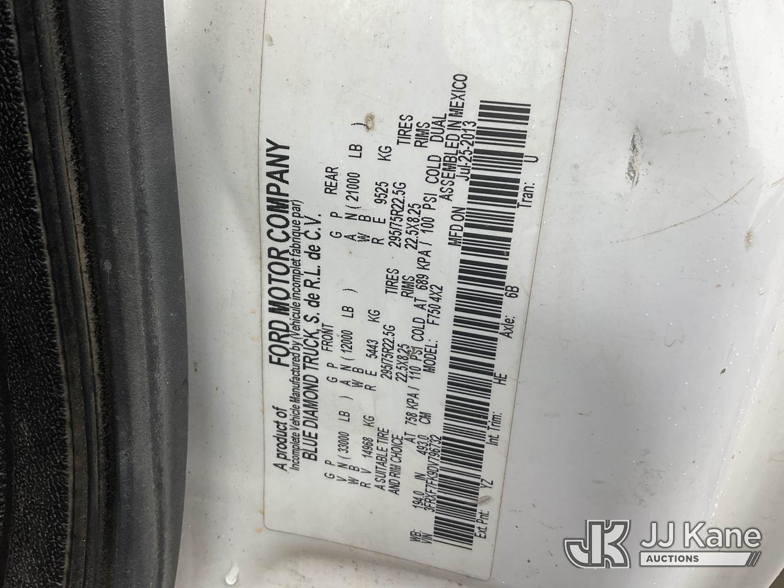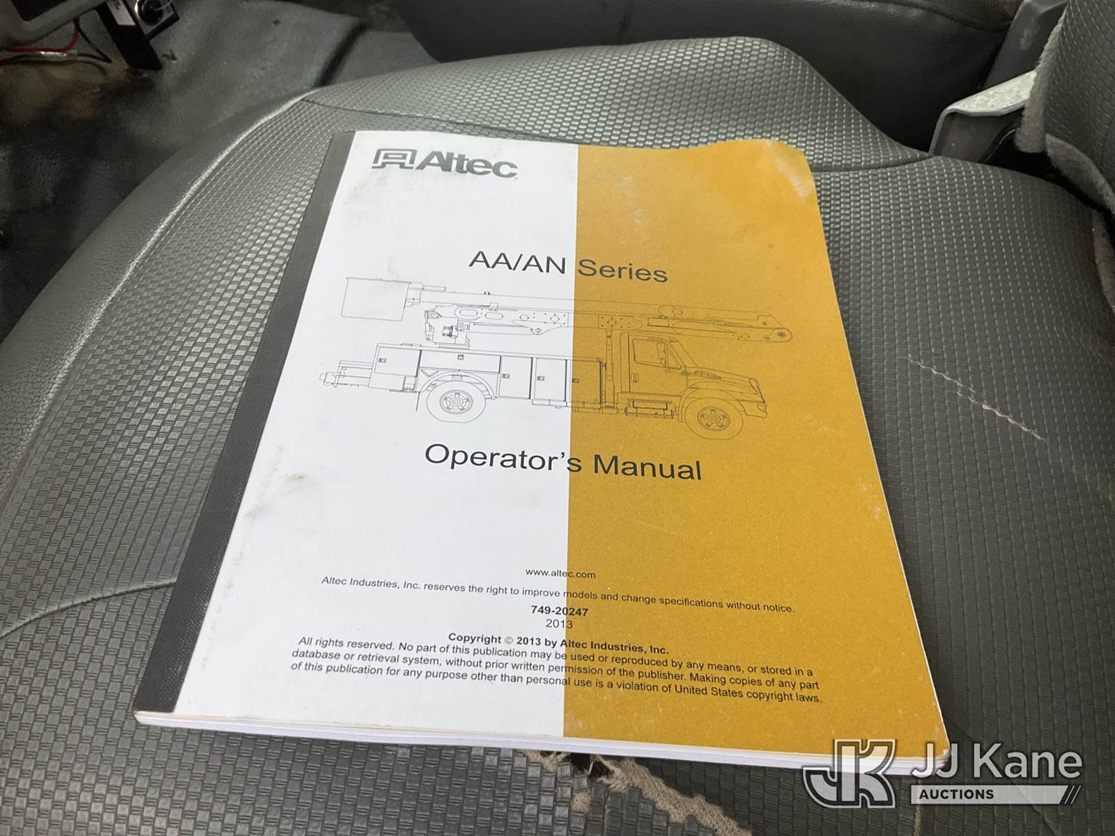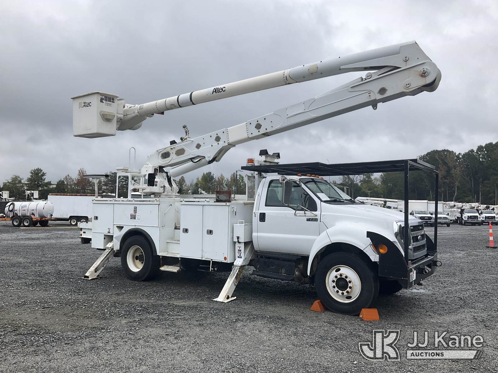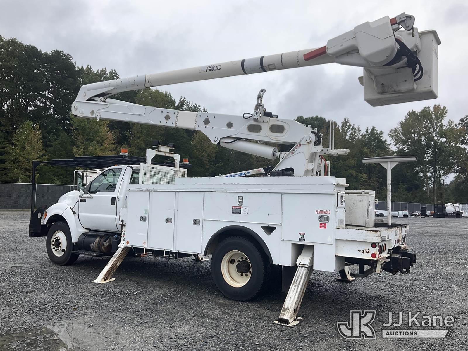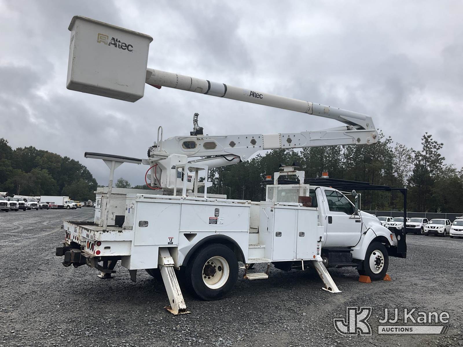 Altec A55E-MH, 60 ft, Material Handling Bucket Truck s/n 0713FH0548, with two-man bucket, rear mounted on 2013 Ford F750 Utility Truck, Cummins ISB 6.7L diesel, Auto, A/C, (110,888 miles) (Runs, Moves & Upper Operates) (ABS Light On, Automatic Trans/Limp Mode Light On, Missing Upper Placard, Body Damage) This is a Titled Item NOTE: This unit is being sold AS IS/WHERE IS via Timed Auction and is located in China Grove, NC. Inspection & preview days for this unit are the 2 business days prior to the first day of items closing for this auction, item is located at 820 E NC Hwy 152 China Grove, NC 28023 and hours of operations are 8a-4p. For pre-sale questions, please contact Office Staff @ (704) 674-1113. (Manuals provided in cab) (Buyer is responsible for removal. Assistance by consignor or JJ Kane Auctioneers is not assured.)