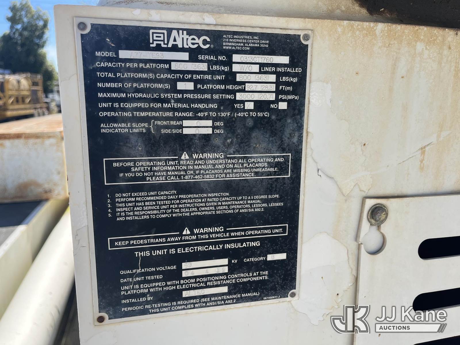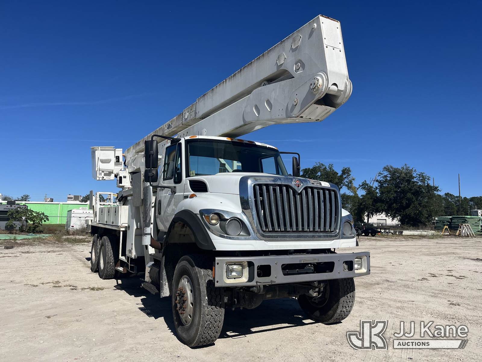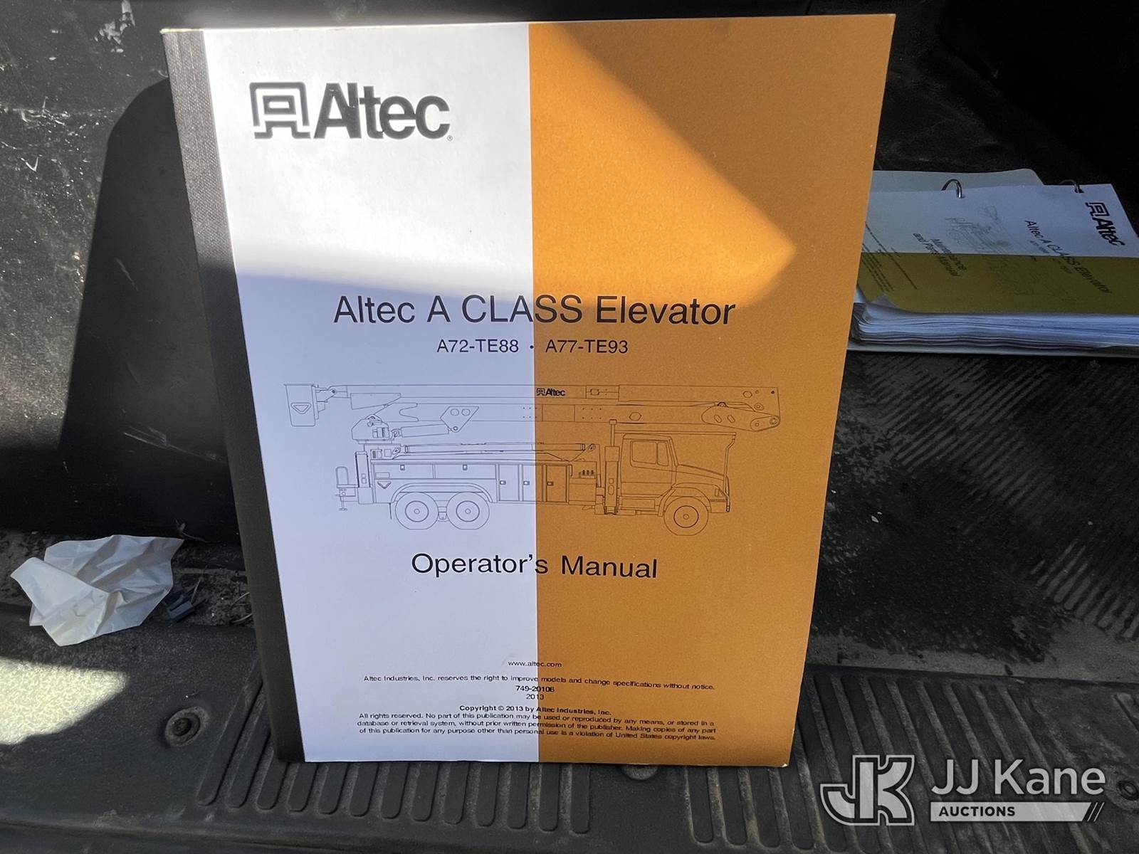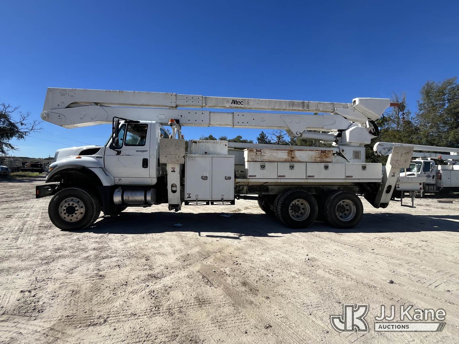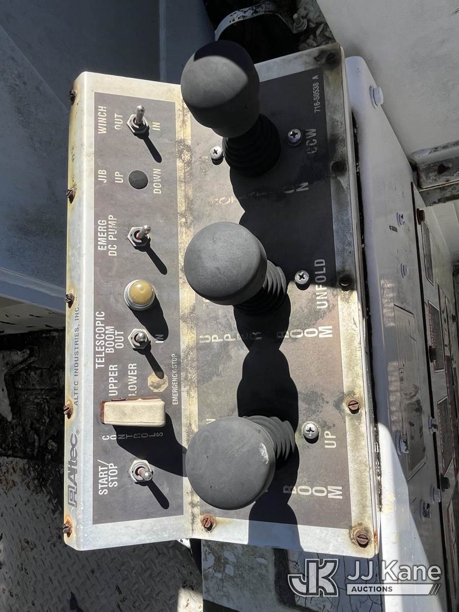 Altec A77T-E93-MH, 98 ft, Articulating & Telescopic Material Handling Elevator Bucket Truck s/n 0313CT1760, with two-man bucket & 4 hyd outriggers, rear mounted on 2013 International 7500 6x6 Flatbed/Utility Truck, 9.3L L6 diesel, 10-spd, A/C, (24,367 miles) (Runs, Moves, Operates) ( Hydraulic Leak From Outrigger, Seller States: Multiple Upper Issues, Ring Gear Rust) (Reads 4,981 hours) This is a Titled Item NOTE: This unit is being sold AS IS/WHERE IS via Timed Auction and is located in Leesburg, FL. For more information & removal arrangements please contact Dylan Evans @ 205-936-1094. (Missing manuals, See Auction Company for Manufacturers Information to obtain manuals) (Buyer is responsible for removal. Assistance by consignor or JJ Kane Auctioneers is not assured.)