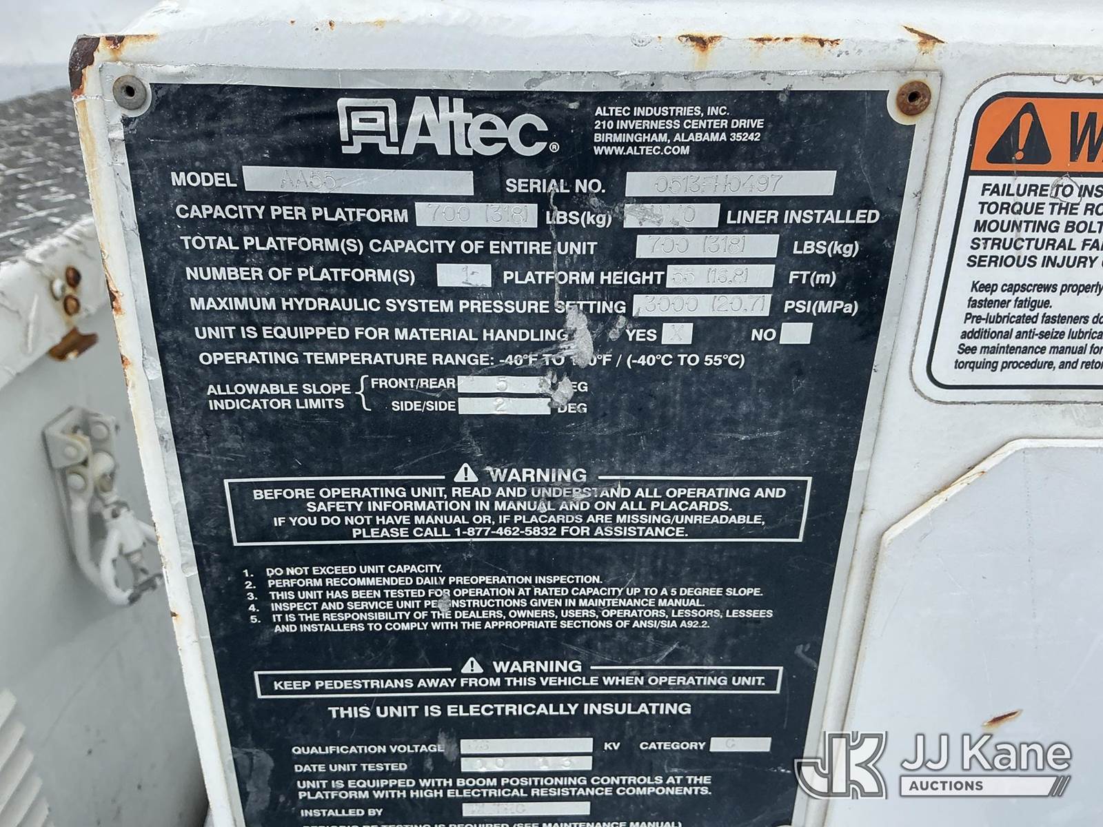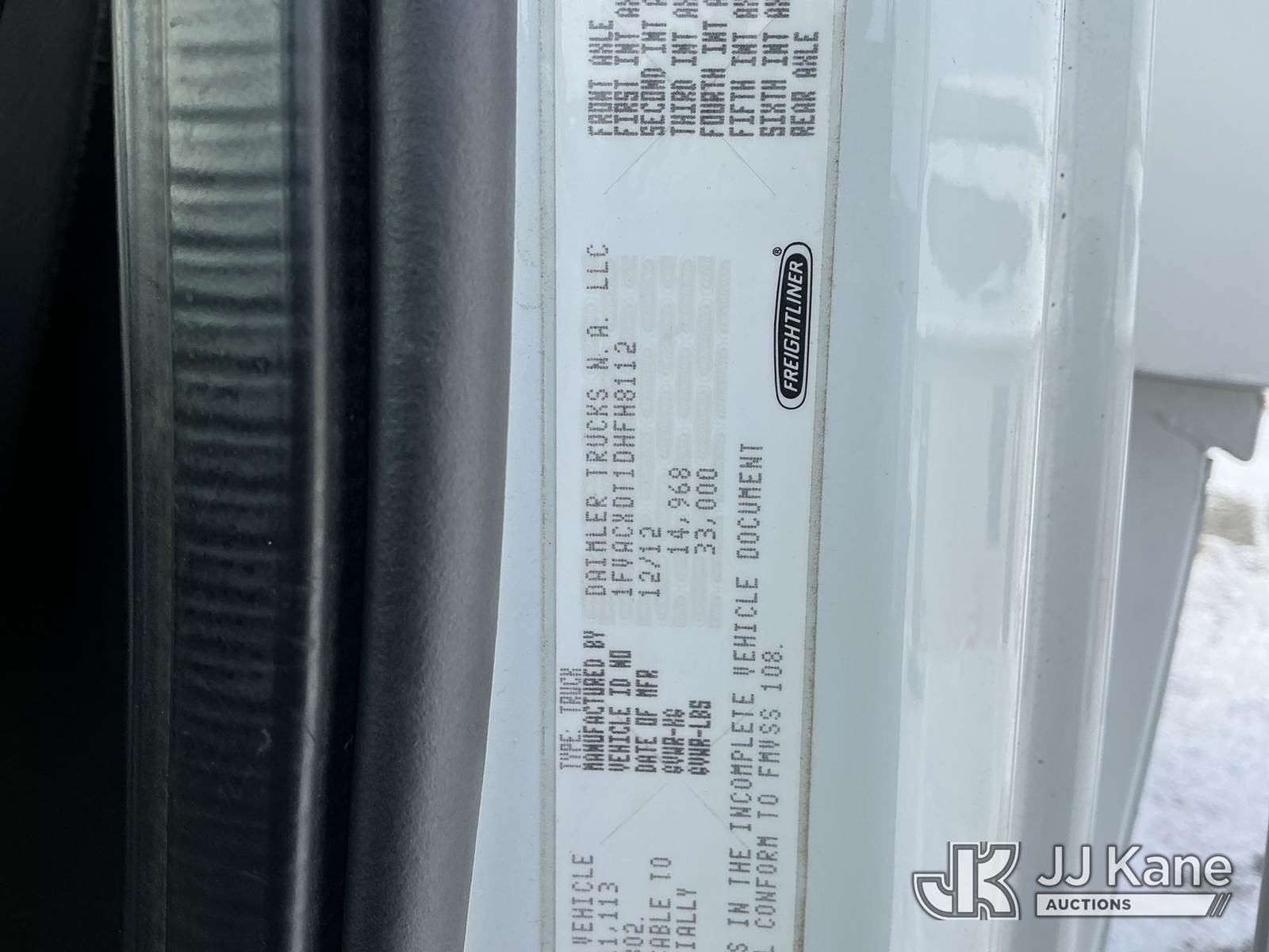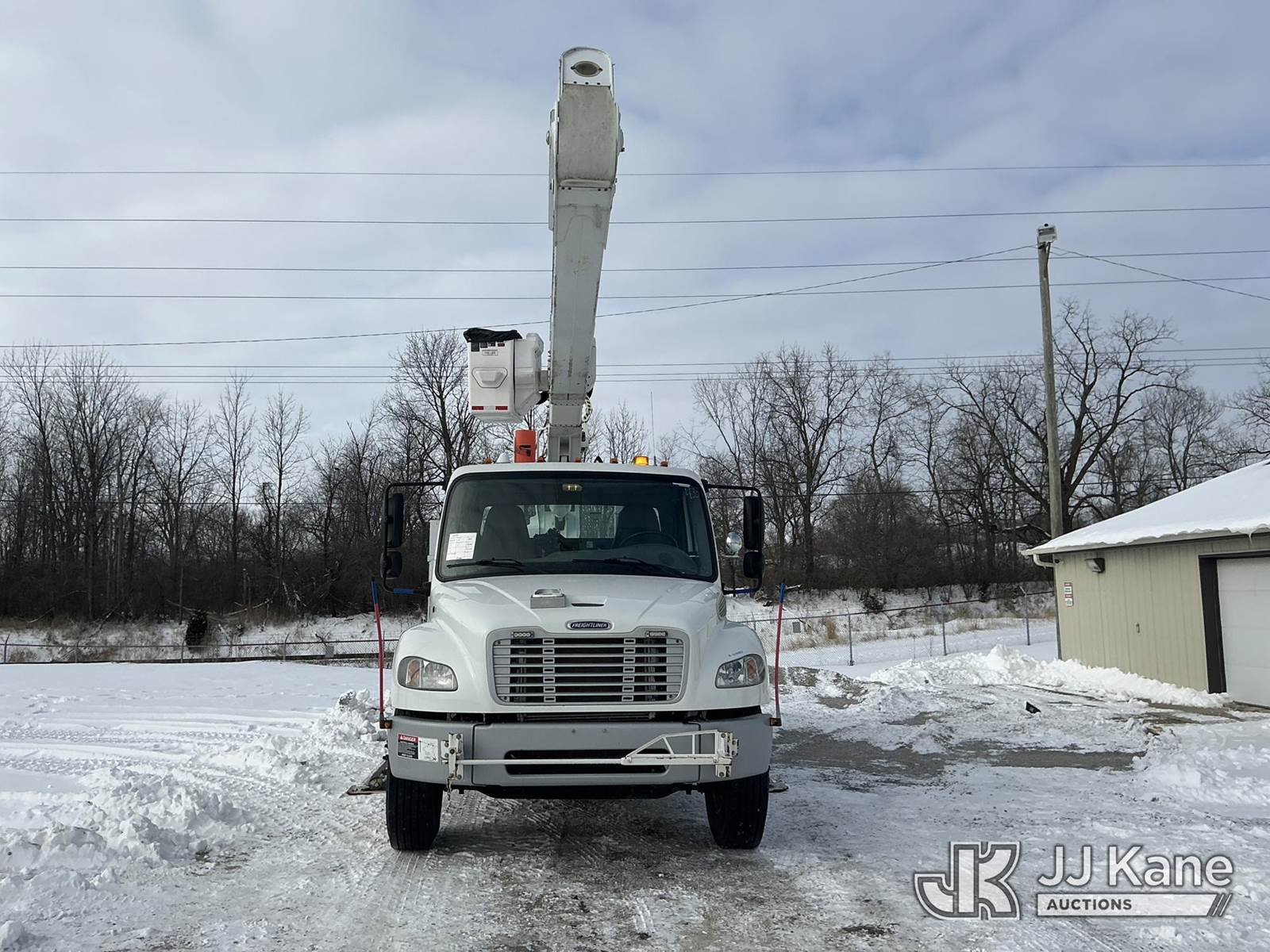 Altec AA55-MH, 60 ft, Material Handling Bucket Truck s/n 0513FH0497, with two-man bucket & 4 hyd outriggers, rear mounted on 2013 Freightliner M2 106 Utility Truck, 6.7L L6 diesel, 4X2, Auto, A/C, with inverter, (35,098 miles) (Runs, Moves & Upper Operates) (Reads 4,518 hours) This is a Titled Item NOTE: This unit is being sold AS IS/WHERE IS via Timed Auction and is located in Fort Wayne, IN. For more information & removal arrangements please contact Office Staff @ (260) 450-9822. Load out by appointment only, Buyer/Hauler must present copy of paid invoice upon arrival. Purchaser acknowledges ALL lots must be removed within (10) business days of Auction, or a storage fee may be incurred. For load out and pick up information, please reference the hauler sheet sent out after purchase. (Manuals provided in cab) (Buyer is responsible for removal. Assistance by consignor or JJ Kane Auctions is not assured.)