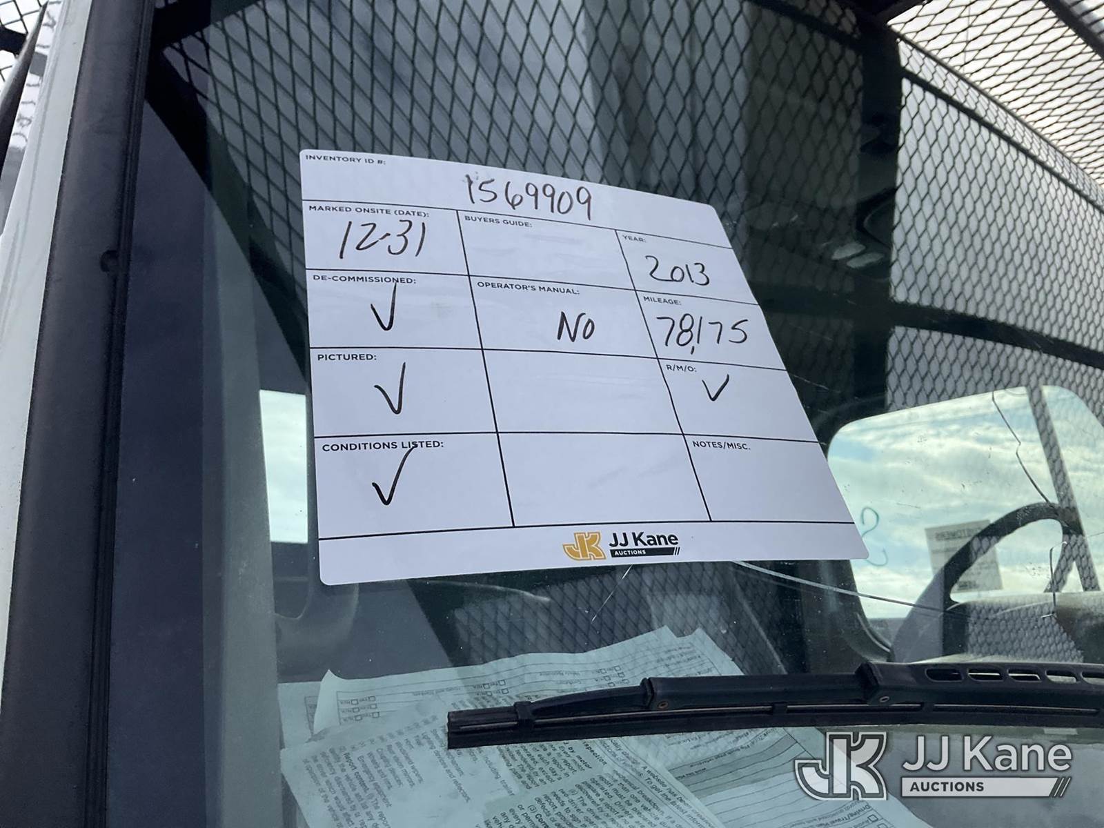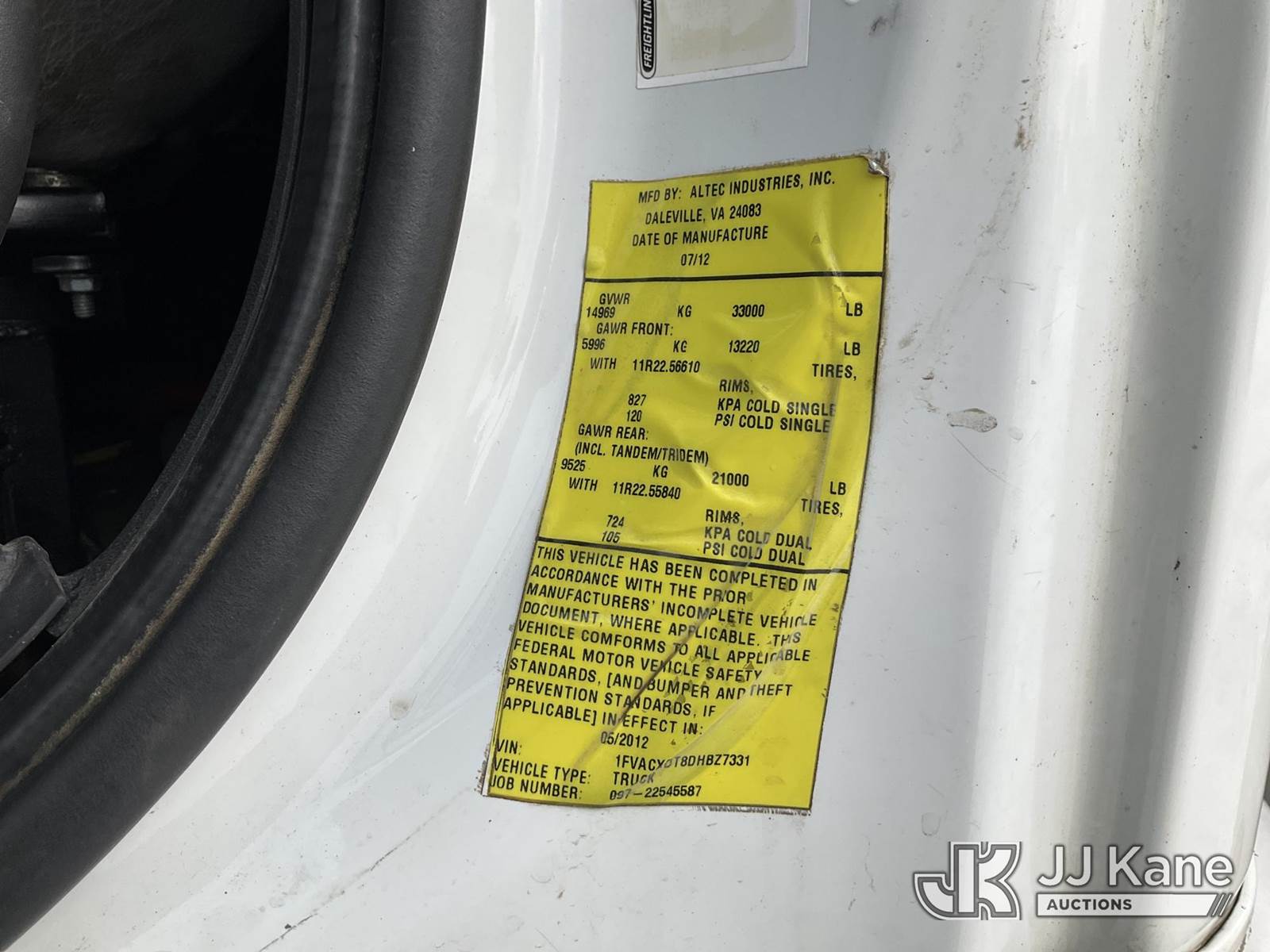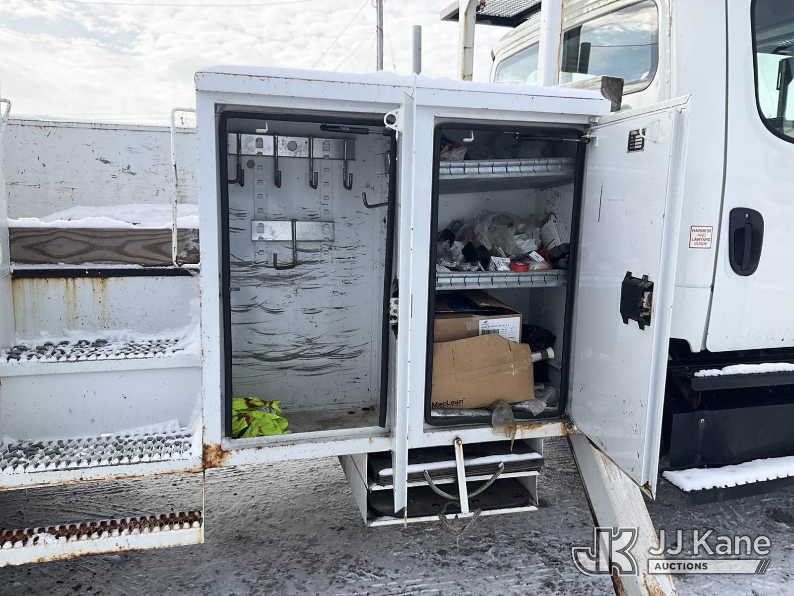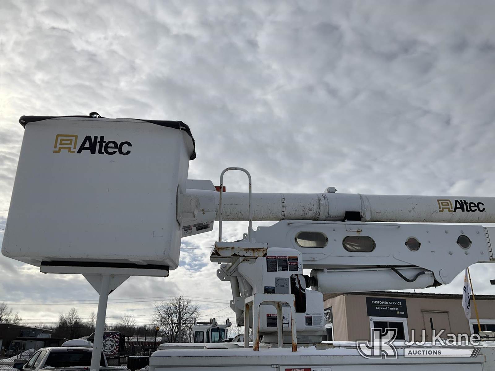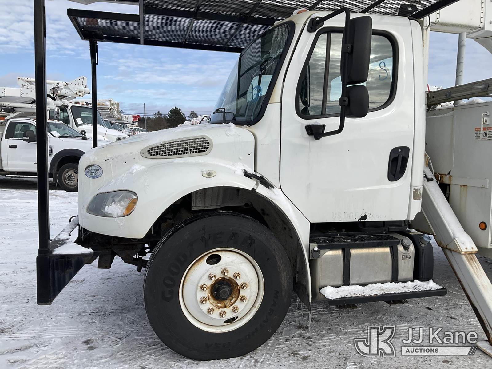 Altec AA55E-MH, 60 ft, Material Handling Bucket Truck s/n 0512FH0156, with Two-Man Bucket & 4 Outriggers, rear mounted on 2013 Freightliner M2 106 Utility Truck, 6.7L Auto, diesel, A/C, (78,175 miles) (Runs, Moves & Upper Operates, Body & Rust Damage, Low Fuel, Cracked Windshield ) (Reads 8,274 hours) This is a Titled Item NOTE: This unit is being sold AS IS/WHERE IS via Timed Auction and is located in Rome, NY. Inspection & preview days for this unit are the 2 business days prior to the first day of items closing for this auction, item is located at 5835 Success Dr Rome, NY 13440 and hours of operations are 8a-4p. For pre-sale questions, please contact Ryan Jackson @ (315) 749-3790 or Ryan.Jackson@jjkane.com. (Manuals provided in cab) (Buyer is responsible for removal. Assistance by consignor or JJ Kane Auctions is not assured.)