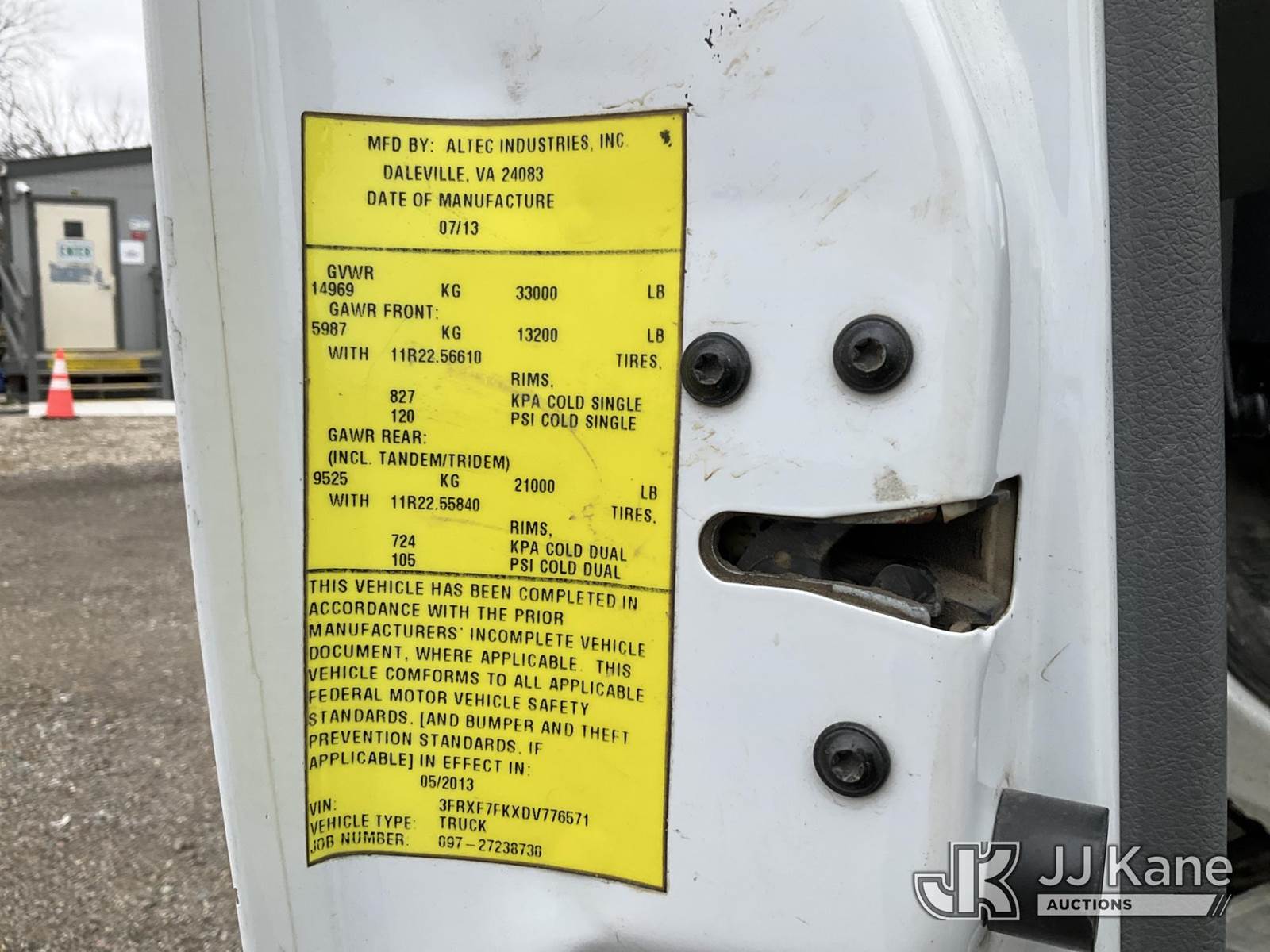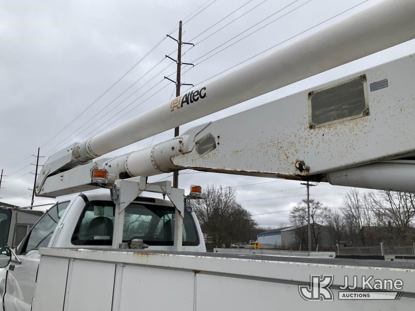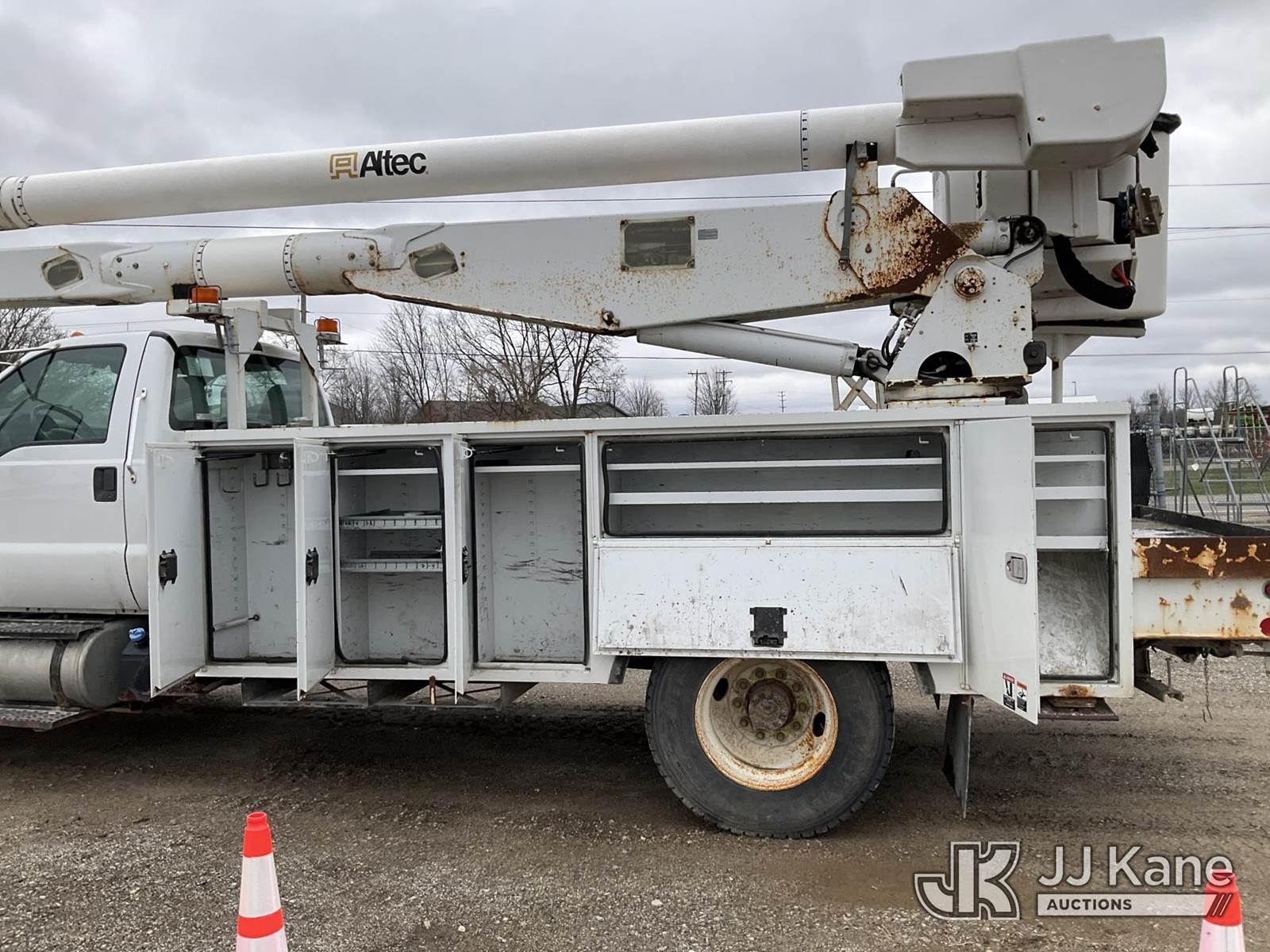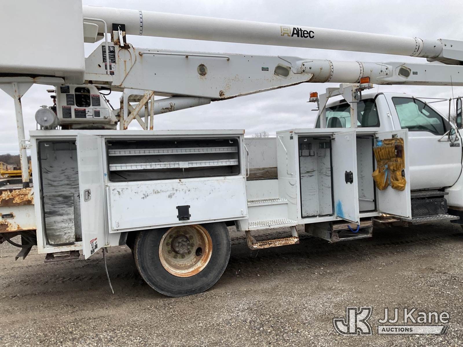 Altec AA755-MH, 60 ft, Articulating Material Handling Bucket Truck s/n 0513BZ7314, with two man bucket, four hydraulic outriggers, jib attachment missing, rear mounted on 2013 Ford F-750 Regular Cab 2WD DRW Utility Truck, 6.7L L6 DIESEL 4X2, Auto, A/C, (52,173 miles) (Runs, Moves & Upper Operates) (Rust) (Reads 5,828 hours) This is a Titled Item NOTE: This unit is being sold AS IS/WHERE IS via Timed Auction and is located in Charlotte, MI. Inspection & preview days for this unit are the 2 business days prior to the first day of items closing for this auction, item is located at 750 Island Hwy Charlotte, MI 48813 and hours of operations are 8a-4p. For pre-sale questions, please contact Corey Cook at (517) 983-0796 or corey.cook@jjkane.com (Manuals provided in cab) (Buyer is responsible for removal. Assistance by consignor or JJ Kane Auctions is not assured.)