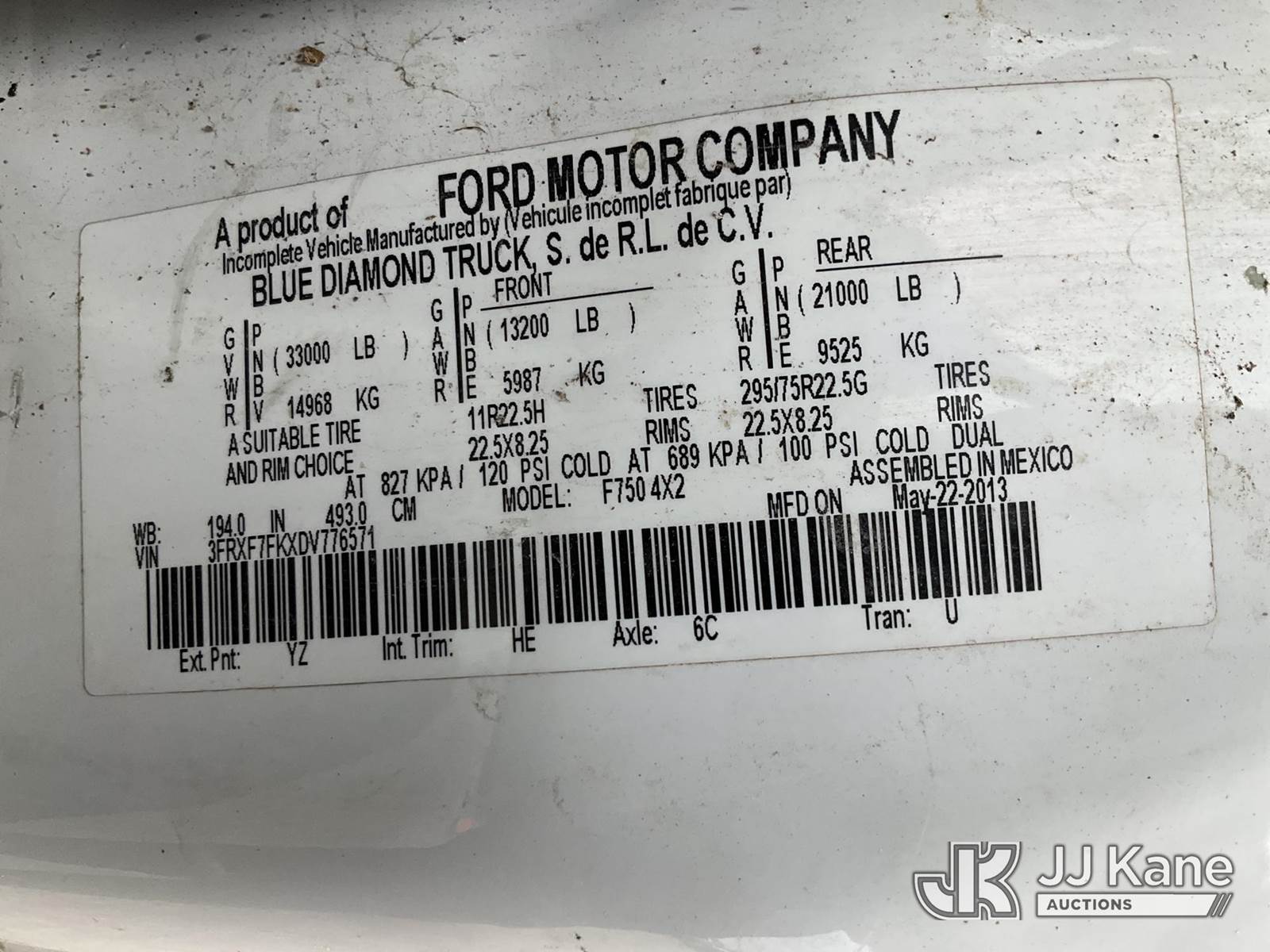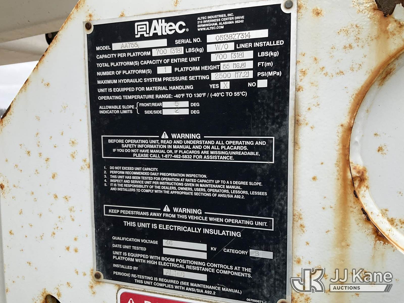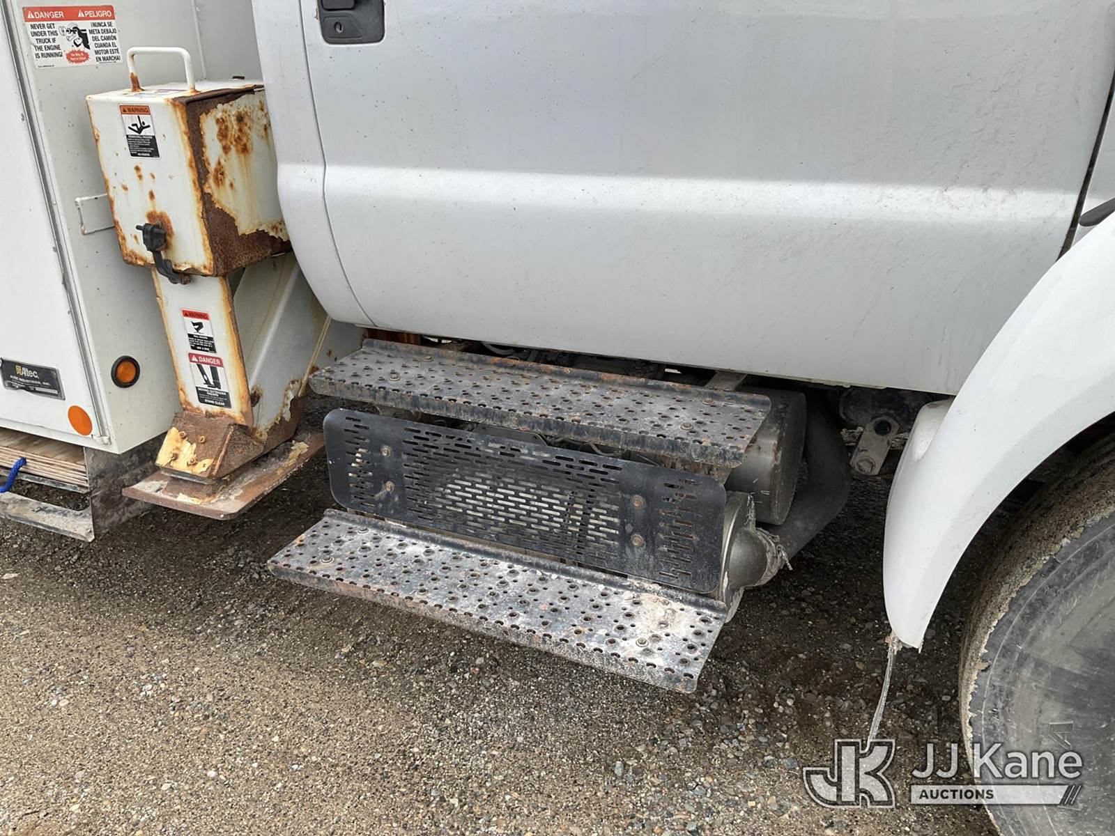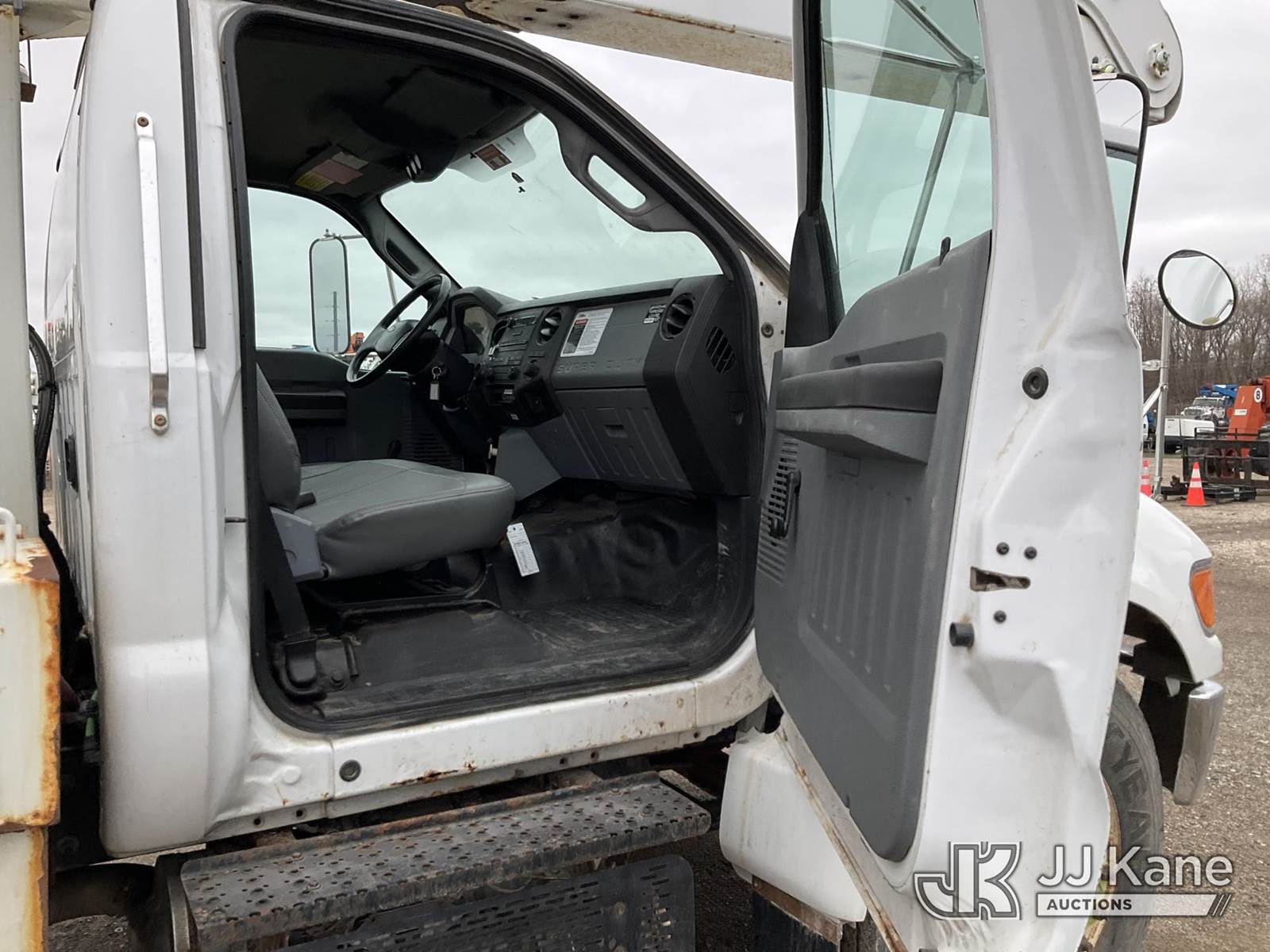 Altec AA755-MH, 60 ft, Articulating Material Handling Bucket Truck s/n 0513BZ7314, with two man bucket, four hydraulic outriggers, jib attachment missing, rear mounted on 2013 Ford F-750 Regular Cab 2WD DRW Utility Truck, 6.7L L6 DIESEL 4X2, Auto, A/C, (52,173 miles) (Runs, Moves & Upper Operates) (Rust) (Reads 5,828 hours) This is a Titled Item NOTE: This unit is being sold AS IS/WHERE IS via Timed Auction and is located in Charlotte, MI. Inspection & preview days for this unit are the 2 business days prior to the first day of items closing for this auction, item is located at 750 Island Hwy Charlotte, MI 48813 and hours of operations are 8a-4p. For pre-sale questions, please contact Corey Cook at (517) 983-0796 or corey.cook@jjkane.com (Manuals provided in cab) (Buyer is responsible for removal. Assistance by consignor or JJ Kane Auctions is not assured.)