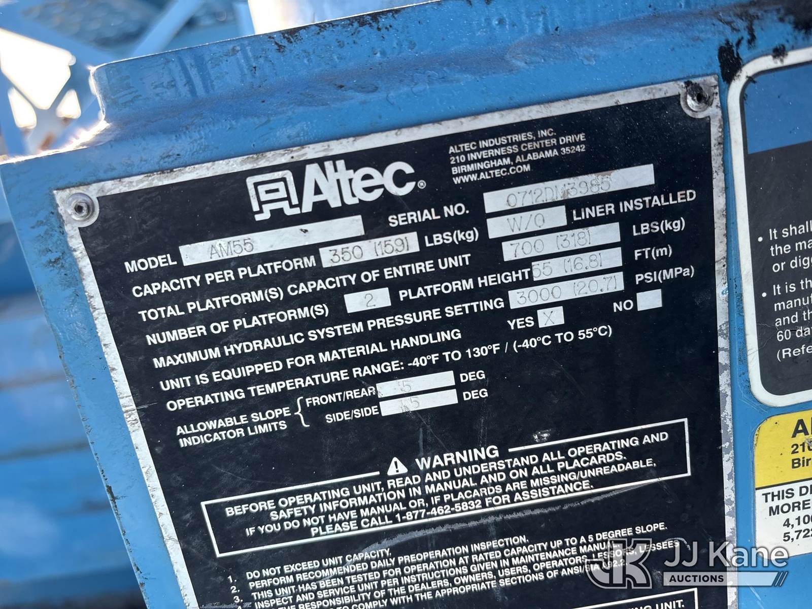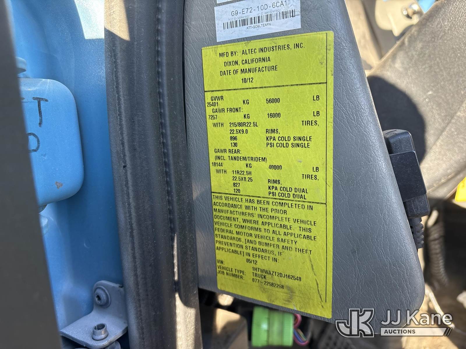 Altec AM55, 60 ft, Material Handling Bucket Truck s/n 0712DM3985, with 2 Single-Man Bucket, mounted behind cab on 2013 International 7500 Service Truck, 9.3L L6 DIESEL 6X6, Auto, A/C, (40,961 miles) (Runs, Moves & Upper Operates) (Reads 4,116 hours) May be subject to ARB Regulations This is a Titled Item NOTE: This unit is being sold AS IS/WHERE IS via Timed Auction and is located in Dixon, CA. Inspection & preview days for this unit are the 2 business days prior to the first day of items closing for this auction, item is located at 8668 Sparling Ln Dixon, CA 95620 and hours of operations are 8a-4p. For pre-sale questions, please contact JJ Kane Staff at (707) 678-8060 (dixon@jjkane.com). Dealer License Number 45696. (Missing manuals, See Auction Company for Manufacturers Information to obtain manuals) (Buyer is responsible for removal. Assistance by consignor or JJ Kane Auctions is not assured.)