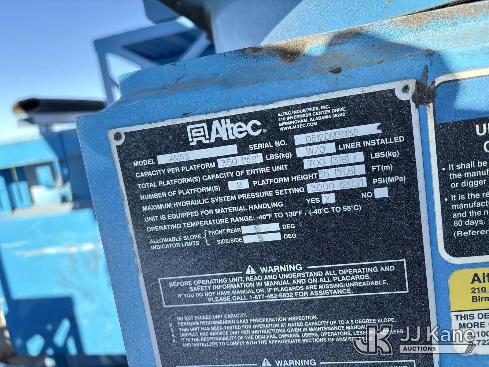 Altec AM55, 60 ft, Over-Center Material Handling Bucket Truck s/n 0512DM3935, with 2 Single-Man Buckets & 4 Hydraulic Outriggers, rear mounted on 2013 International 7500 Service Truck, 9.3L L6 DIESEL Auto, A/C, (26,056 miles) (Runs, Moves & Upper Operates) (Reads 1,954 hours) Subject to CARB Regs,CARB non Compliant,Cannot Operate on CA Roads/Highways until Compliant This is a Titled Item NOTE: This unit is being sold AS IS/WHERE IS via Timed Auction and is located in Dixon, CA. Inspection & preview days for this unit are the 2 business days prior to the first day of items closing for this auction, item is located at 8668 Sparling Ln Dixon, CA 95620 and hours of operations are 8a-4p. For pre-sale questions, please contact JJ Kane Staff at (707) 678-8060 (dixon@jjkane.com). Dealer License Number 45696. (Buyer is responsible for removal. Assistance by consignor or JJ Kane Auctions is not assured.)