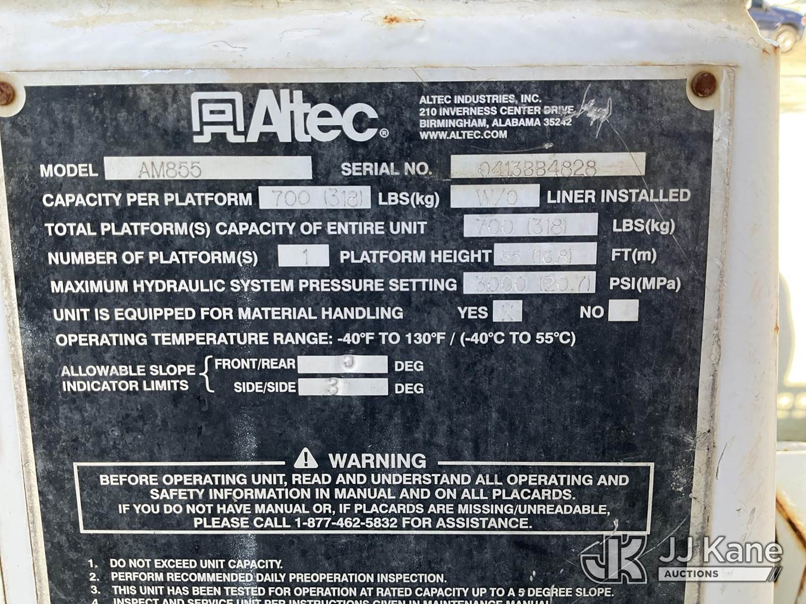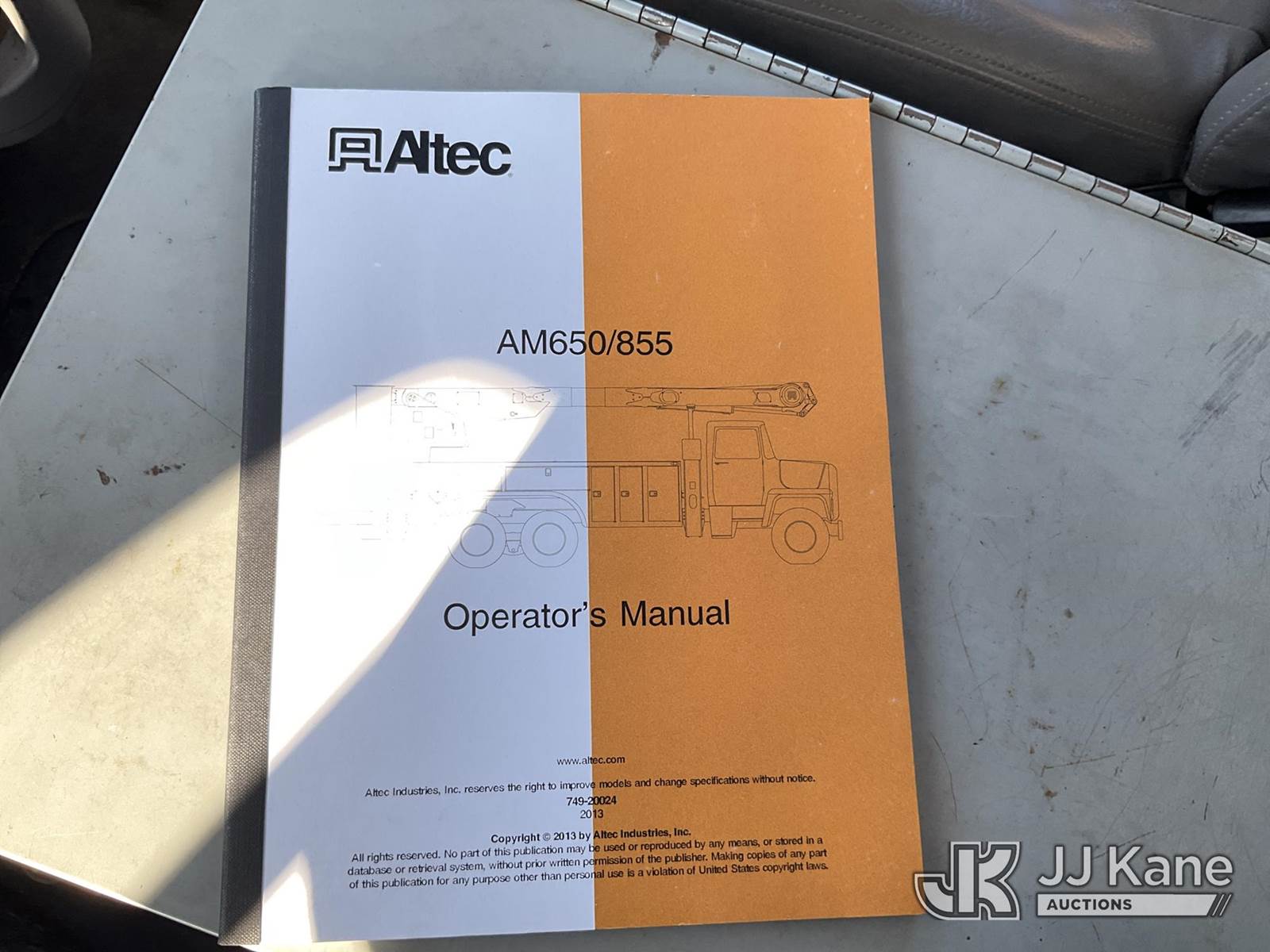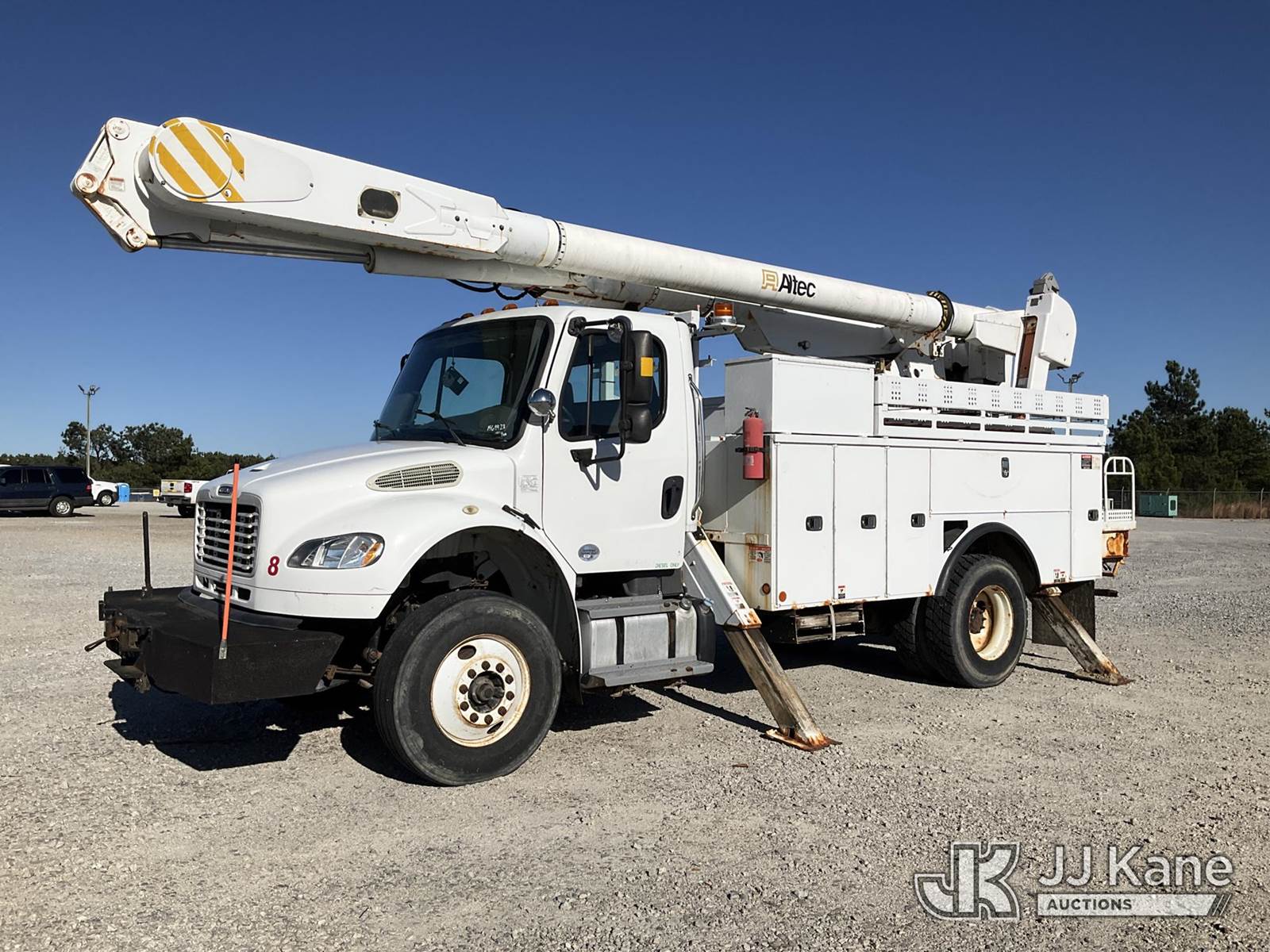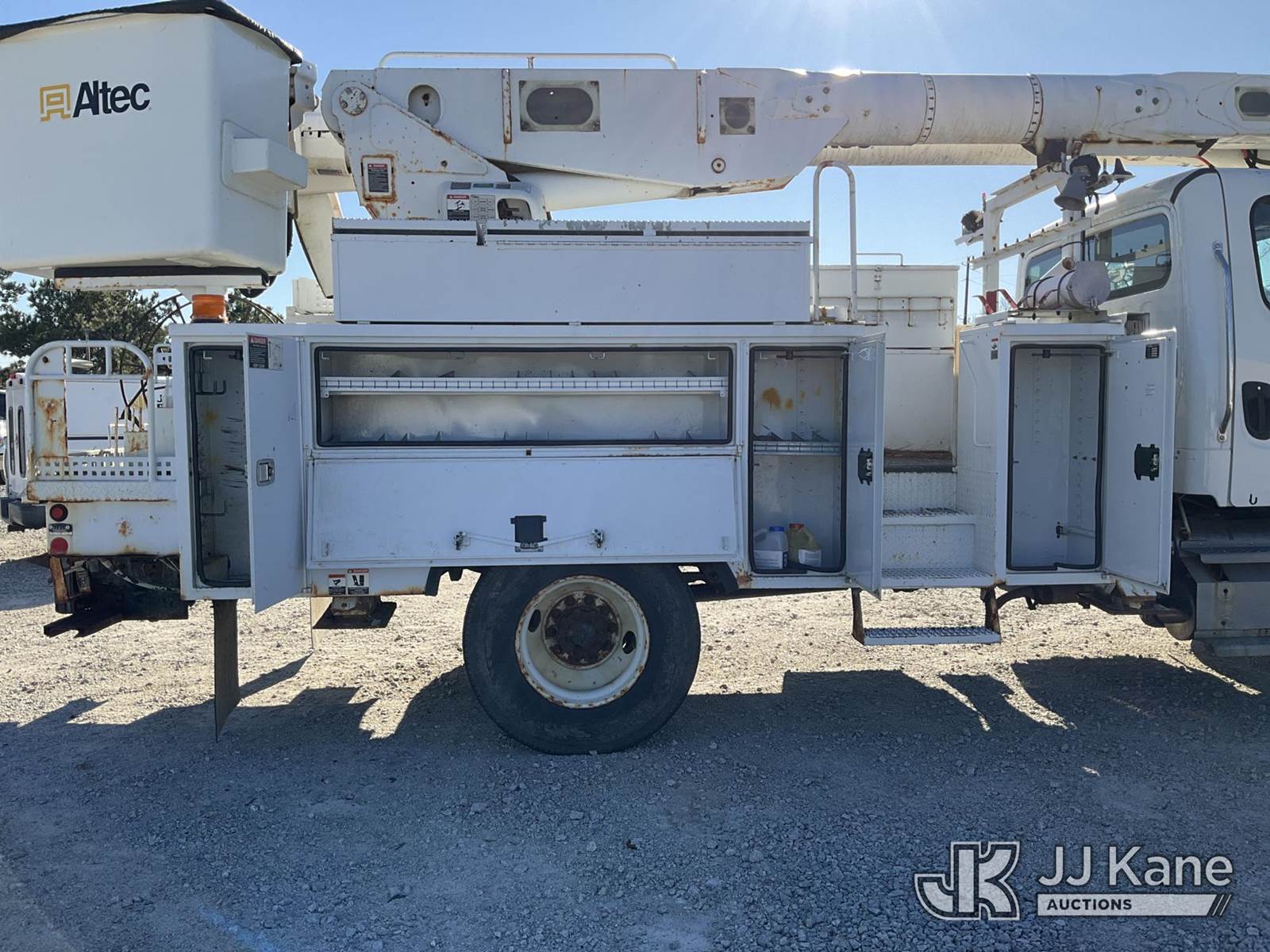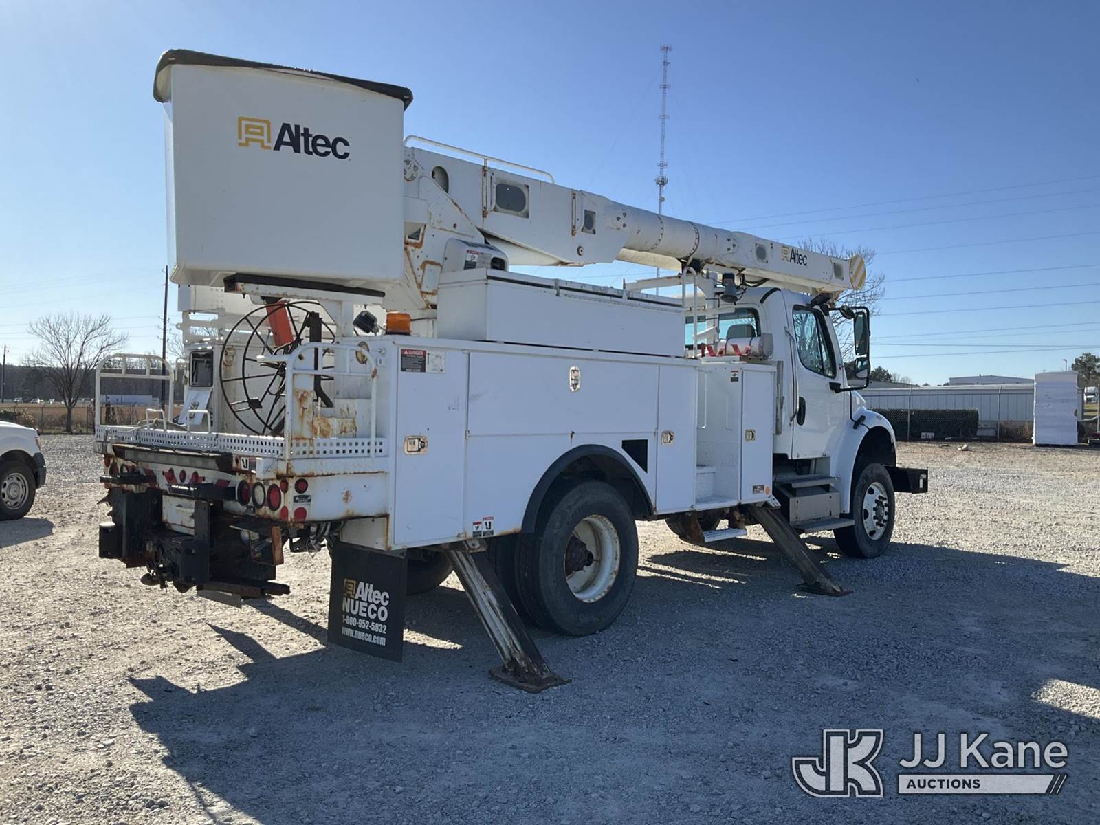Altec AM855, 060 ft, Over-Center Material Handling Bucket Truck s/n 0413BB4828, with two-man bucket & 4 hyd outriigers, rear mounted on 2013 Freightliner M2 106 Utility Truck, 8.3L L6 diesel, Auto, 4X2, A/C, with front winch, (113,365 miles) (Runs & Moves) (Jump To Start, Upper Condition Unknown, Body/Paint Damage ) (Reads 7,759 hours) This is a Titled Item NOTE: This unit is being sold AS IS/WHERE IS via Timed Auction and is located in Villa Rica, GA. Inspection & preview days for this unit are the 2 business days prior to the first day of items closing for this auction, item is located at 100 Liberty Rd Villa Rica, GA 30180 and hours of operations are 8a-4p. For pre-sale questions, please contact Office Staff @ (470) 590-8453. (Missing manuals, See Auction Company for Manufacturers Information to obtain manuals) (Buyer is responsible for removal. Assistance by consignor or JJ Kane Auctions is not assured.)