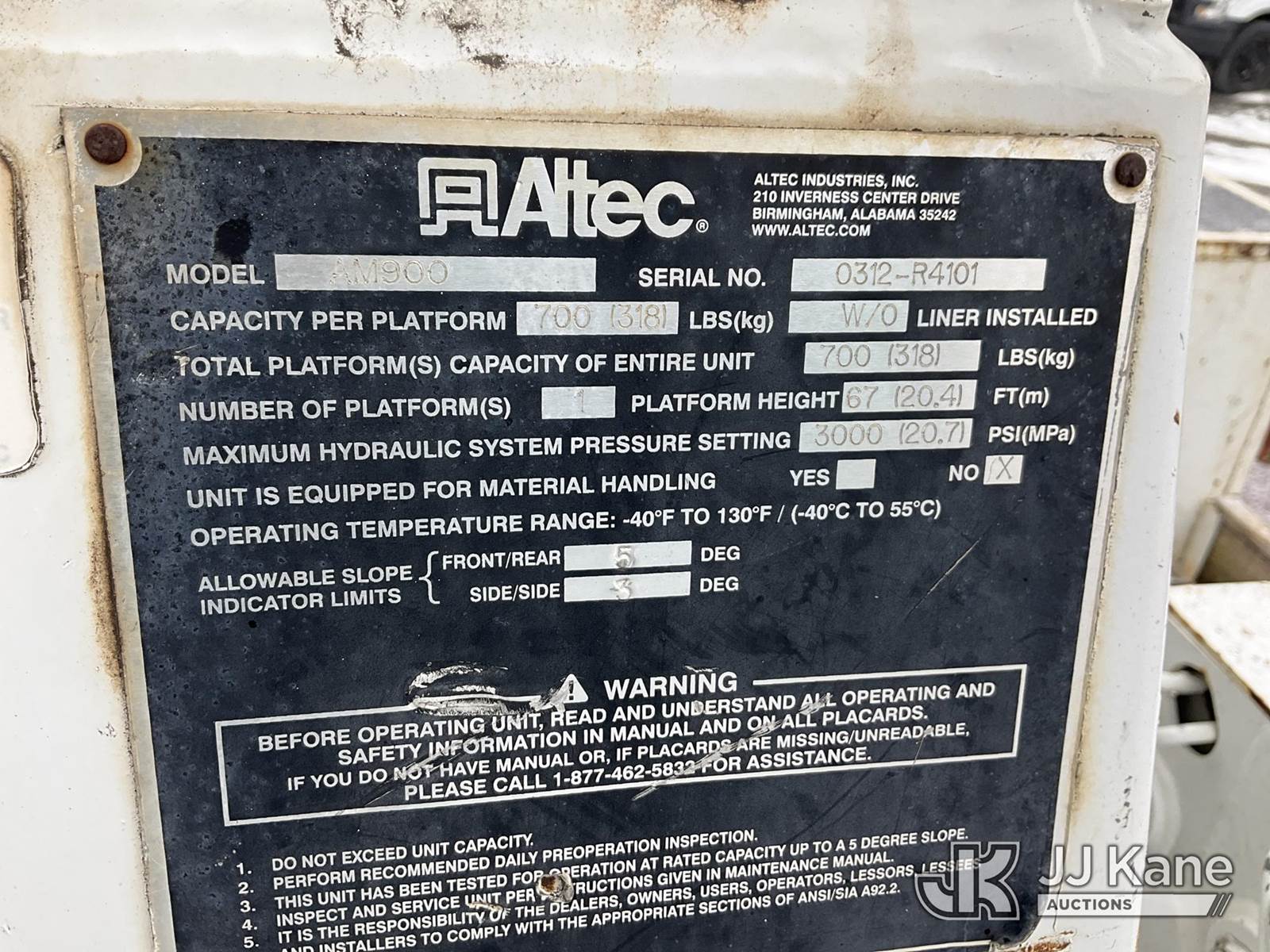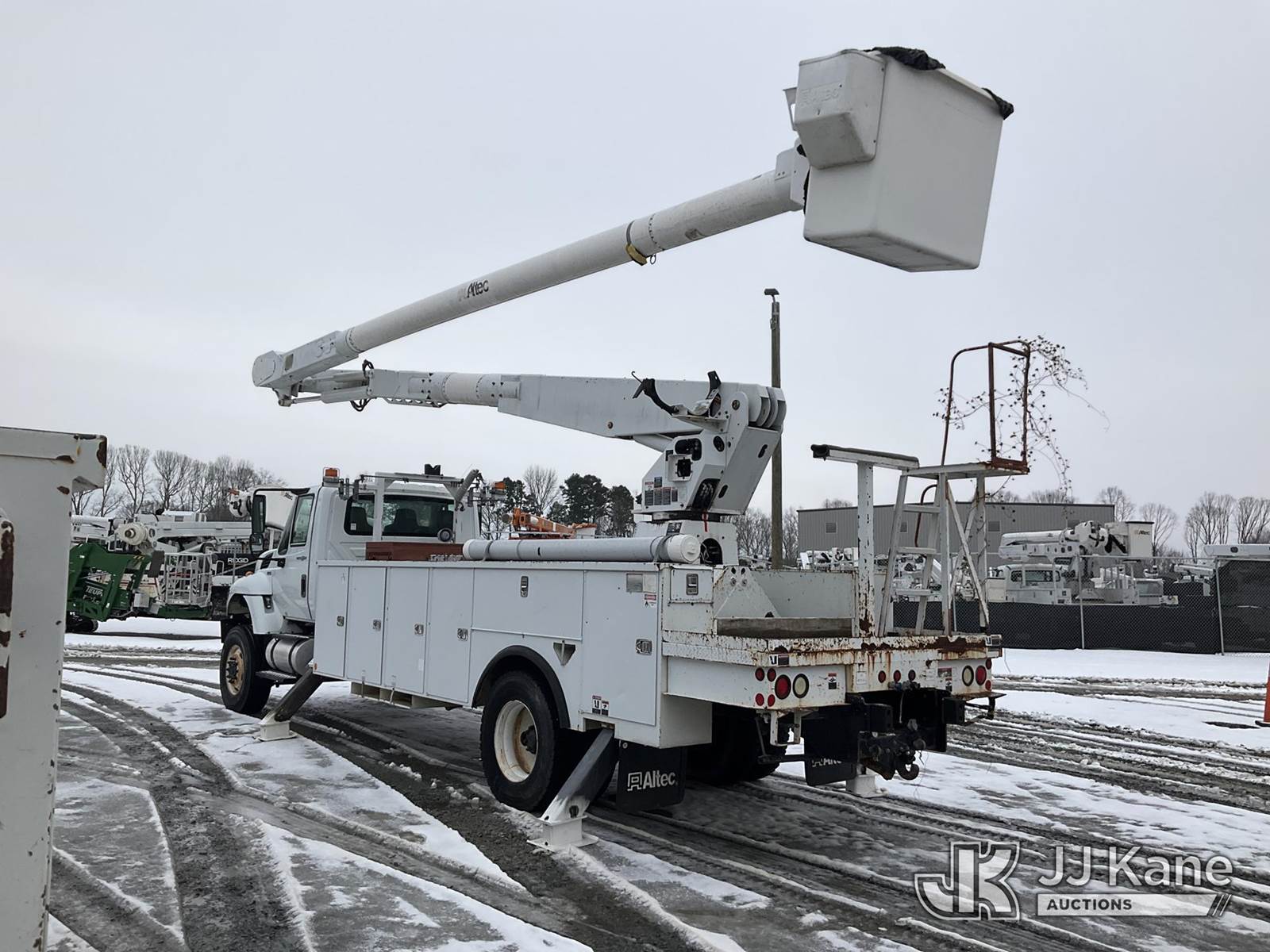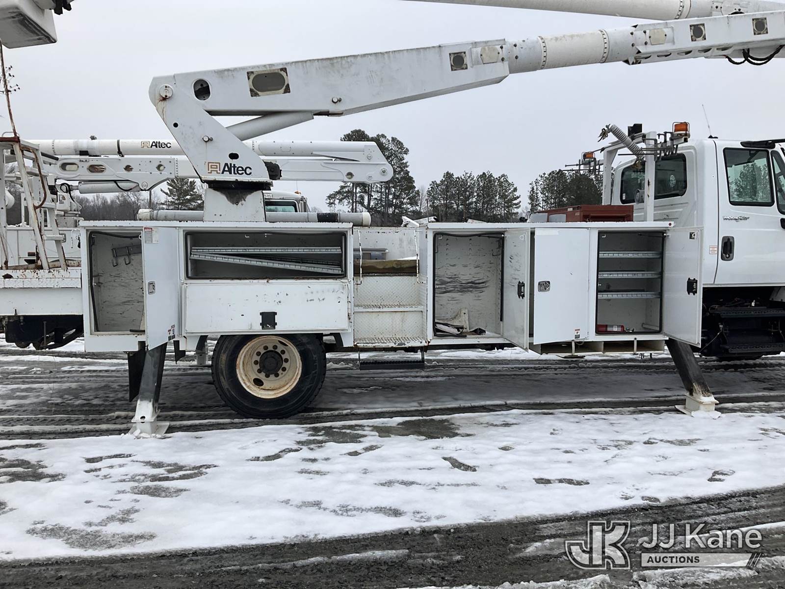 Altec AM900, 72 ft, Bucket Truck s/n 0312R4101, with two-man bucket & 4 hyd outriggers, rear mounted on 2013 International 7300 4X4 Utility Truck, MaxxForce 7.6L diesel, Auto, A/C, (45,909 miles) (Runs, Moves & Upper Operates) This is a Titled Item NOTE: This unit is being sold AS IS/WHERE IS via Timed Auction and is located in China Grove, NC. Inspection & preview days for this unit are the 2 business days prior to the first day of items closing for this auction, item is located at 820 E NC Hwy 152 China Grove, NC 28023 and hours of operations are 8a-4p. For pre-sale questions, please contact Office Staff @ (704) 674-1113. (Manuals provided in cab) (Buyer is responsible for removal. Assistance by consignor or JJ Kane Auctions is not assured.)