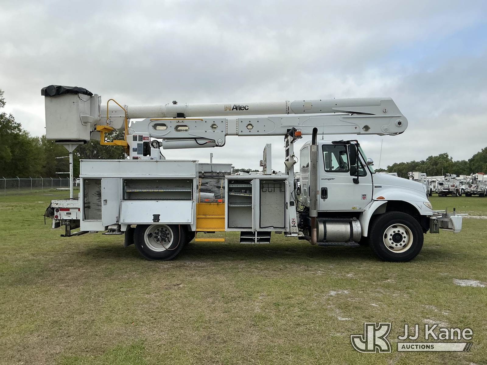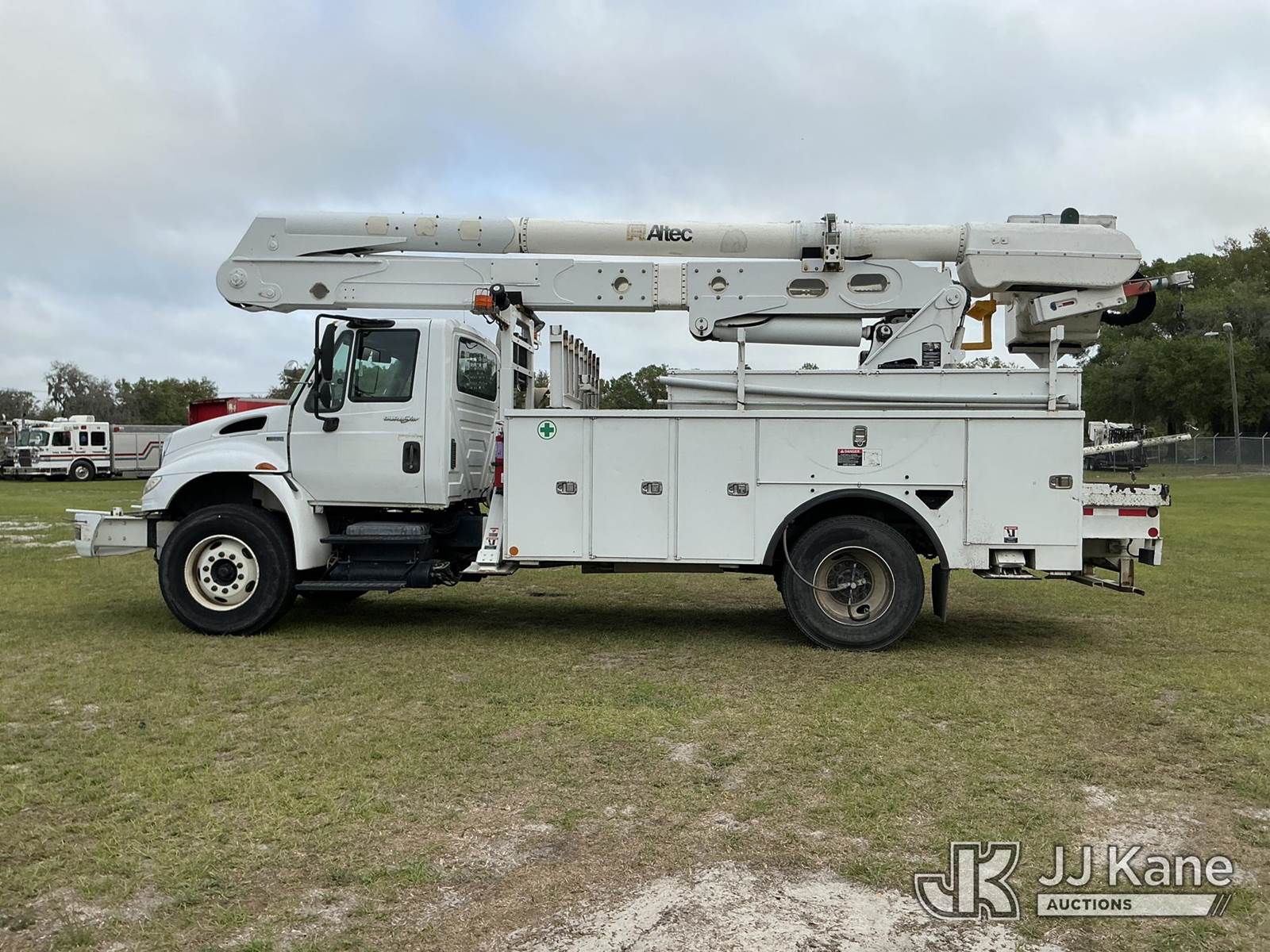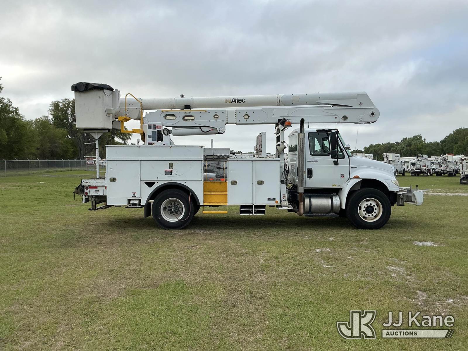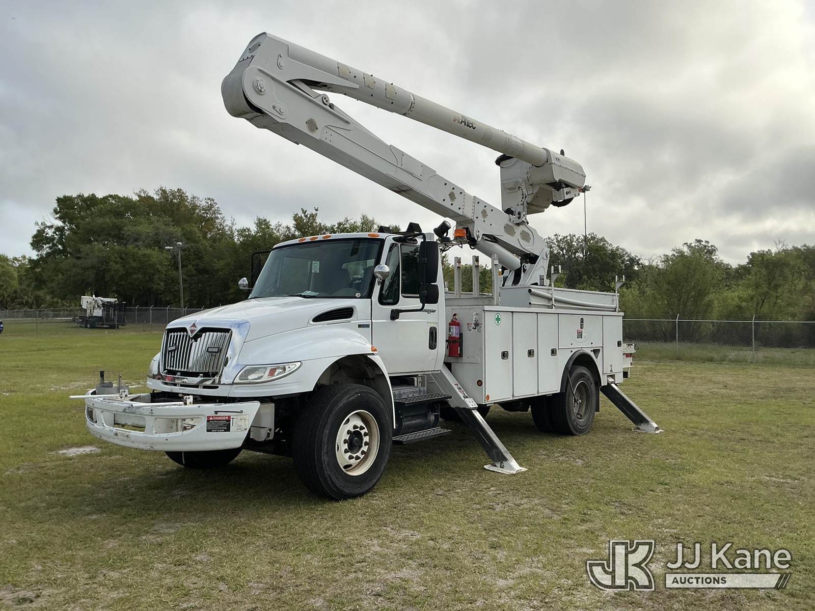 Altec AN50E, 55 ft, Material Handling Bucket Truck s/n 0412FJ0103, with single-man bucket & 4 hyd outriggers, rear mounted on 2013 International DuraStar 4400 Utility Truck, MaxxForce 10 9.3L diesel, Auto, A/C, with tire pressure system, (84,674 miles) Radio Not Included (Runs, Moves, Upper Operates) (Reads 13,571 hours) This is a Titled Item NOTE: This unit is being sold AS IS/WHERE IS via Timed Auction and is located in Thonotosassa, FL. Inspection & preview days for this unit are the 2 business days prior to the first day of items closing for this auction, item is located at 11720 N US 301 Thonotosassa, Fl 33592 and hours of operations are 8a-4p. For pre-sale questions, please contact Office Staff @ (813) 986-2485. (Manuals provided in cab) (Buyer is responsible for removal. Assistance by consignor or JJ Kane Auctions is not assured.)