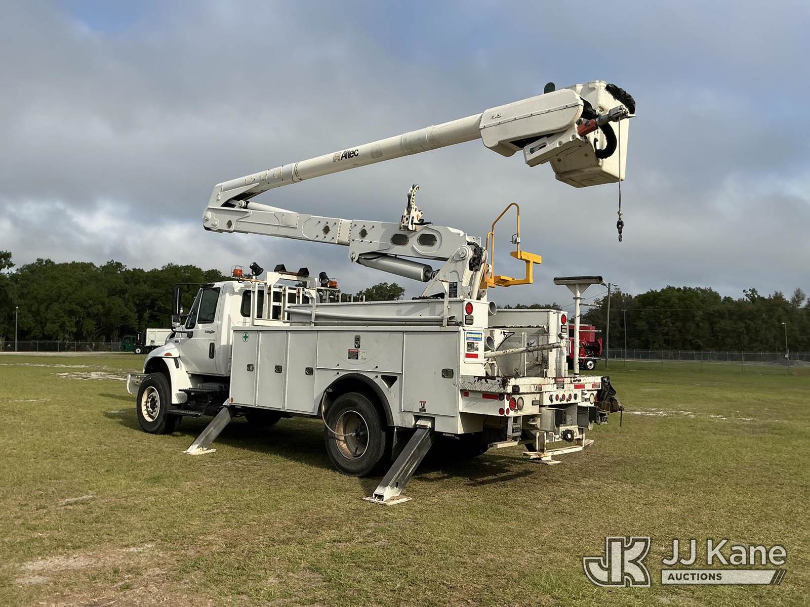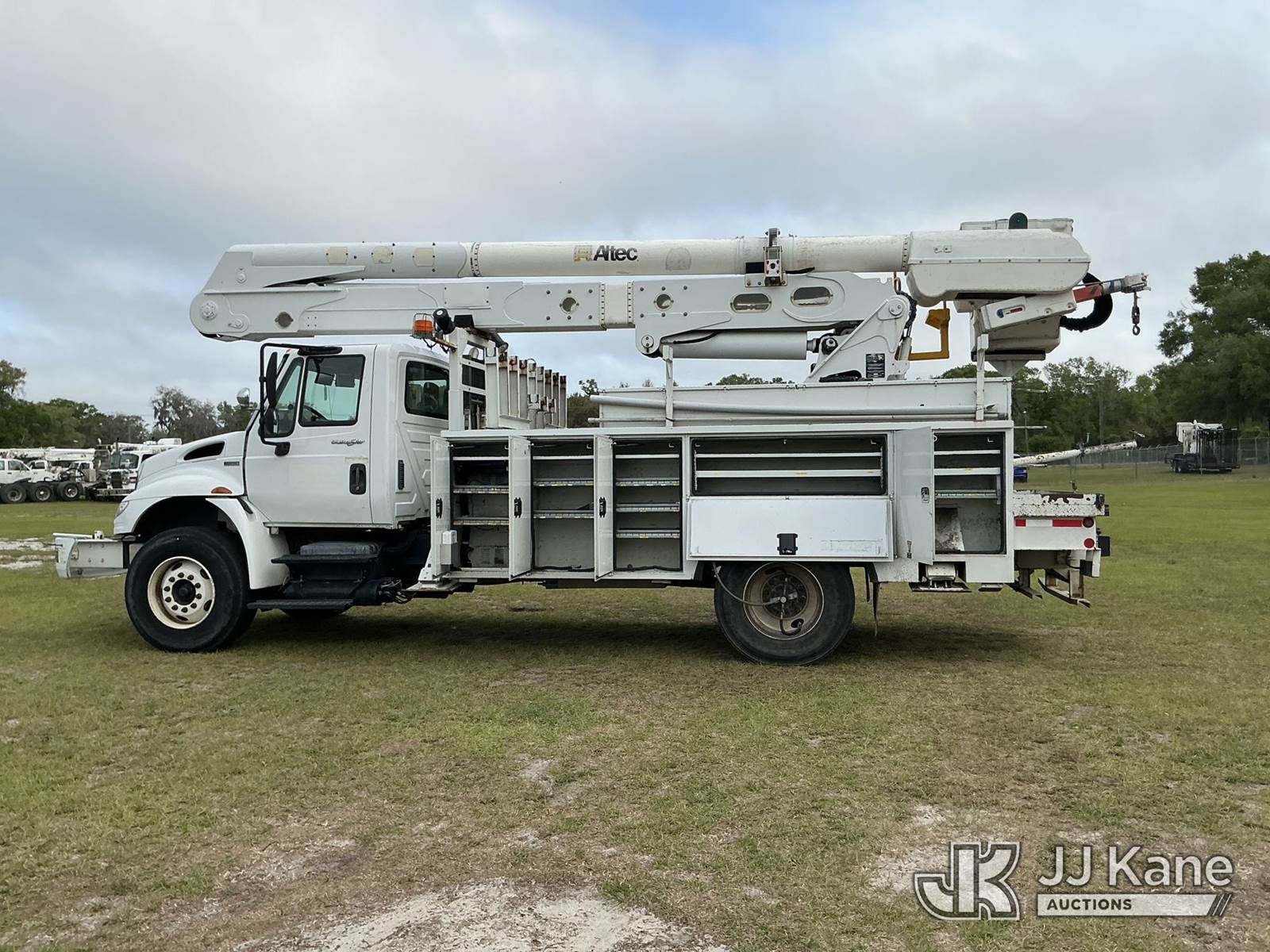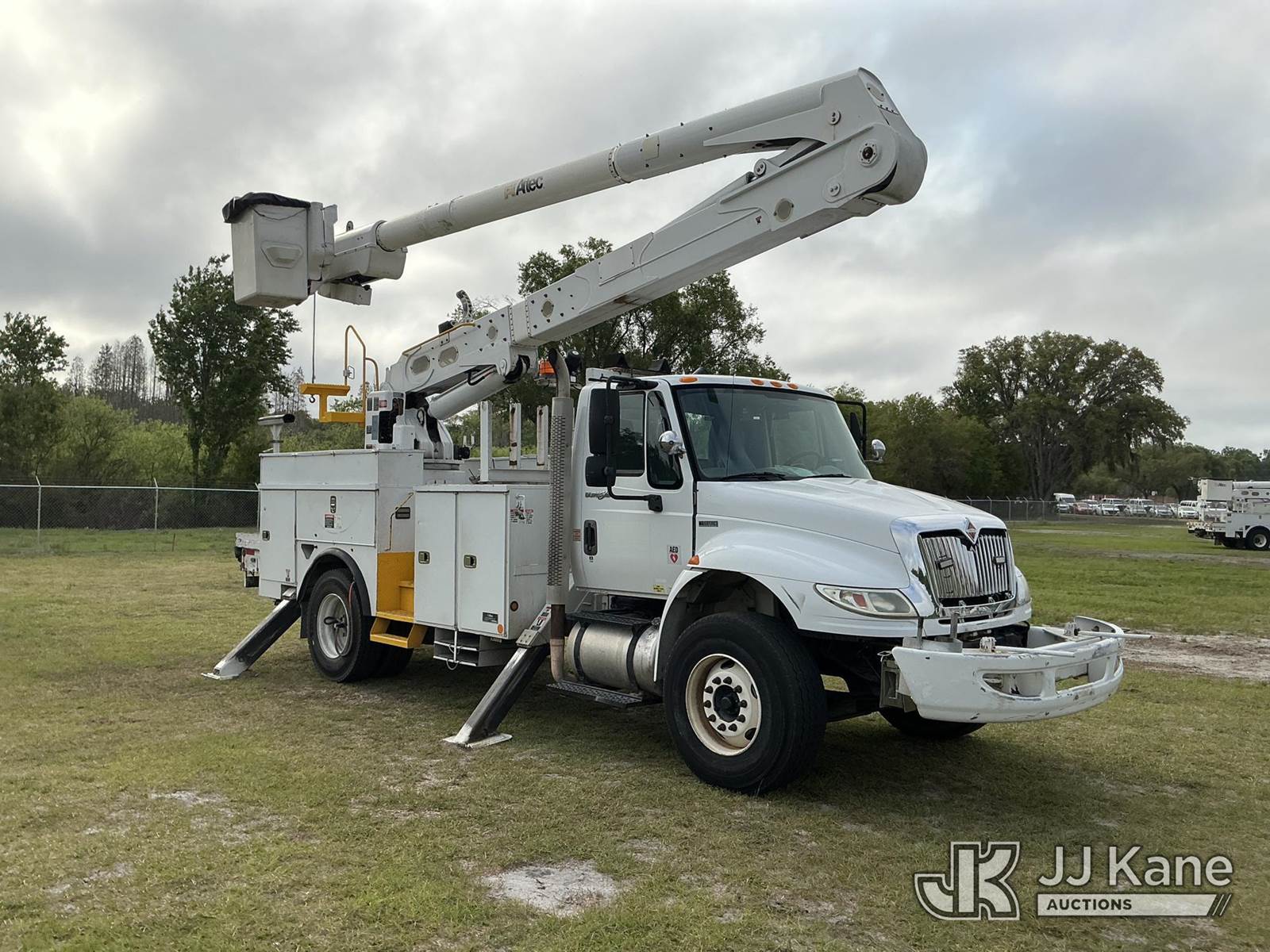 Altec AN50E, 55 ft, Material Handling Bucket Truck s/n 0412FJ0103, with single-man bucket & 4 hyd outriggers, rear mounted on 2013 International DuraStar 4400 Utility Truck, MaxxForce 10 9.3L diesel, Auto, A/C, with tire pressure system, (84,674 miles) Radio Not Included (Runs, Moves, Upper Operates) (Reads 13,571 hours) This is a Titled Item NOTE: This unit is being sold AS IS/WHERE IS via Timed Auction and is located in Thonotosassa, FL. Inspection & preview days for this unit are the 2 business days prior to the first day of items closing for this auction, item is located at 11720 N US 301 Thonotosassa, Fl 33592 and hours of operations are 8a-4p. For pre-sale questions, please contact Office Staff @ (813) 986-2485. (Manuals provided in cab) (Buyer is responsible for removal. Assistance by consignor or JJ Kane Auctions is not assured.)