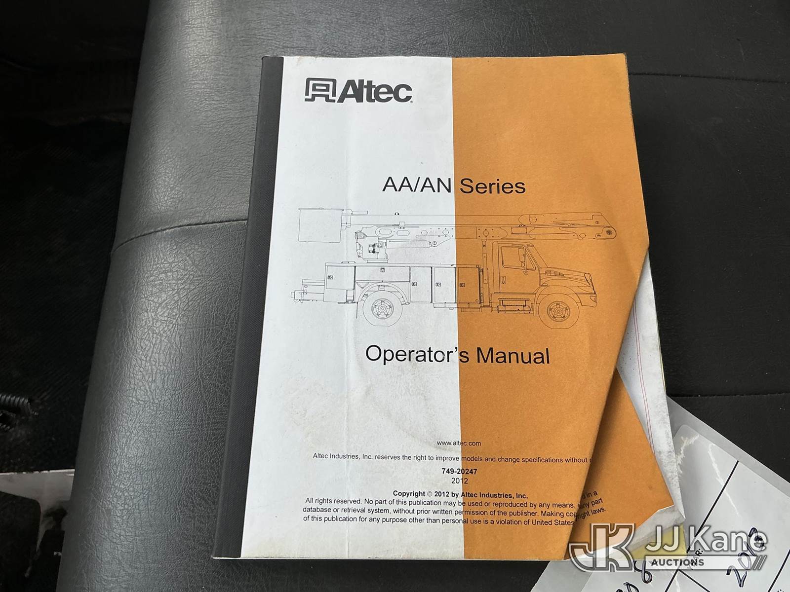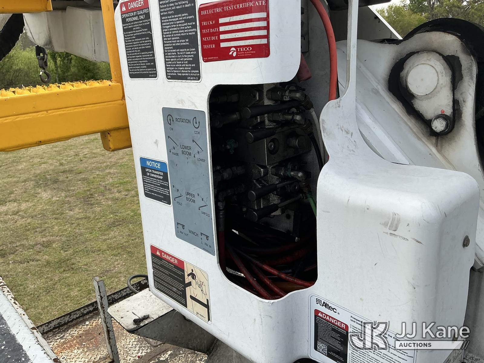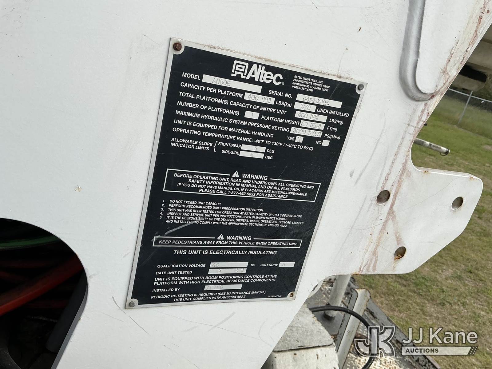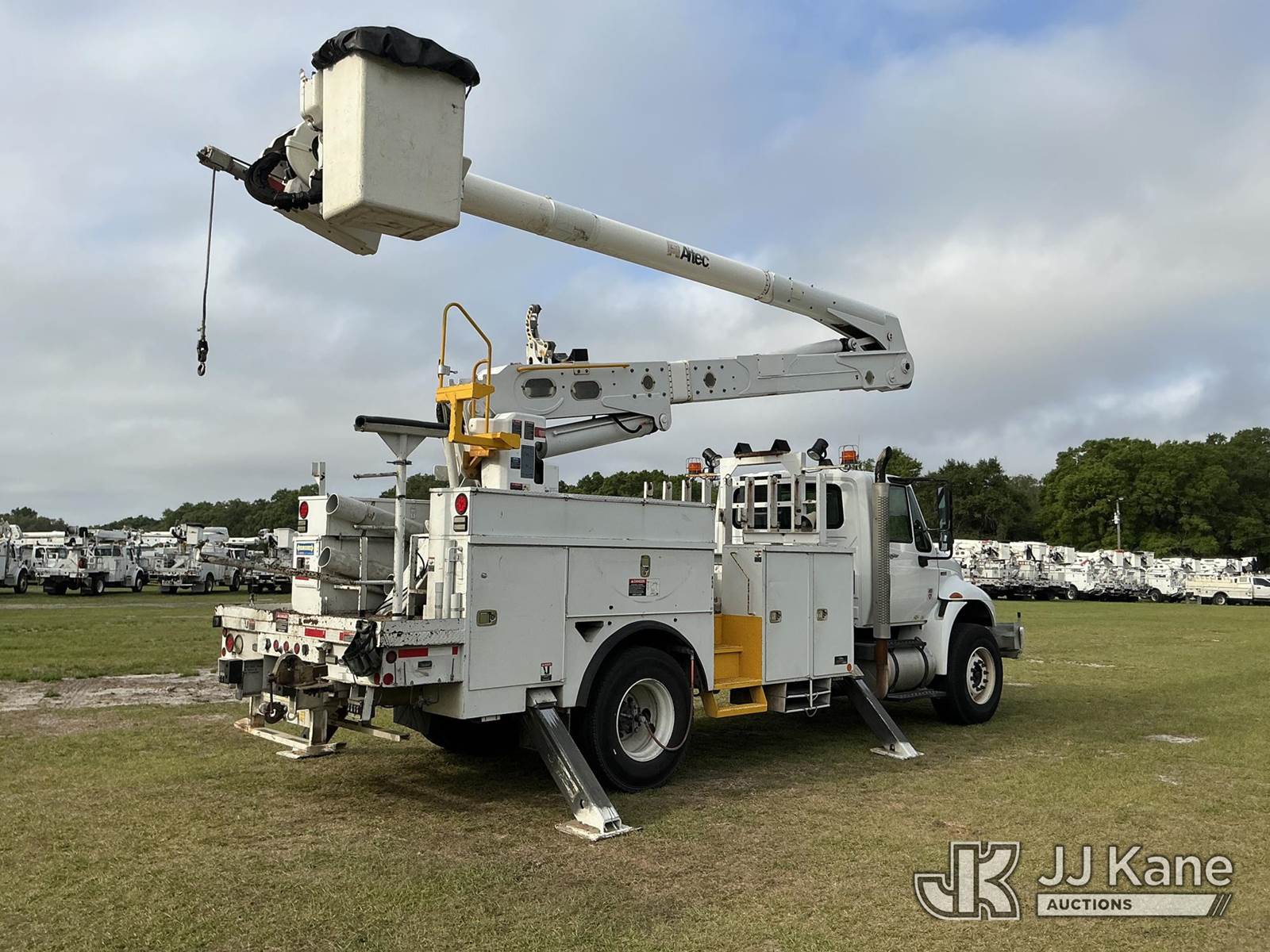 Altec AN50E, 55 ft, Material Handling Bucket Truck s/n 0412FJ0103, with single-man bucket & 4 hyd outriggers, rear mounted on 2013 International DuraStar 4400 Utility Truck, MaxxForce 10 9.3L diesel, Auto, A/C, with tire pressure system, (84,674 miles) Radio Not Included (Runs, Moves, Upper Operates) (Reads 13,571 hours) This is a Titled Item NOTE: This unit is being sold AS IS/WHERE IS via Timed Auction and is located in Thonotosassa, FL. Inspection & preview days for this unit are the 2 business days prior to the first day of items closing for this auction, item is located at 11720 N US 301 Thonotosassa, Fl 33592 and hours of operations are 8a-4p. For pre-sale questions, please contact Office Staff @ (813) 986-2485. (Manuals provided in cab) (Buyer is responsible for removal. Assistance by consignor or JJ Kane Auctions is not assured.)