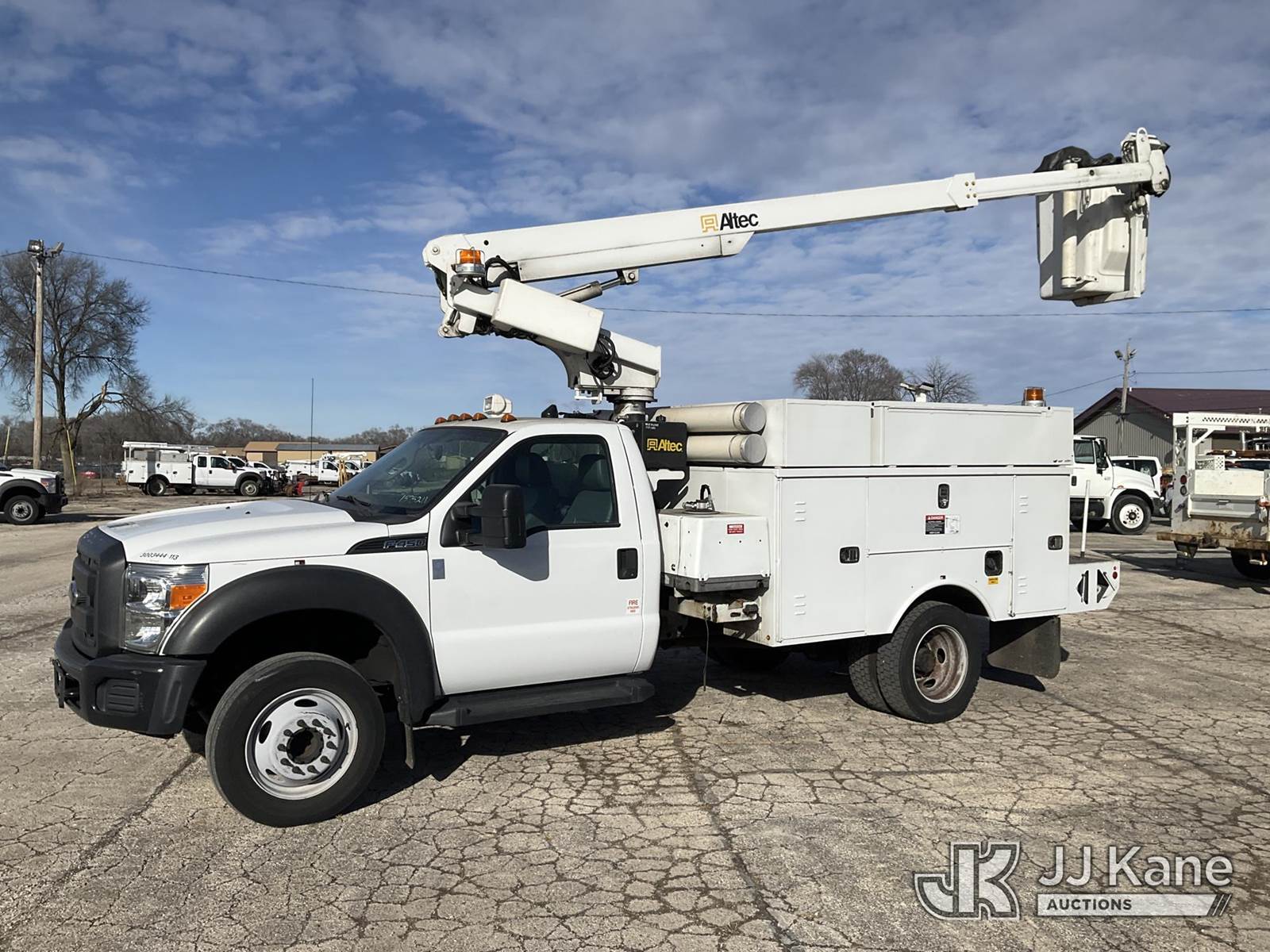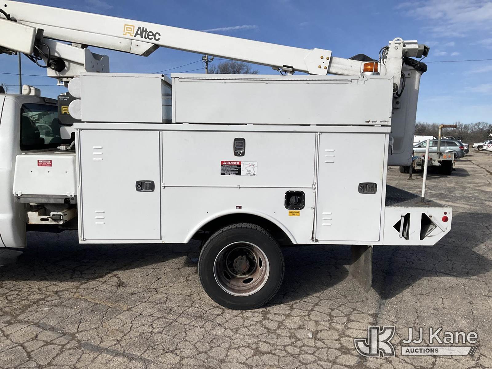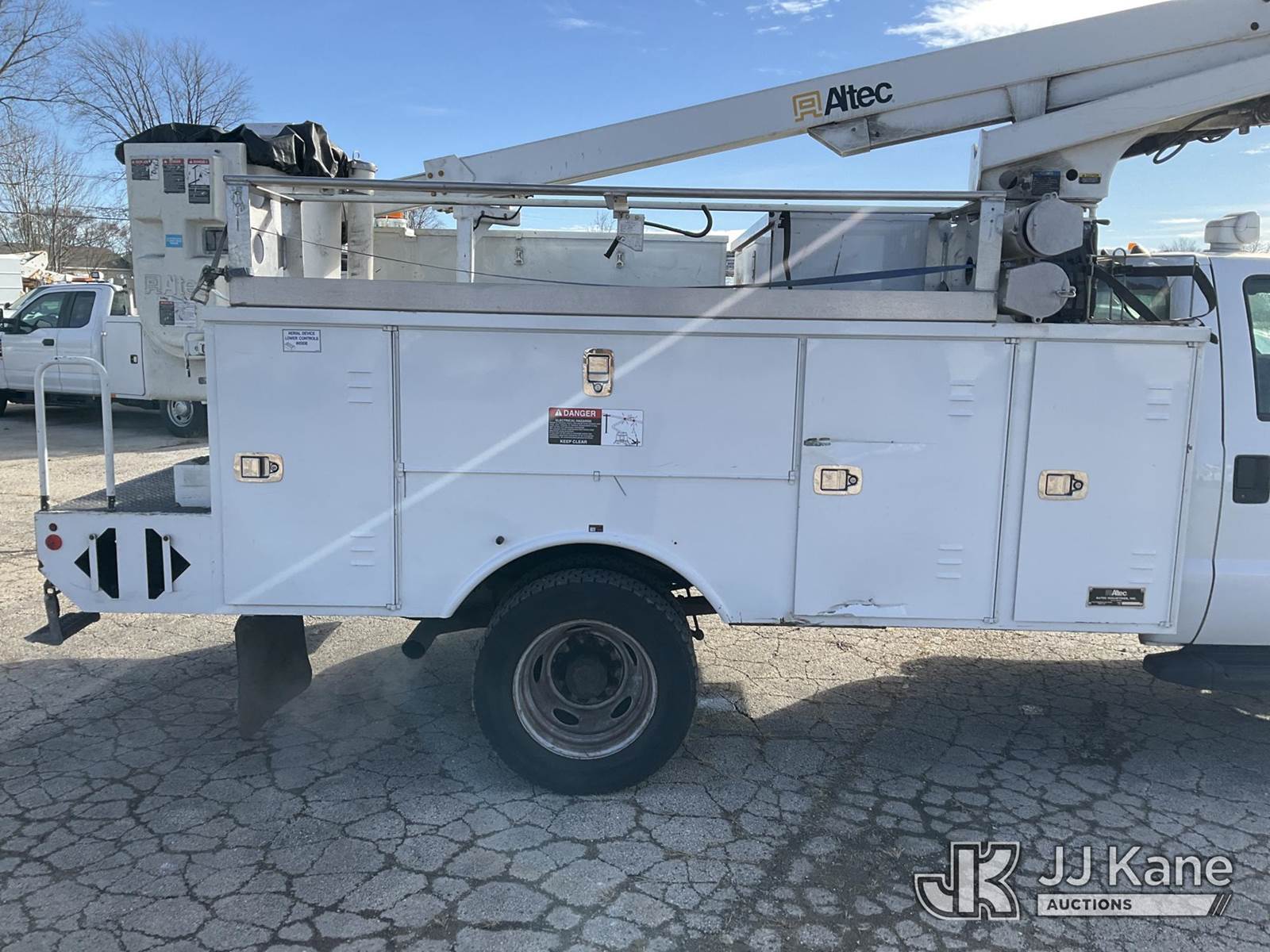 Altec AT200A, 35 ft, Telescopic Bucket Truck s/n 0413BV20268, with single-man, mounted behind cab on 2013 Ford F-450 SD Regular Cab DRW 2WD Service Truck, 6.8L V10 SOHC 30V RWD, GAS, Auto, A/C, (42,849 miles) (Runs, Moves & Upper Operates)(Need Upper Battery, Damage-Passenger Side Service Body) This is a Titled Item NOTE: This unit is being sold AS IS/WHERE IS via Timed Auction and is located in South Beloit, IL. Inspection & preview days for this unit are the 2 business days prior to the first day of items closing for this auction, item is located at 14354 Dearborn Ave South Beloit, IL and hours of operations are 8a-4p. For pre-sale questions, please contact Derek Eklund at (608) 904-0618 or (derek.eklund@jjkane.com). (Manuals provided in cab) (Buyer is responsible for removal. Assistance by consignor or JJ Kane Auctions is not assured.)